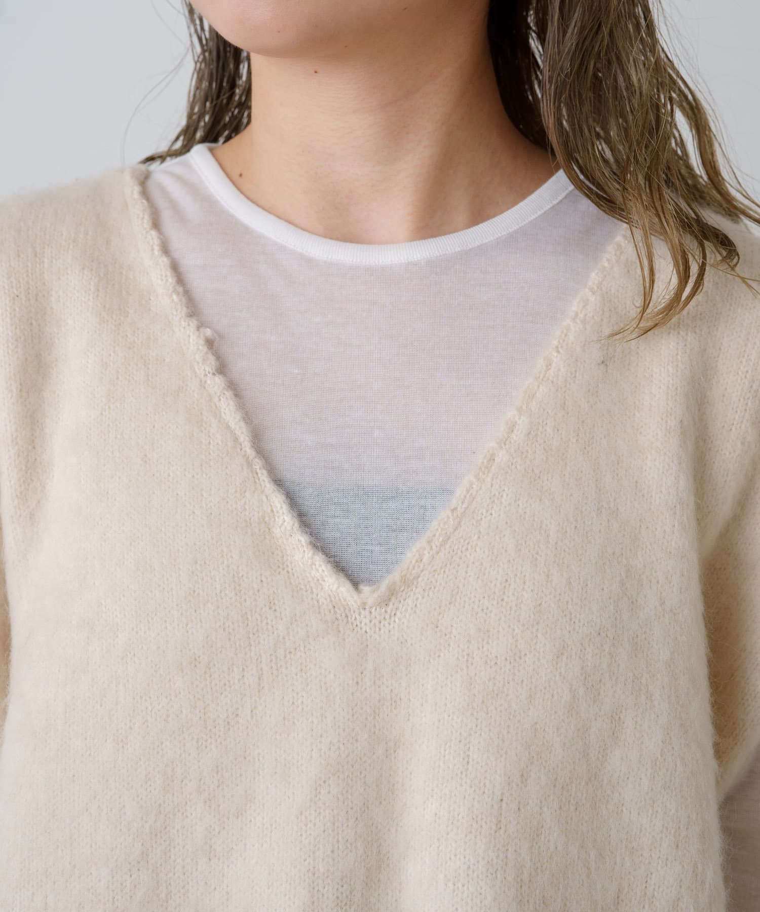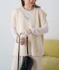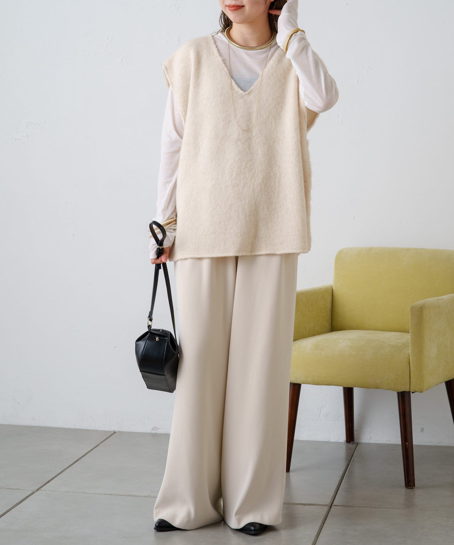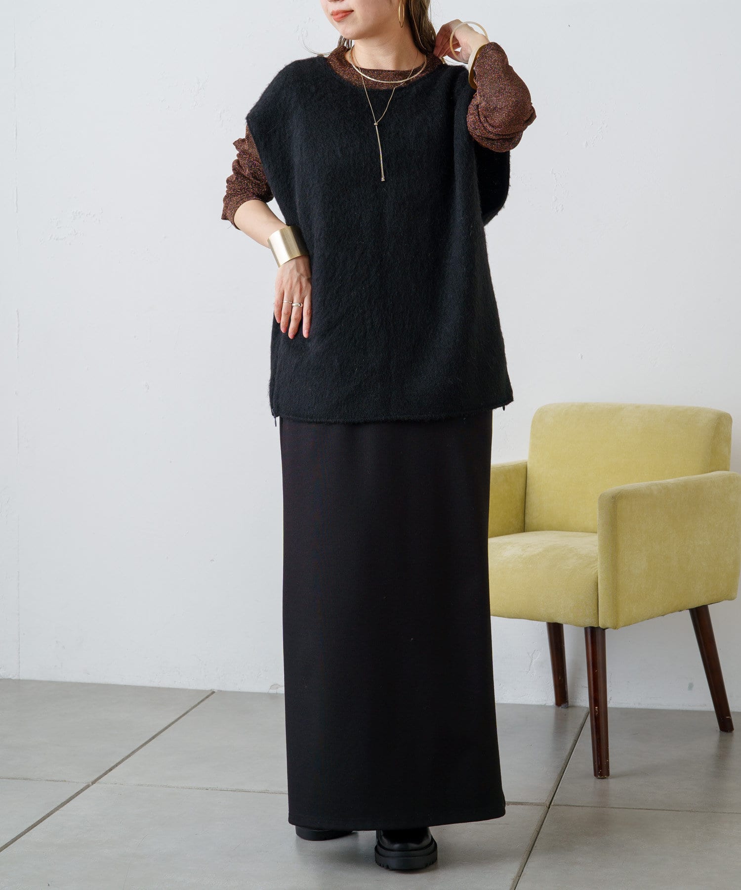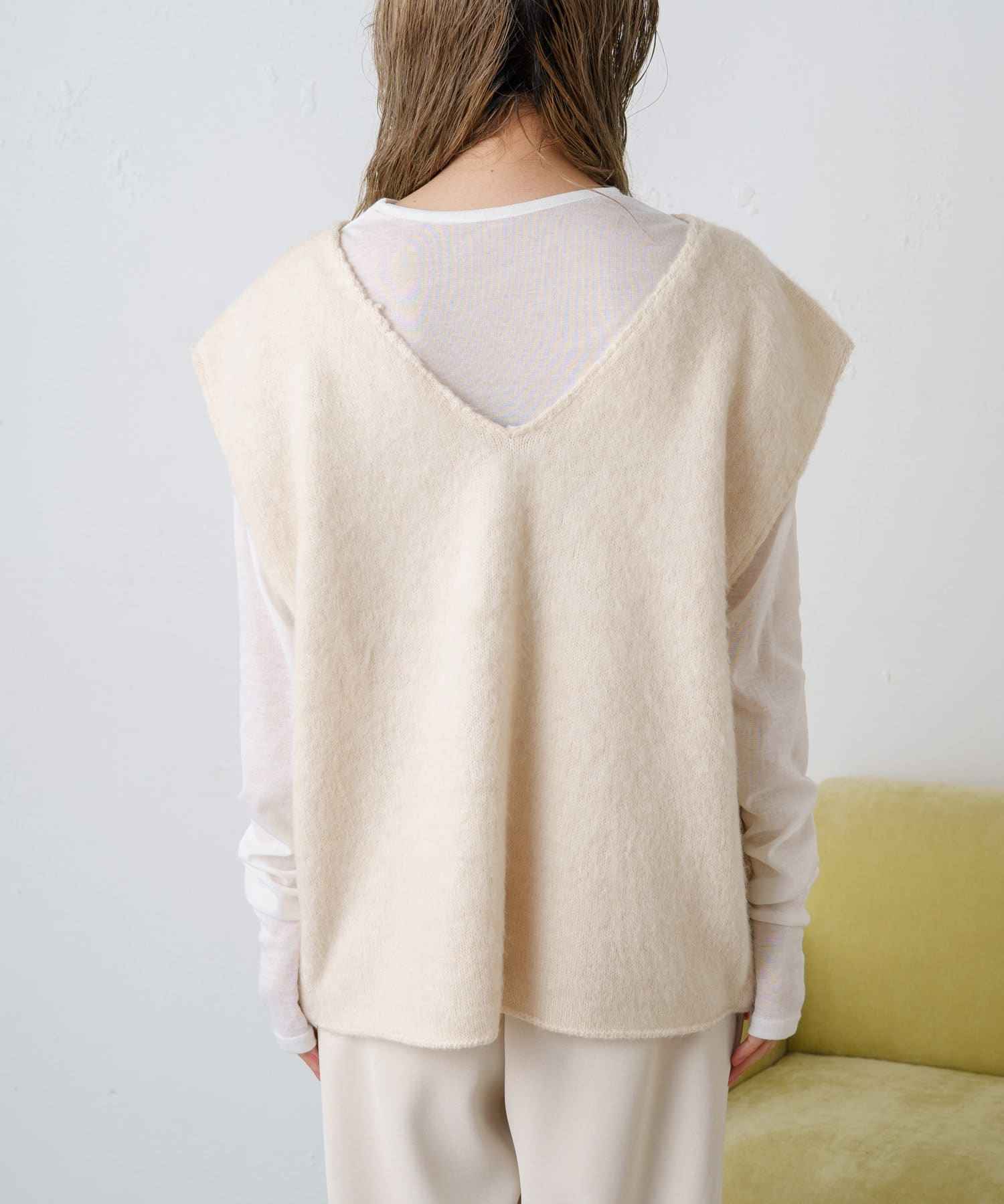 ・ふわふわとした素材感がかわいいニットベスト。ファスナーでサイドのスリットが調節できて抜け感がでるデザイン