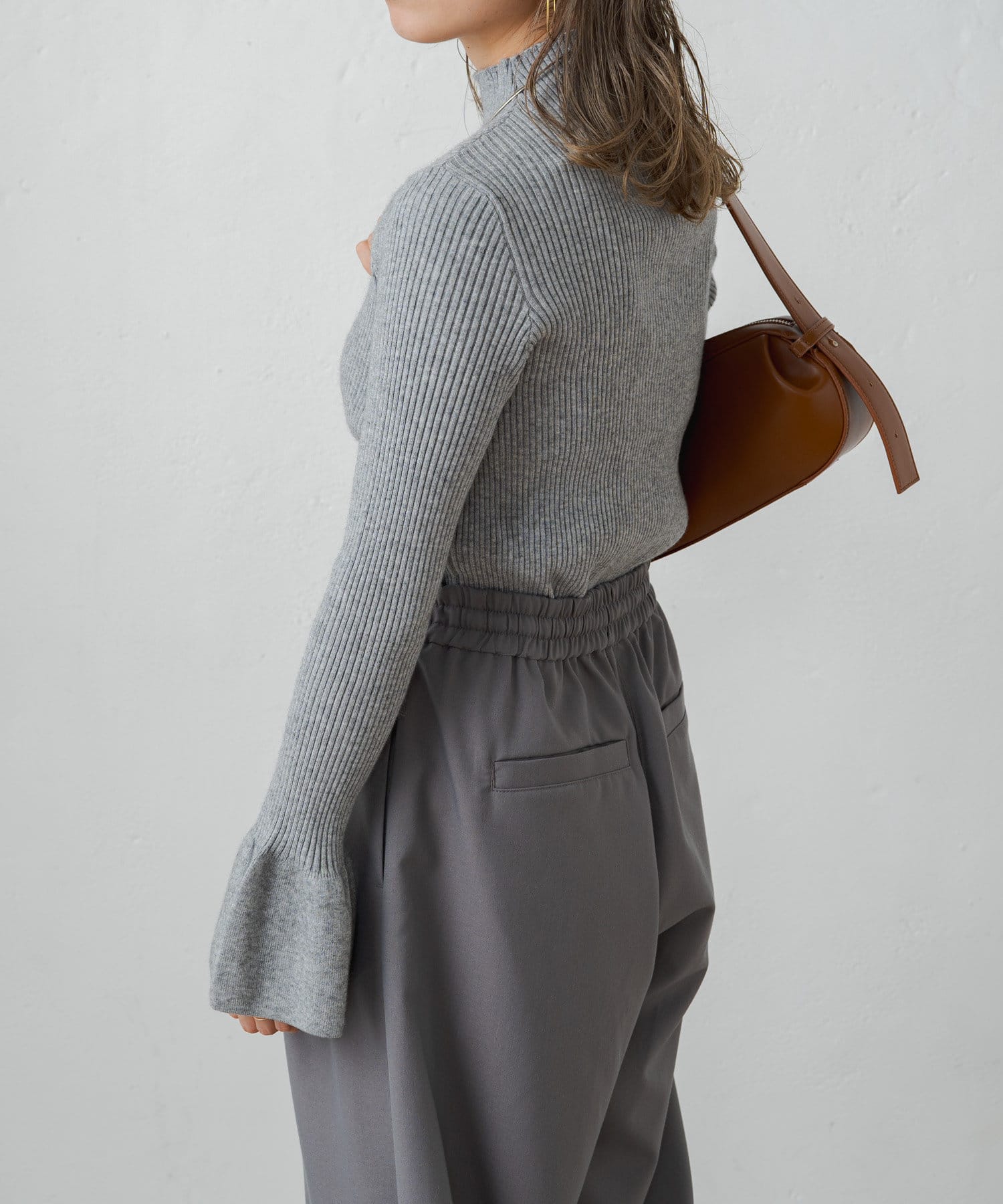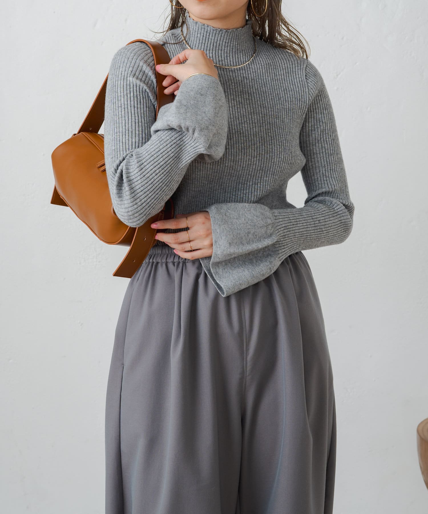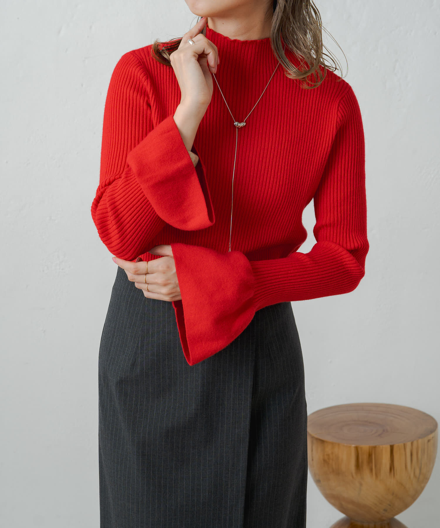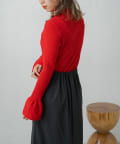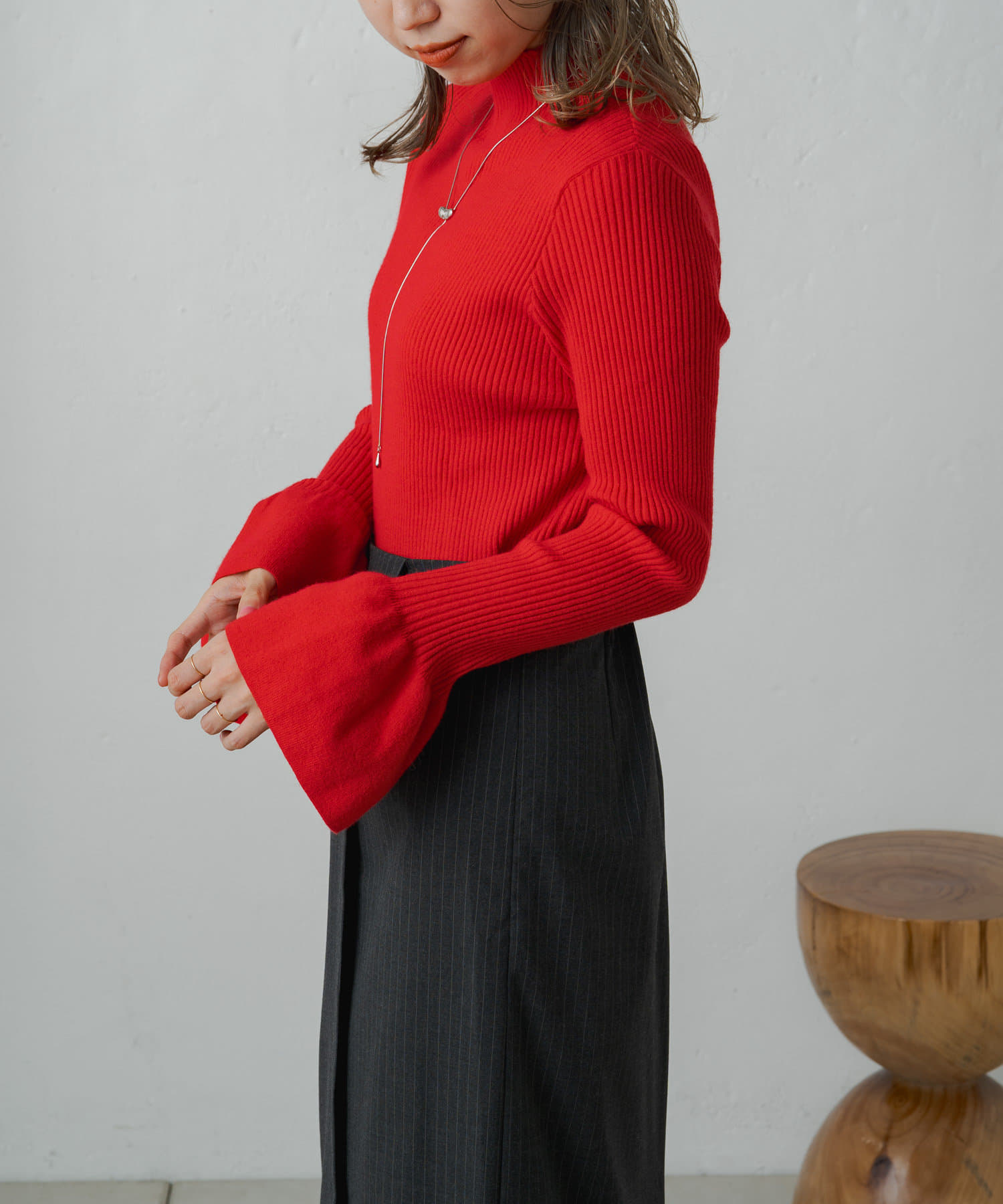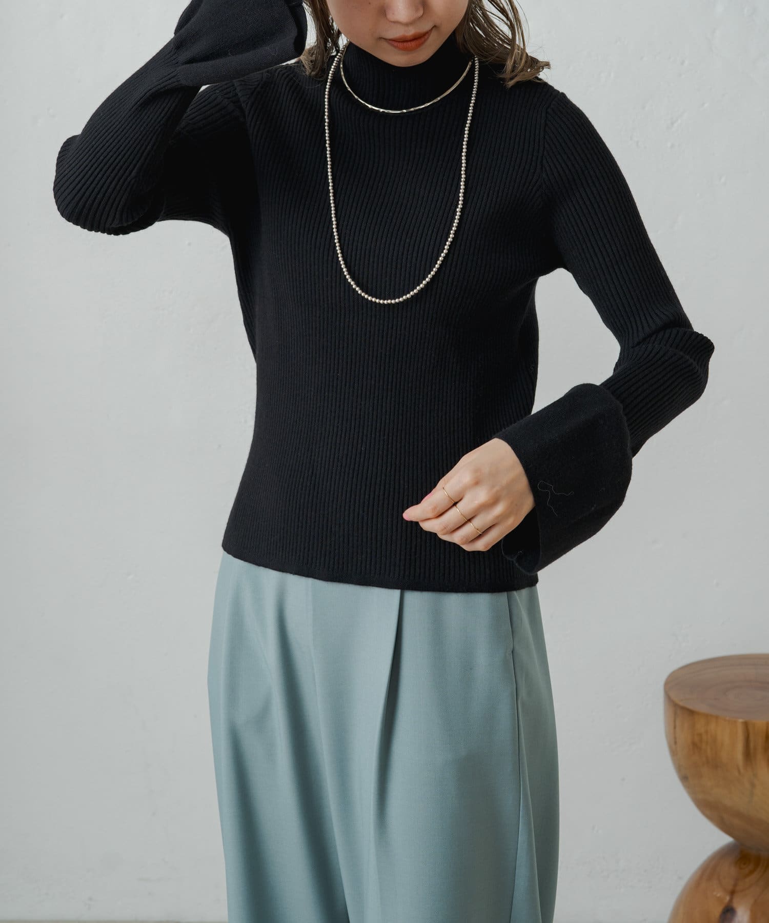 ・袖口のフリルがフェミニンな印象で、しなやかにネックラインに沿うハイネックニットと、程よいフィット感が魅力な一枚。