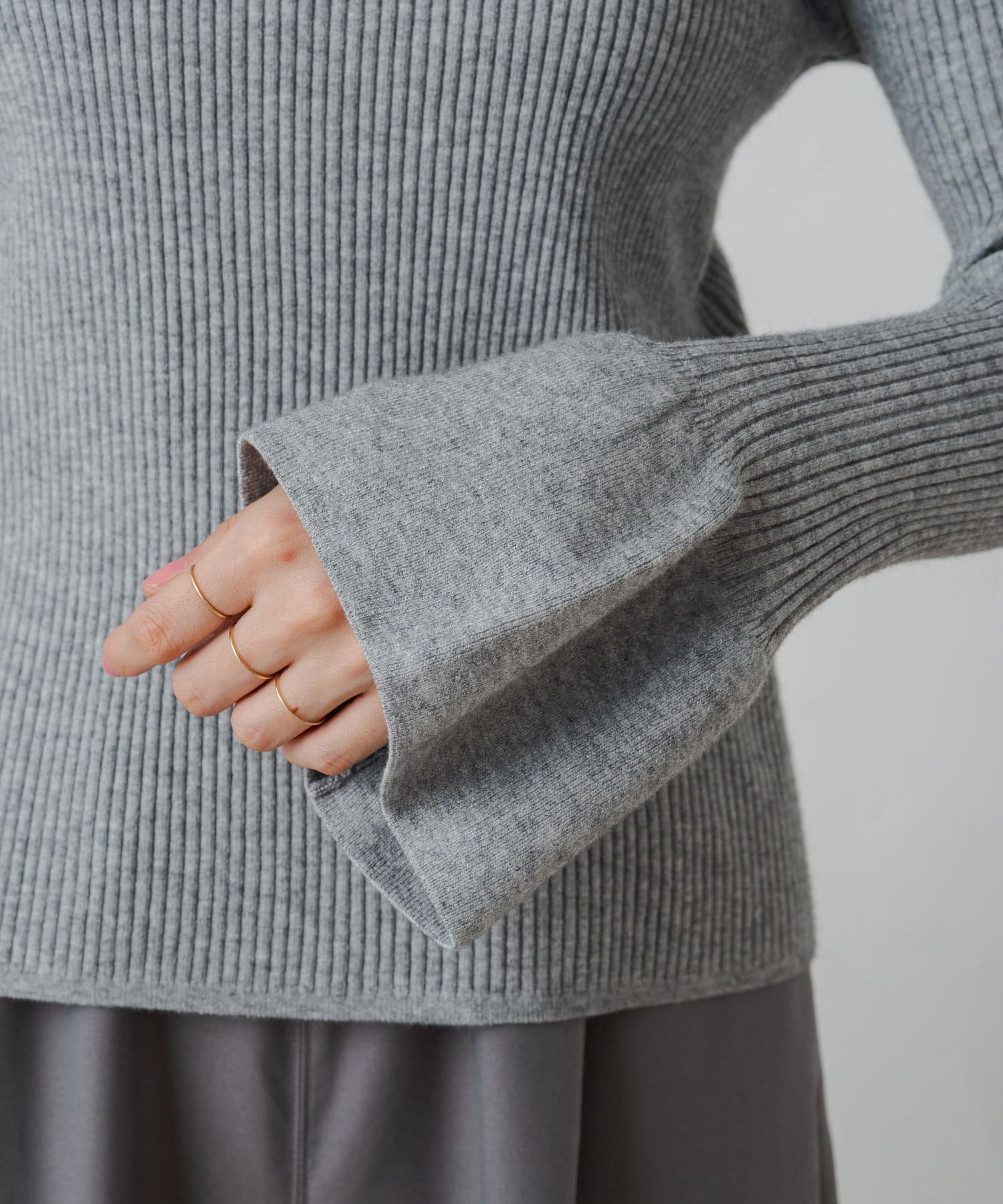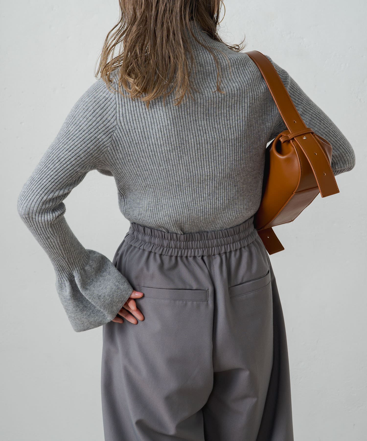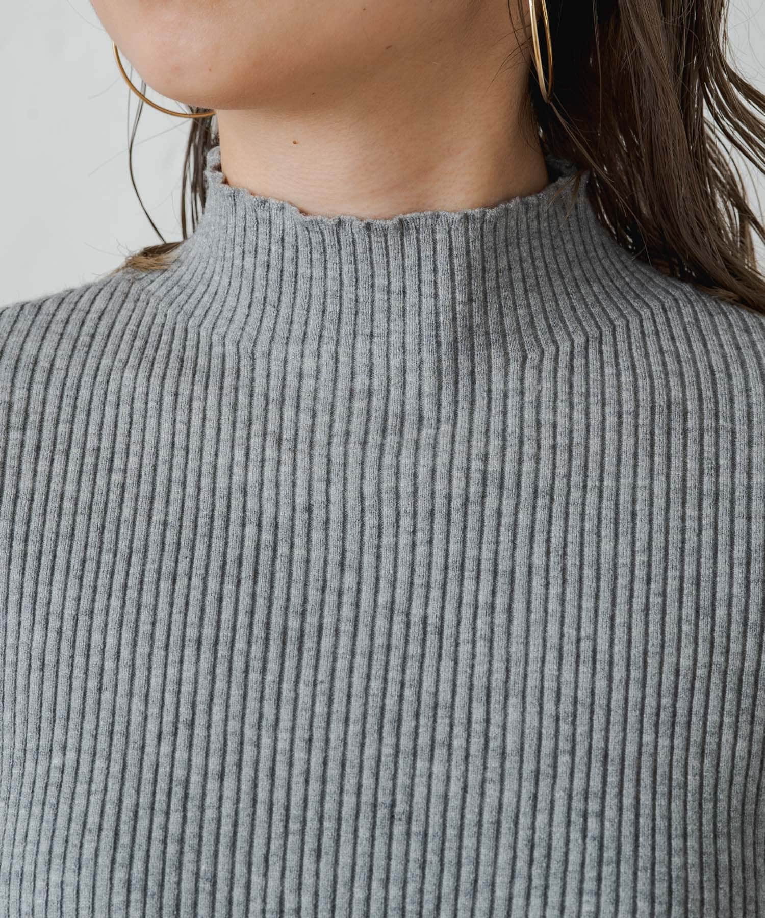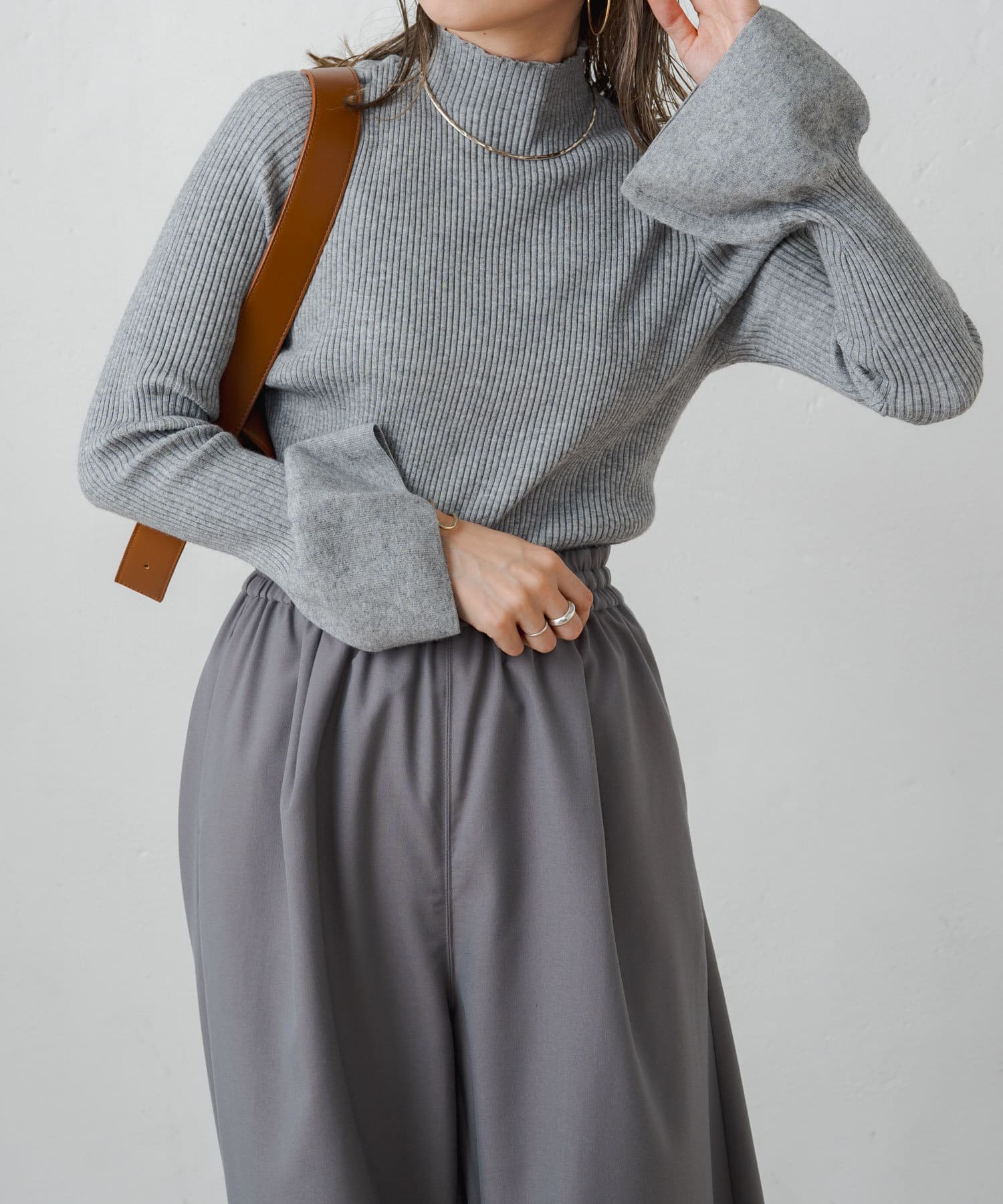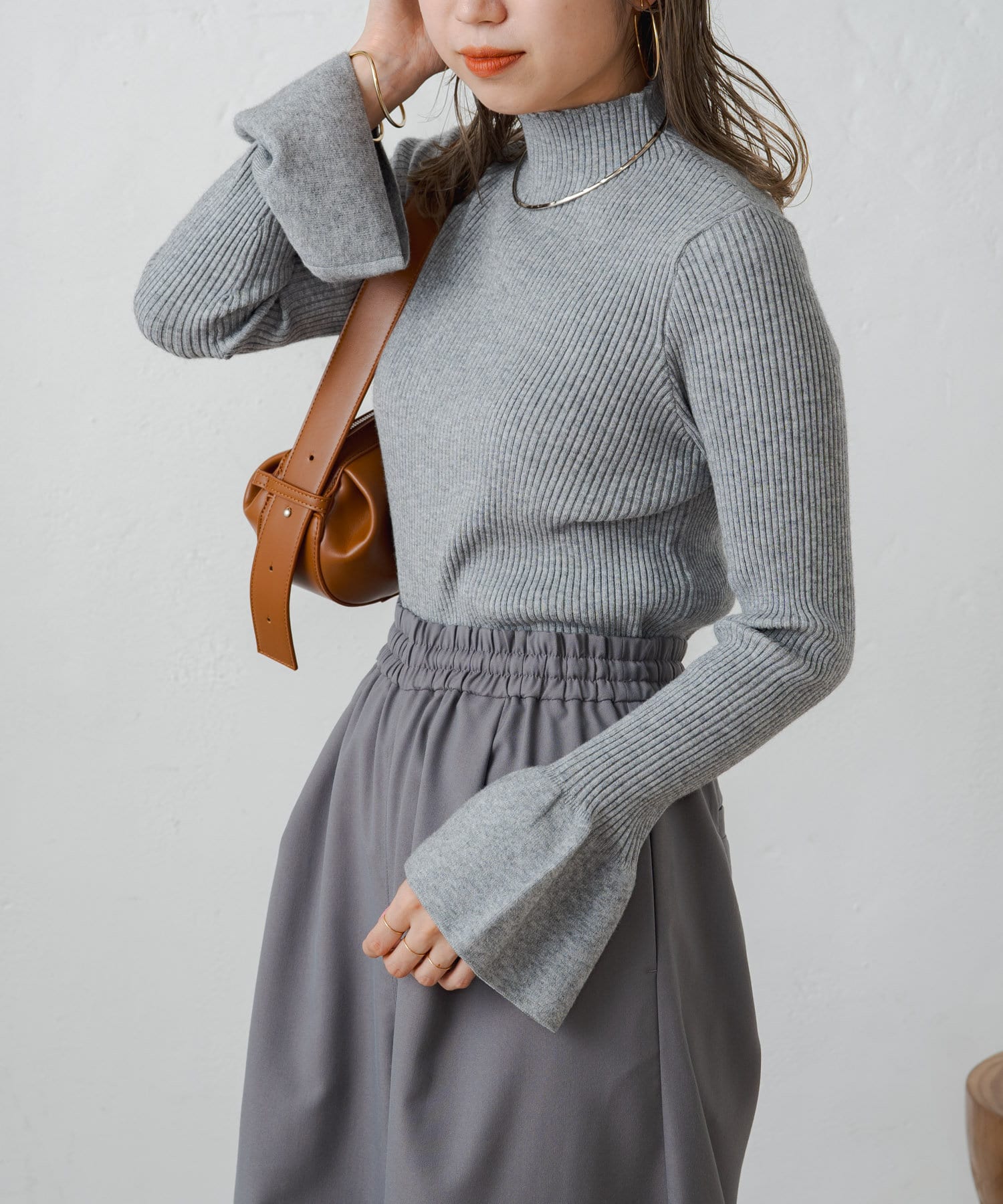・袖口のフリルがフェミニンな印象で、しなやかにネックラインに沿うハイネックニットと、程よいフィット感が魅力な一枚。