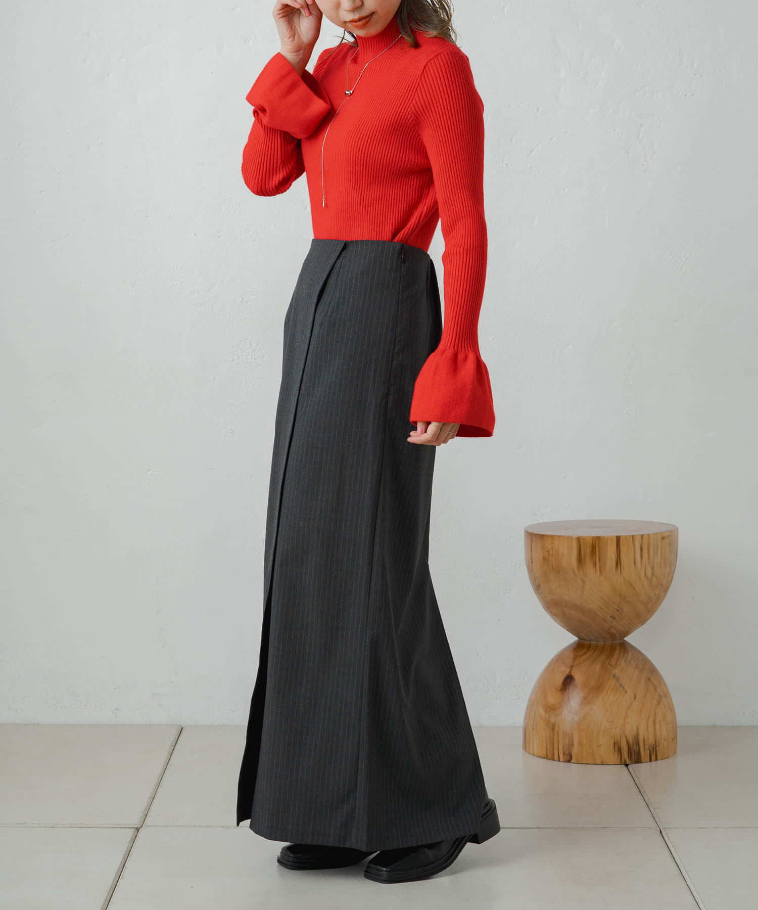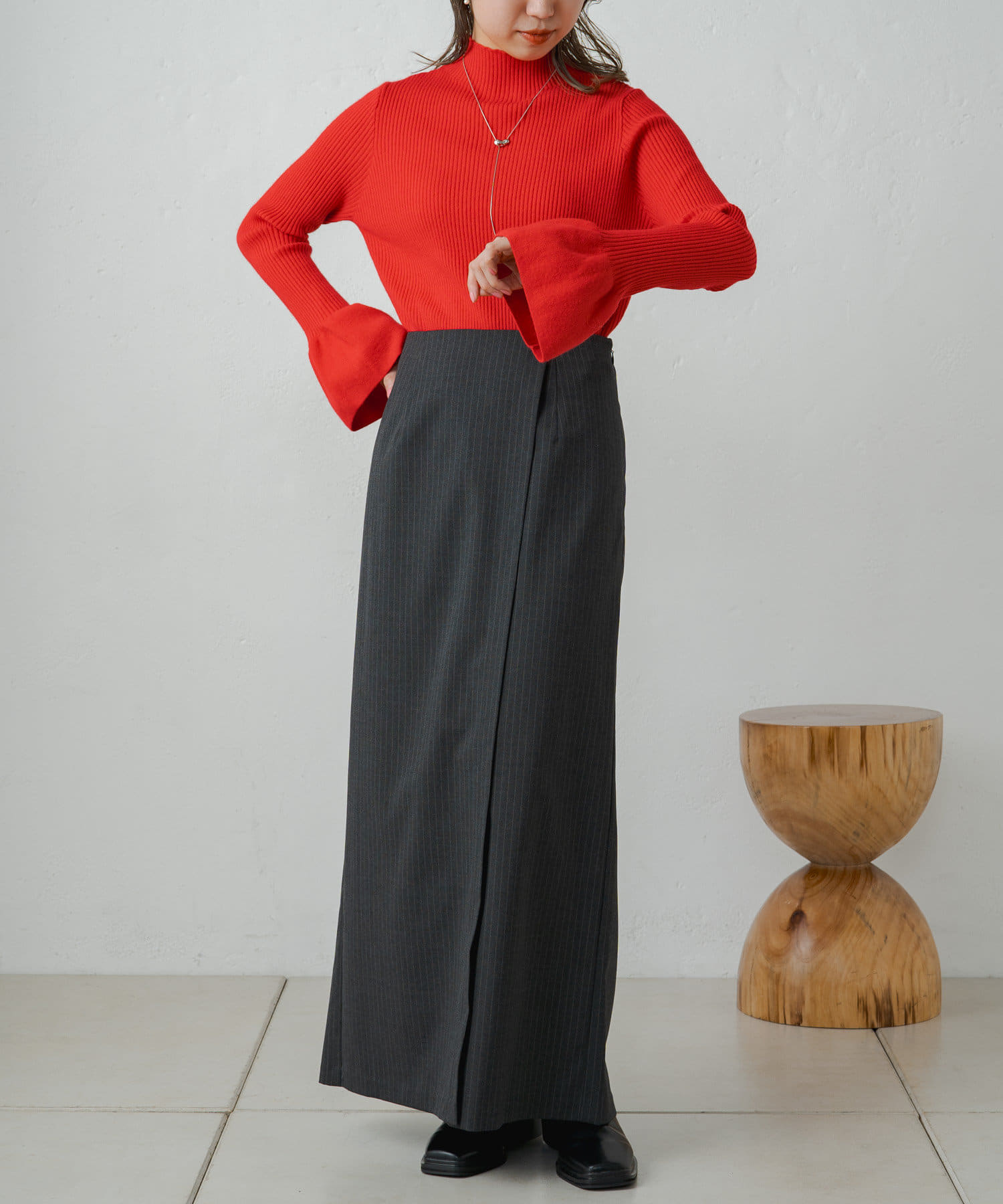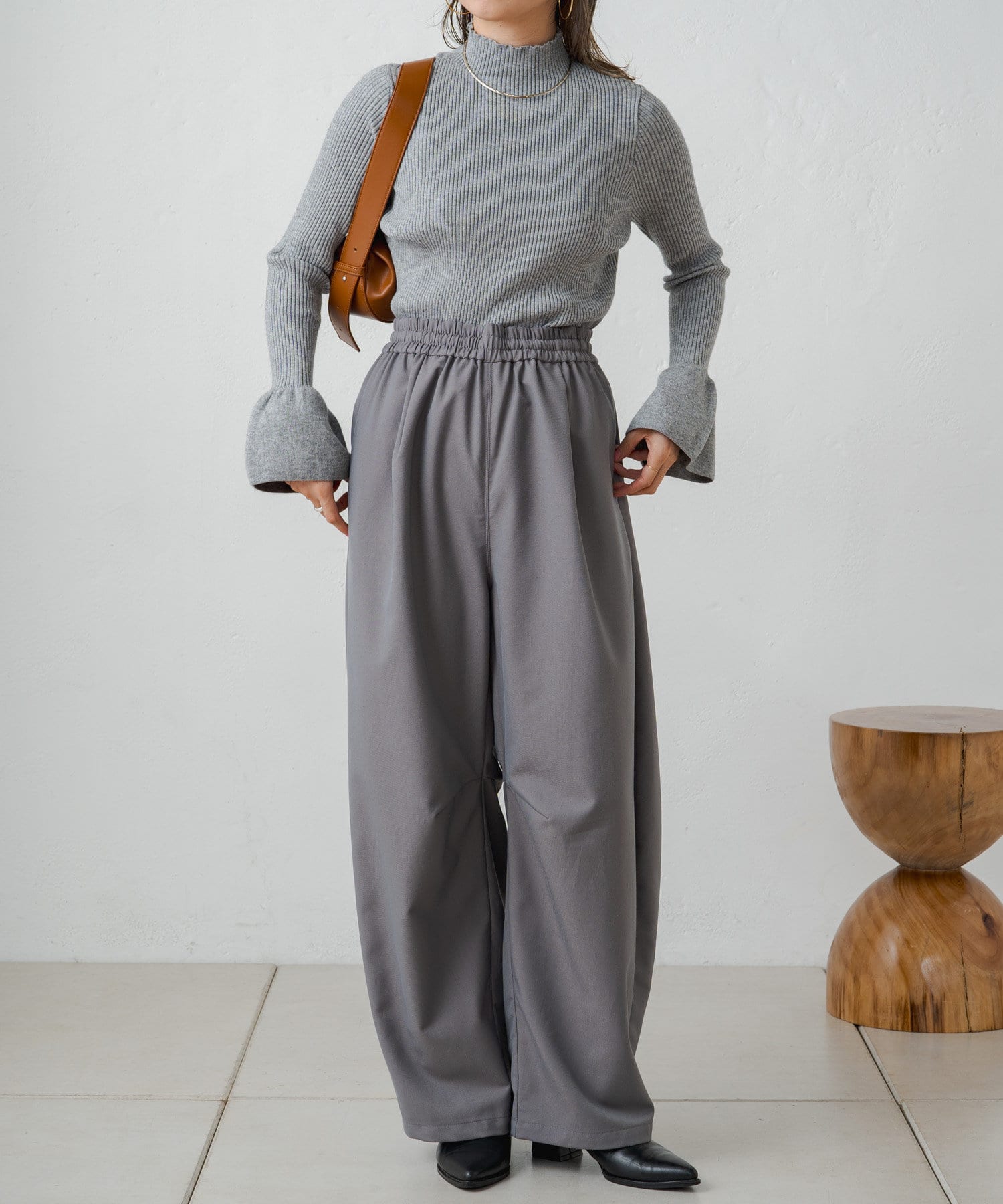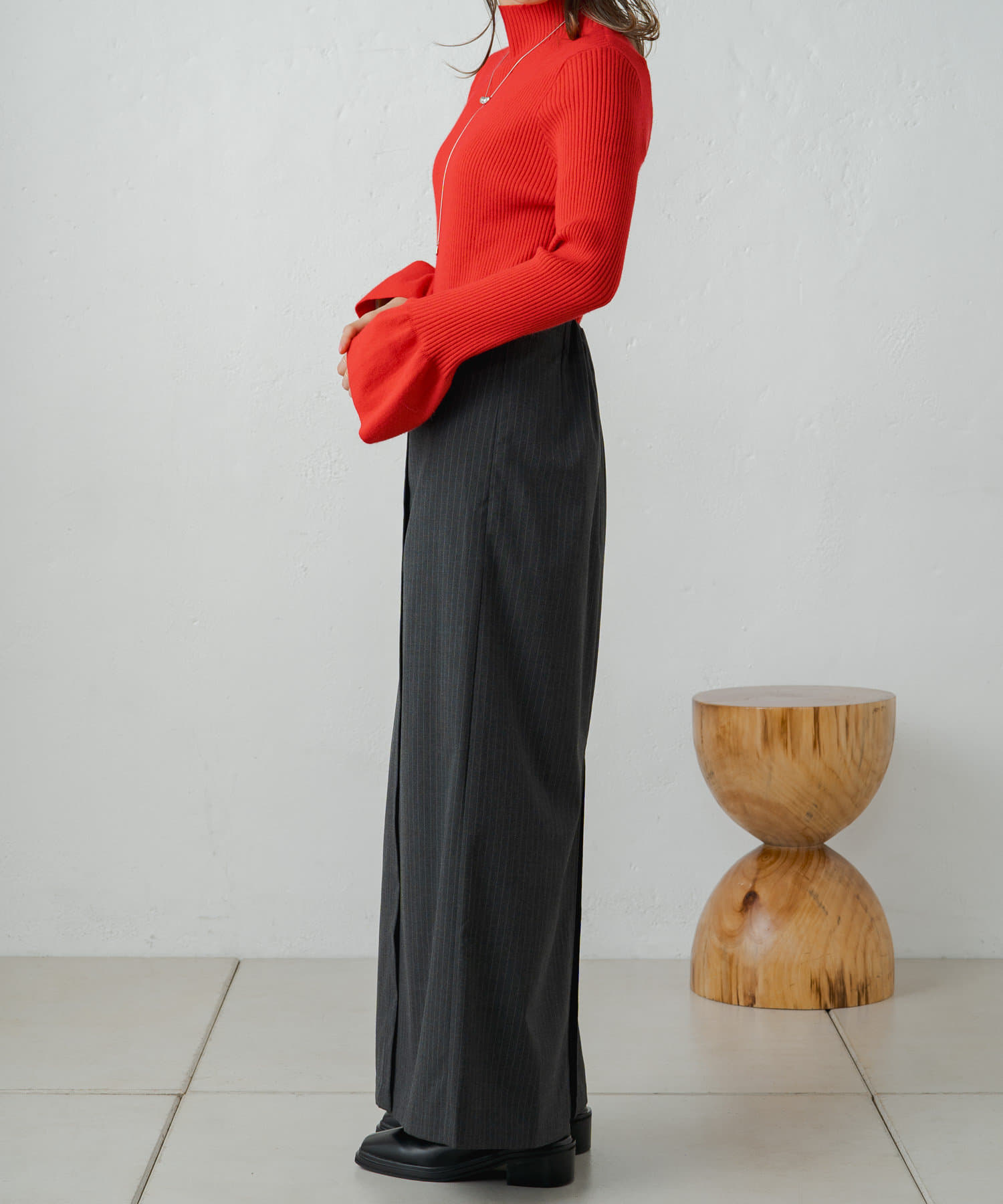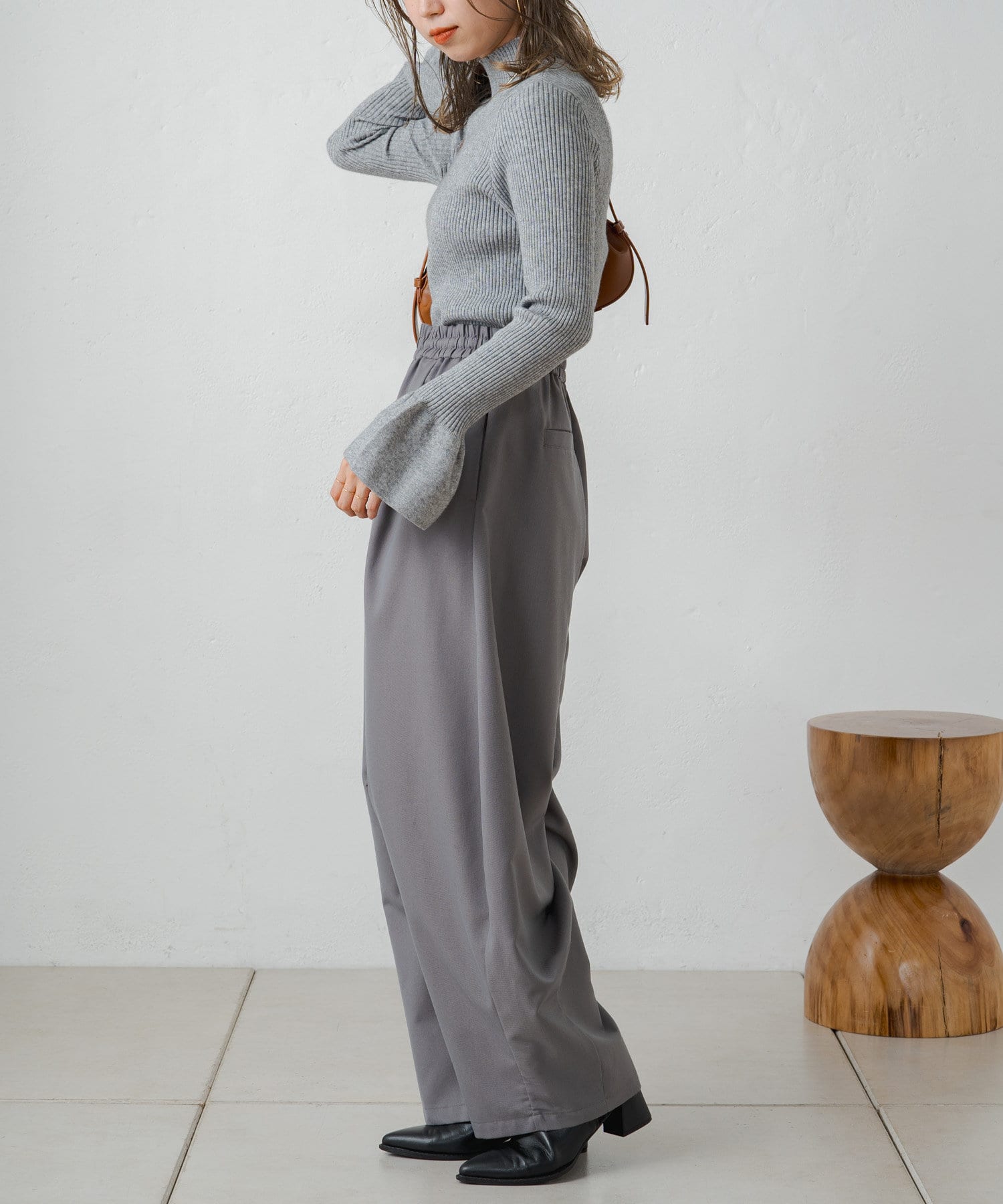 ・袖口のフリルがフェミニンな印象で、しなやかにネックラインに沿うハイネックニットと、程よいフィット感が魅力な一枚。
