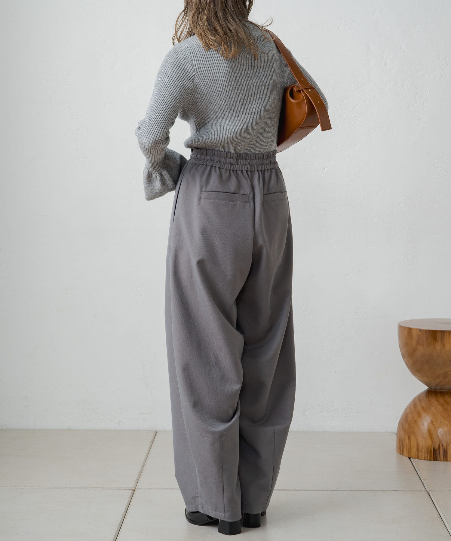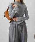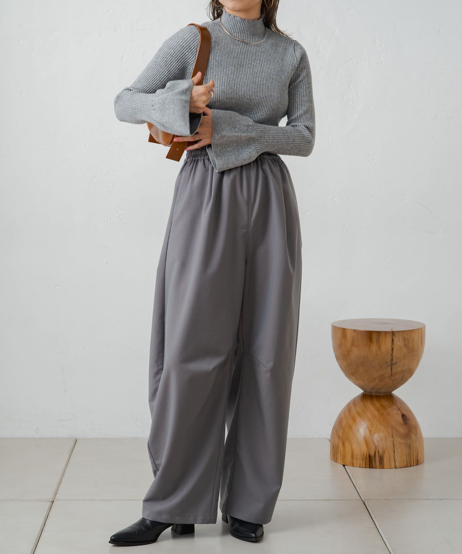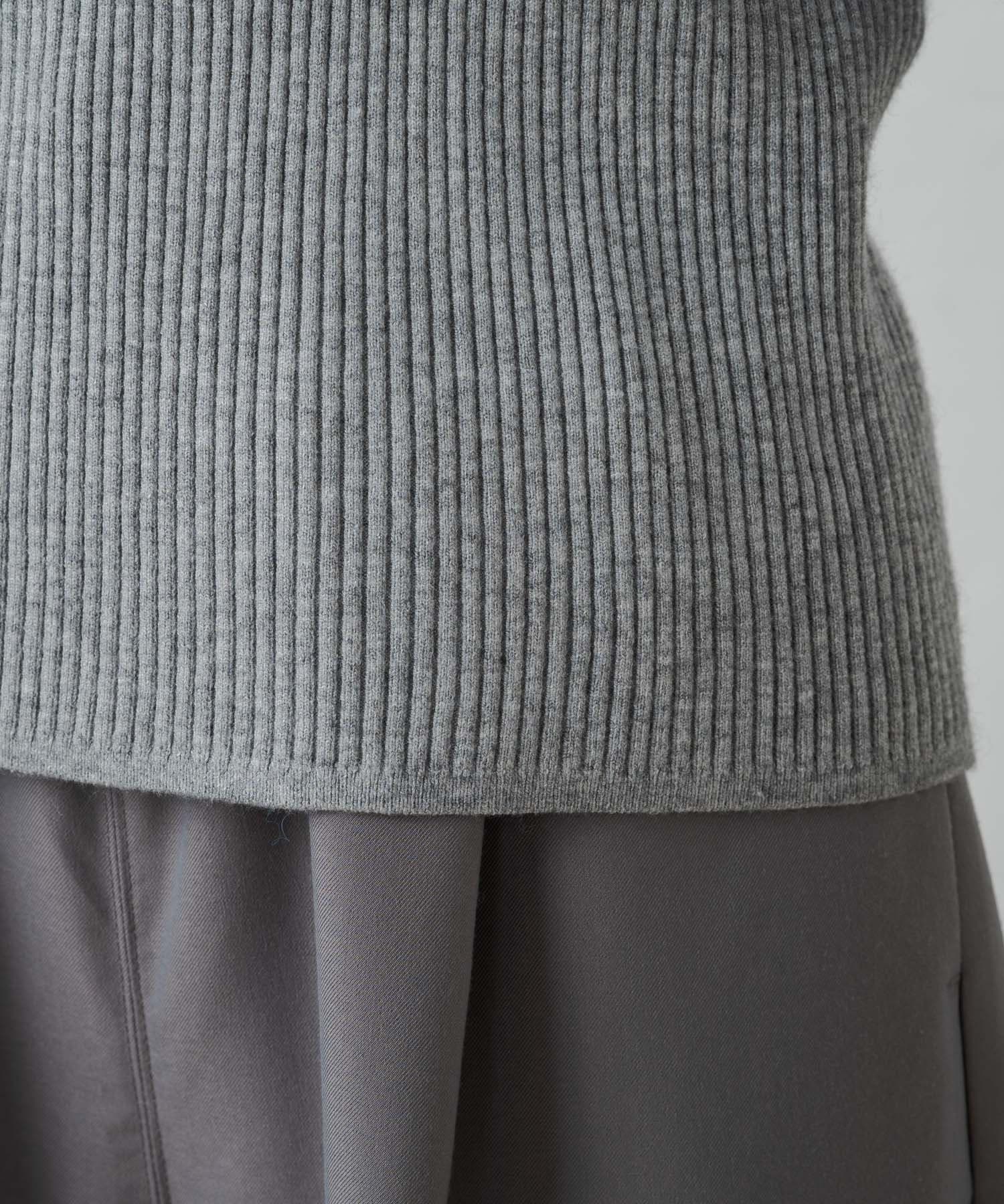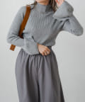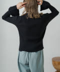 ・伸縮性のあるリブの編地がボディラインに程よくフィット。上半身をすっきりと女性らしく見せてくれます。