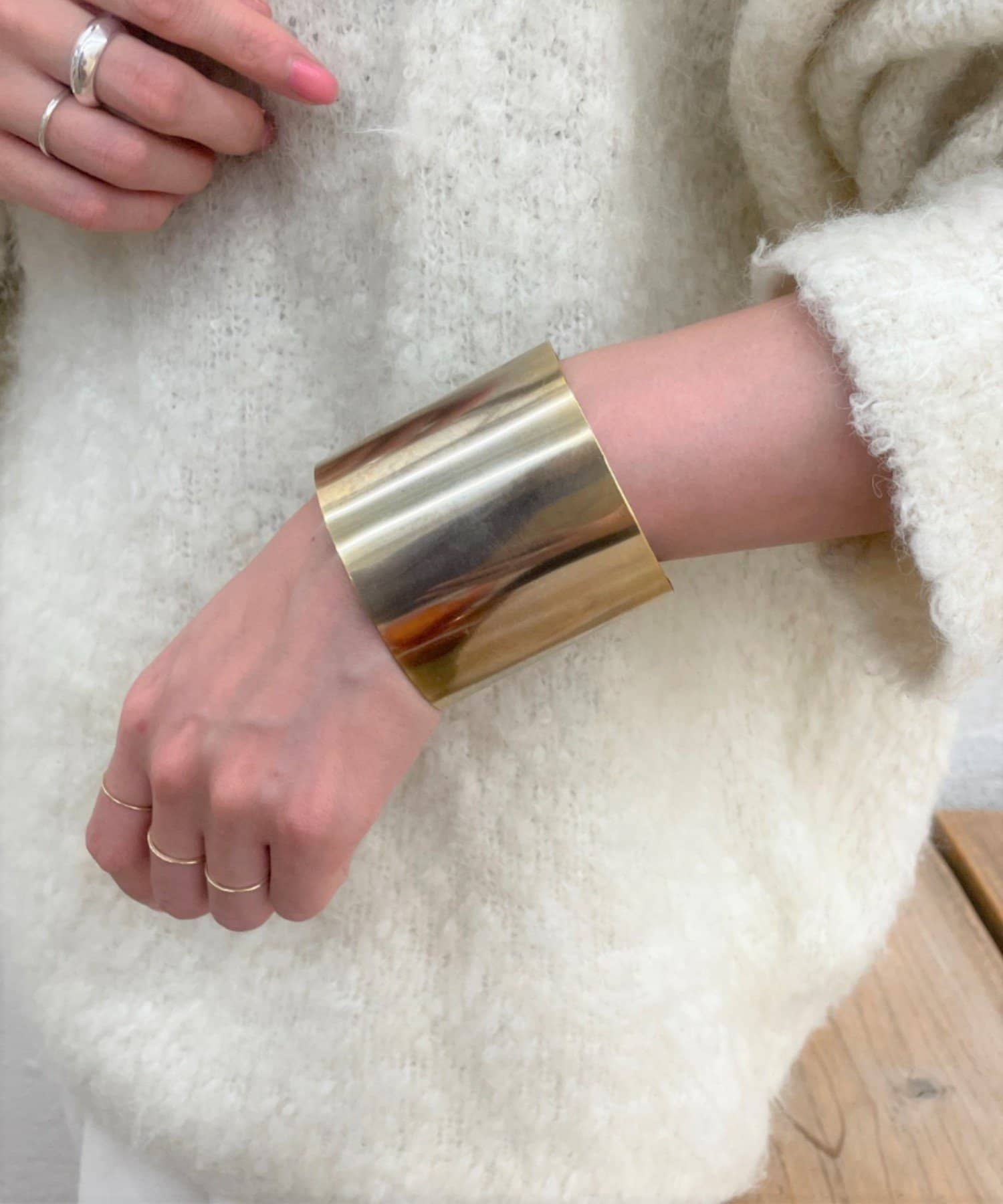 ボリューム感が魅力的なワイドプレートバングル