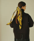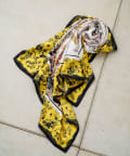イエロー×ブラックのメリハリのある配色がポイントになるスカーフ