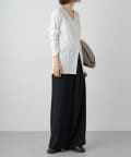 ・脚のラインを拾いづらいややワイドなシルエットと、裾がフレアになっているので美脚効果も◎