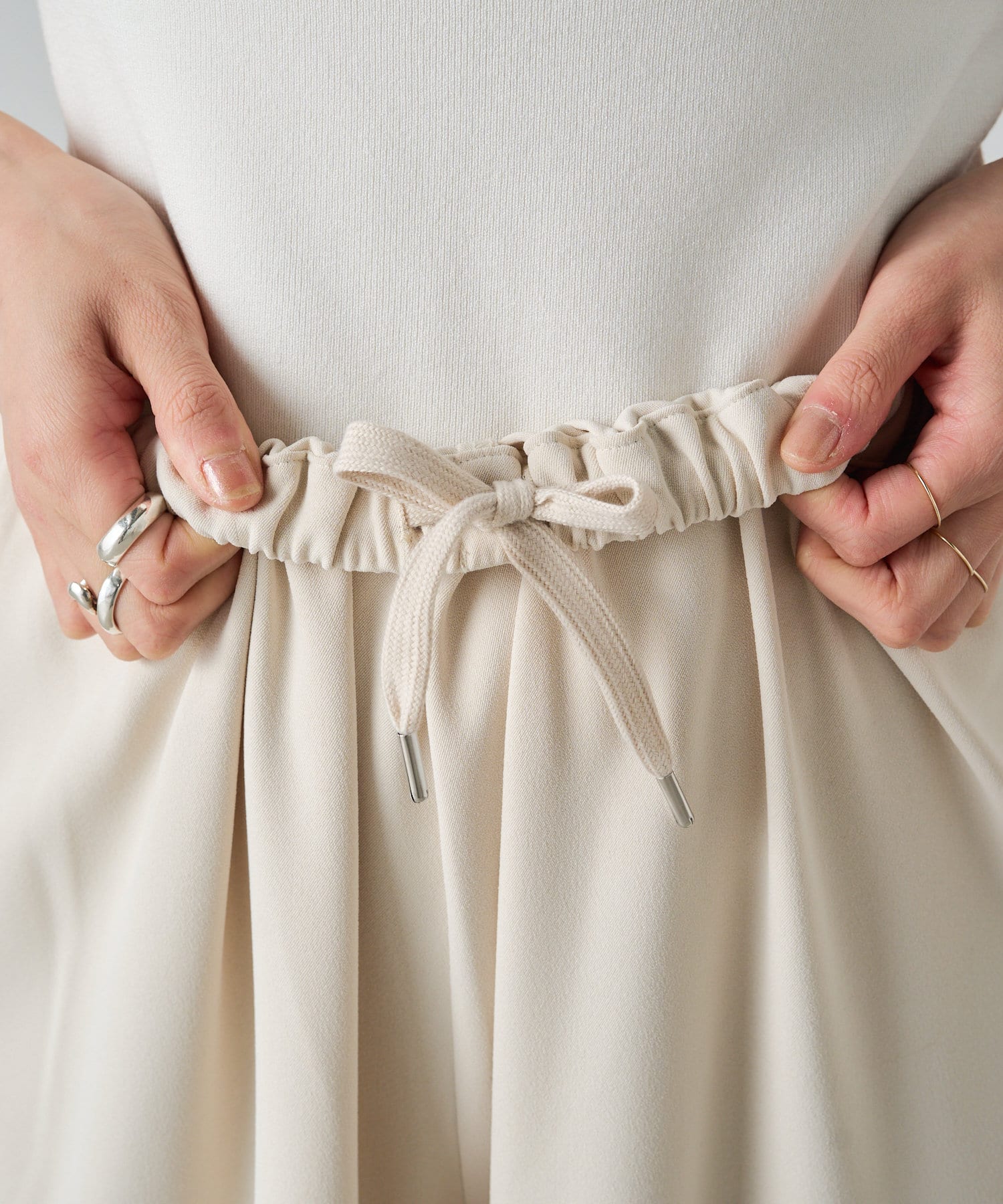 ・ウエストが絞れる紐が付き、幅広い体型の方にご着用頂けます◎