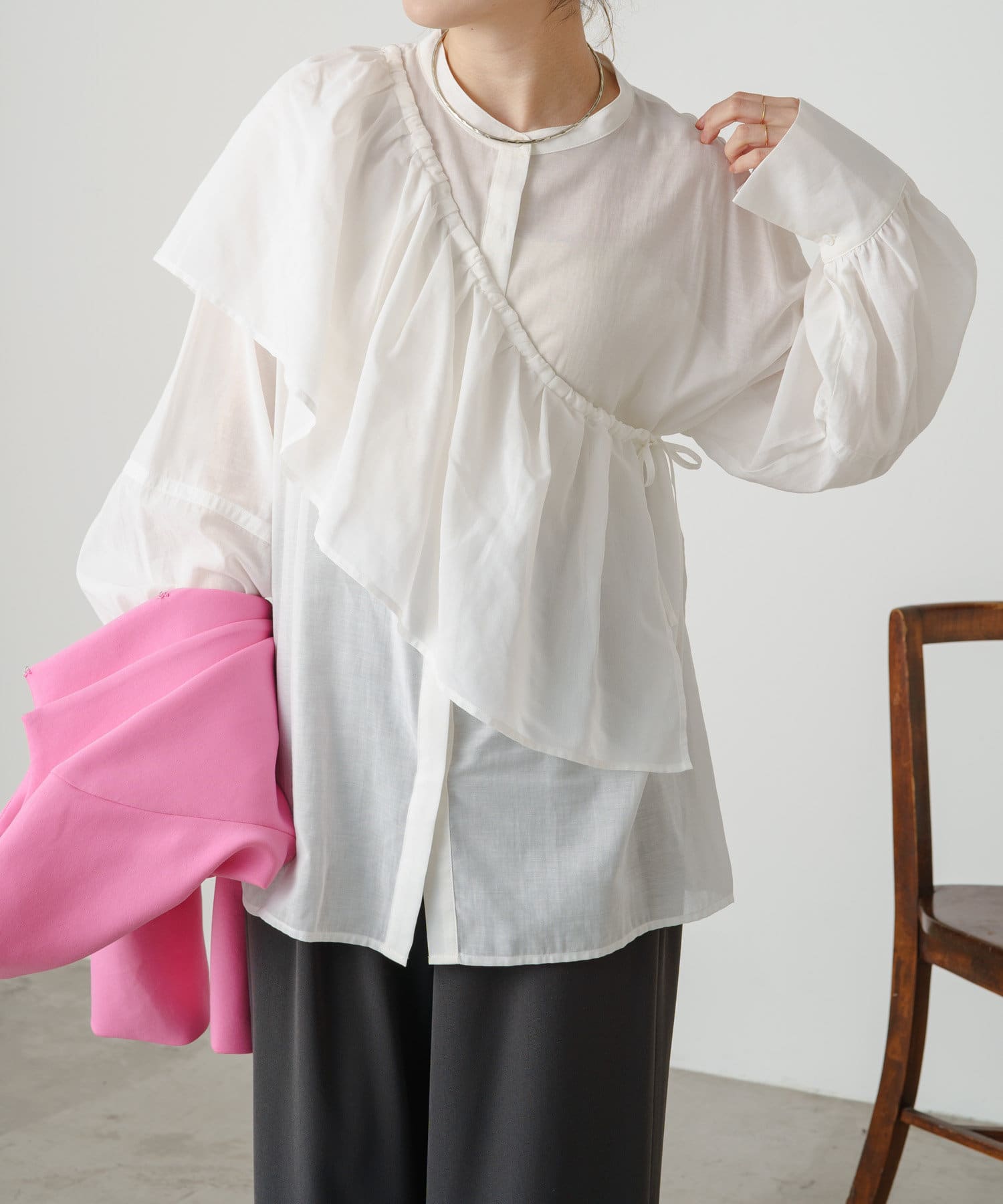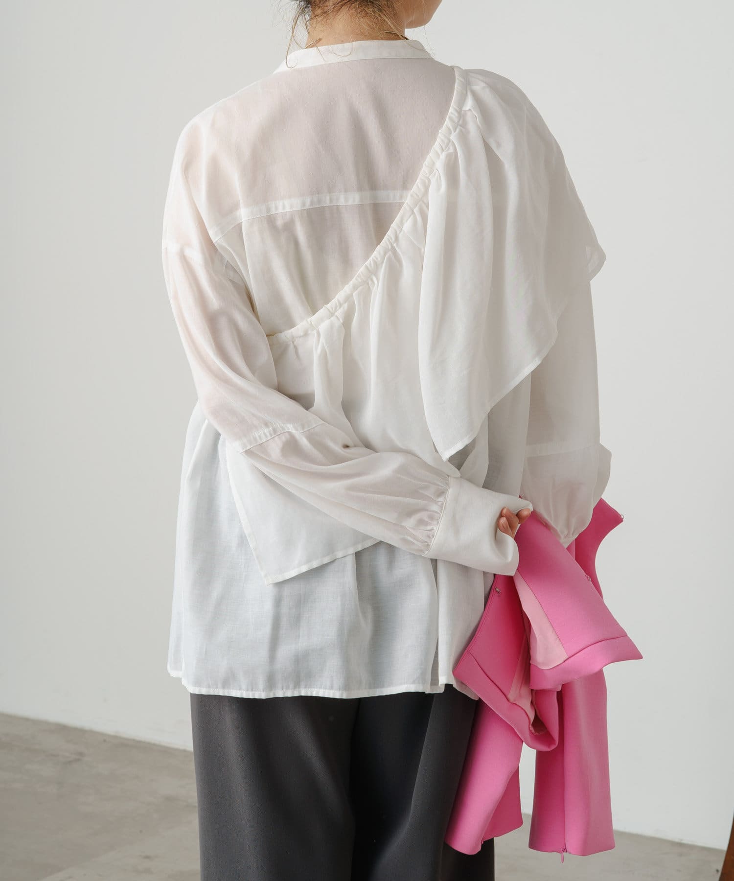 ・アレンジ自在な襟のデザインで、1枚で何役にもなる万能ブラウス
