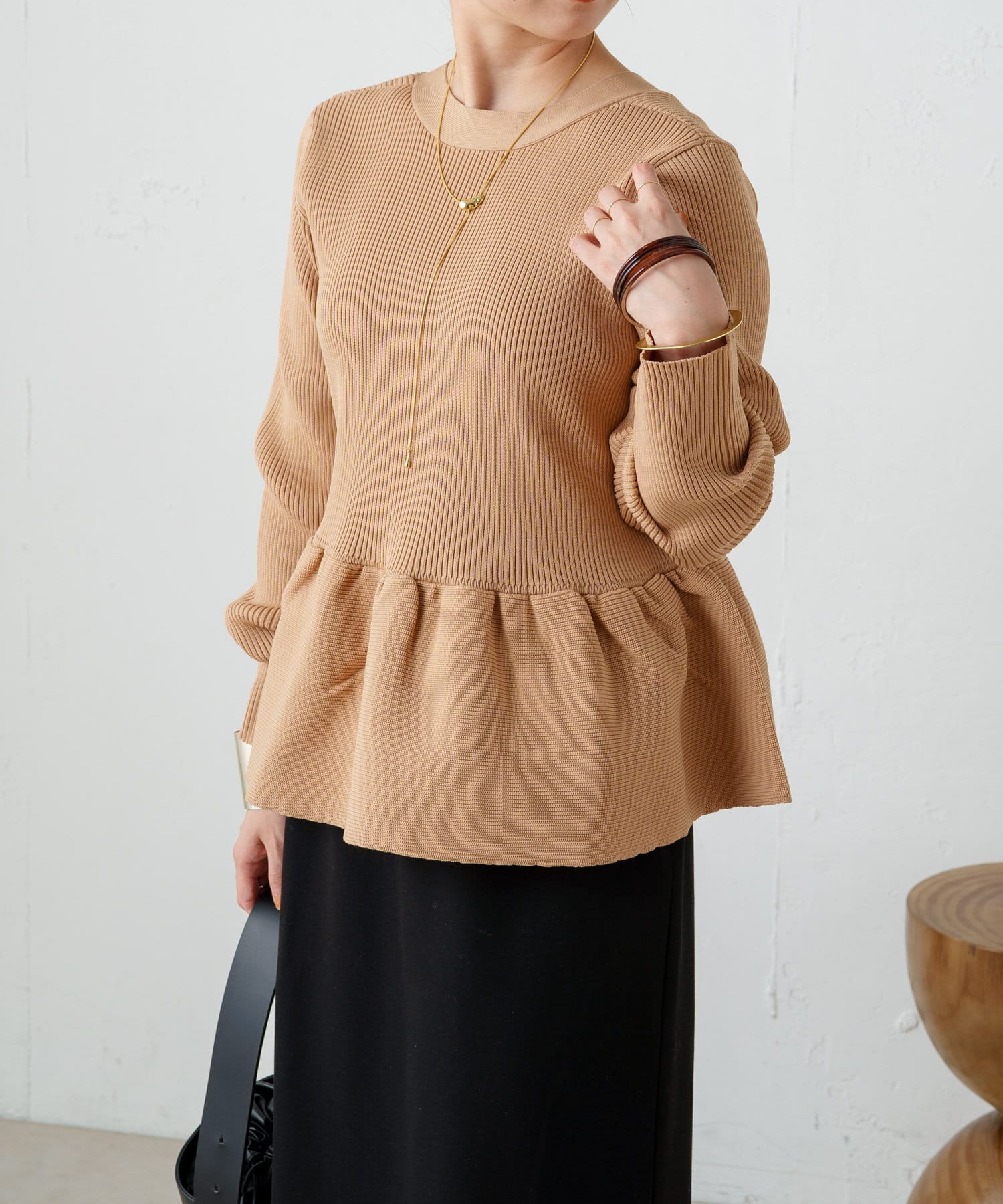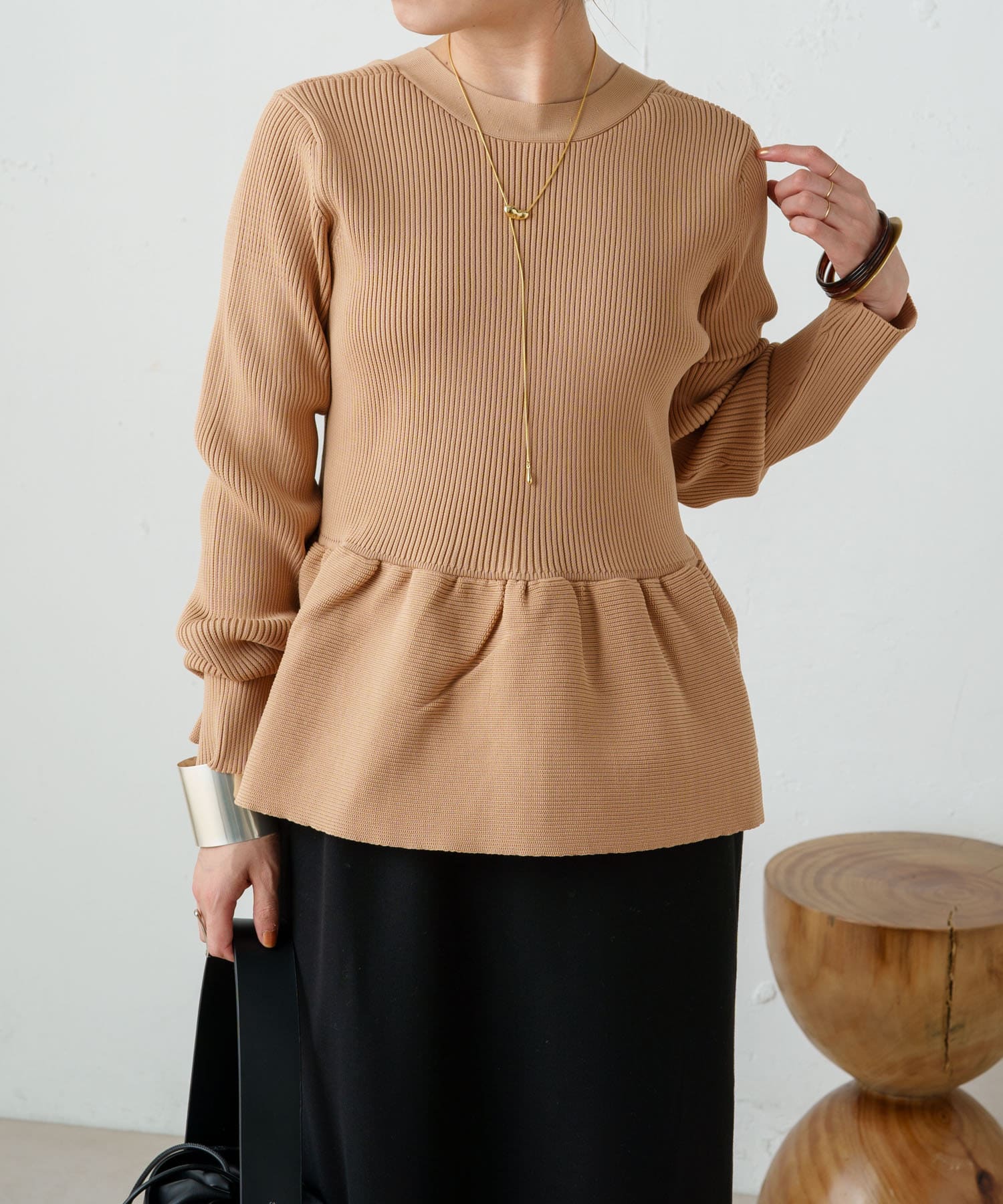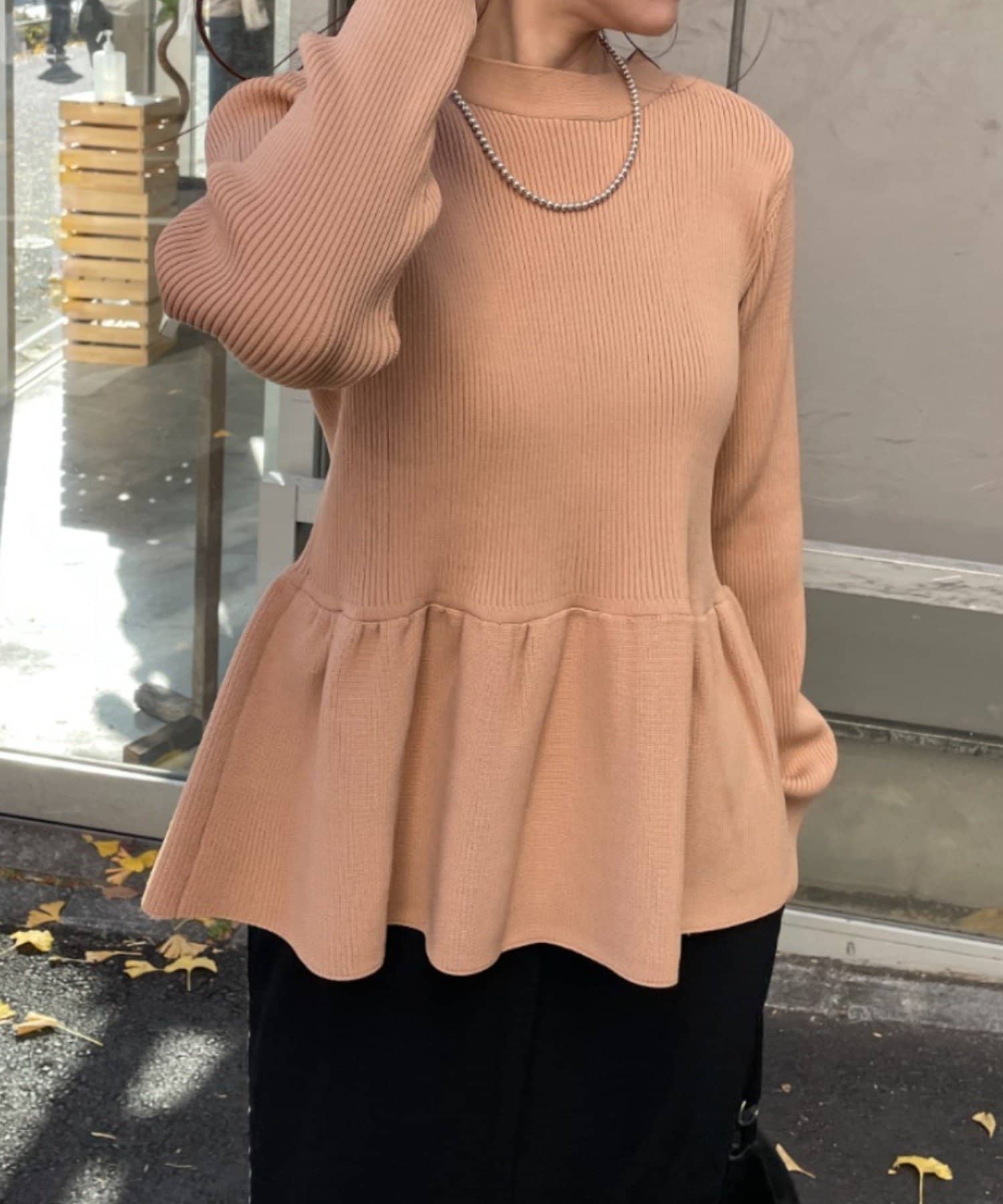 パンツにもスカートにも合う 着るだけでオシャレ見えするトップスです。ペプラム位置も長さも絶妙で 生地も厚すぎず薄すぎず 真夏以外着れると思います。