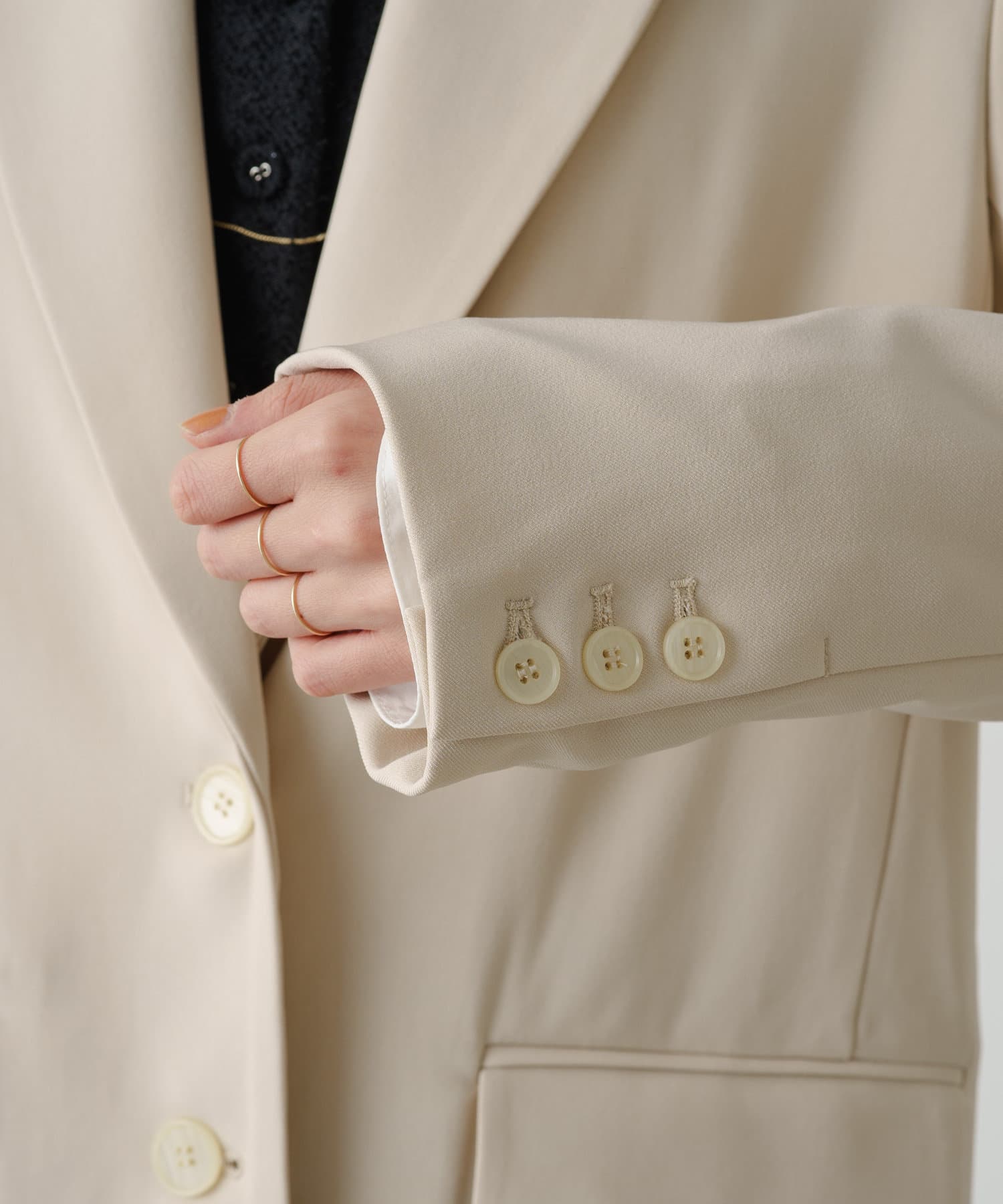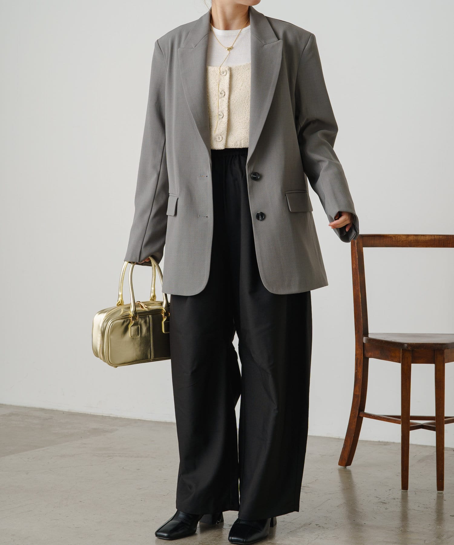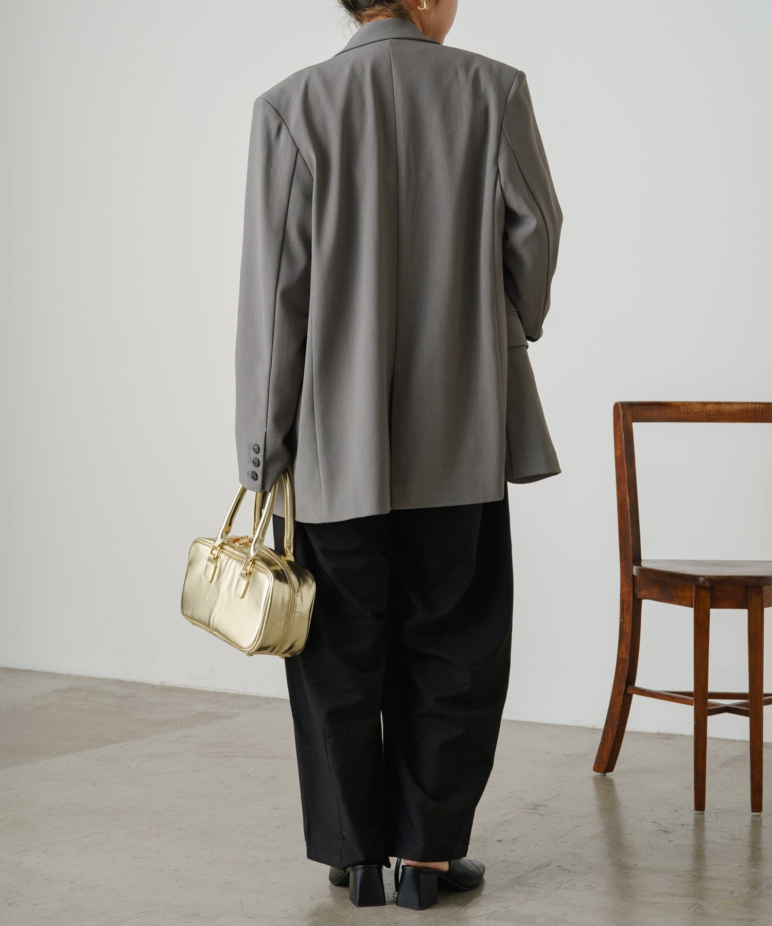 ・トレンドのパワーショルダーのデザインで、女性らしさも残しつつモードで引き締まった印象に◎