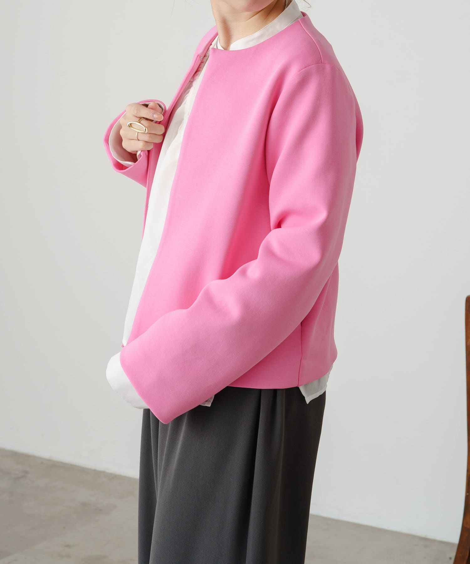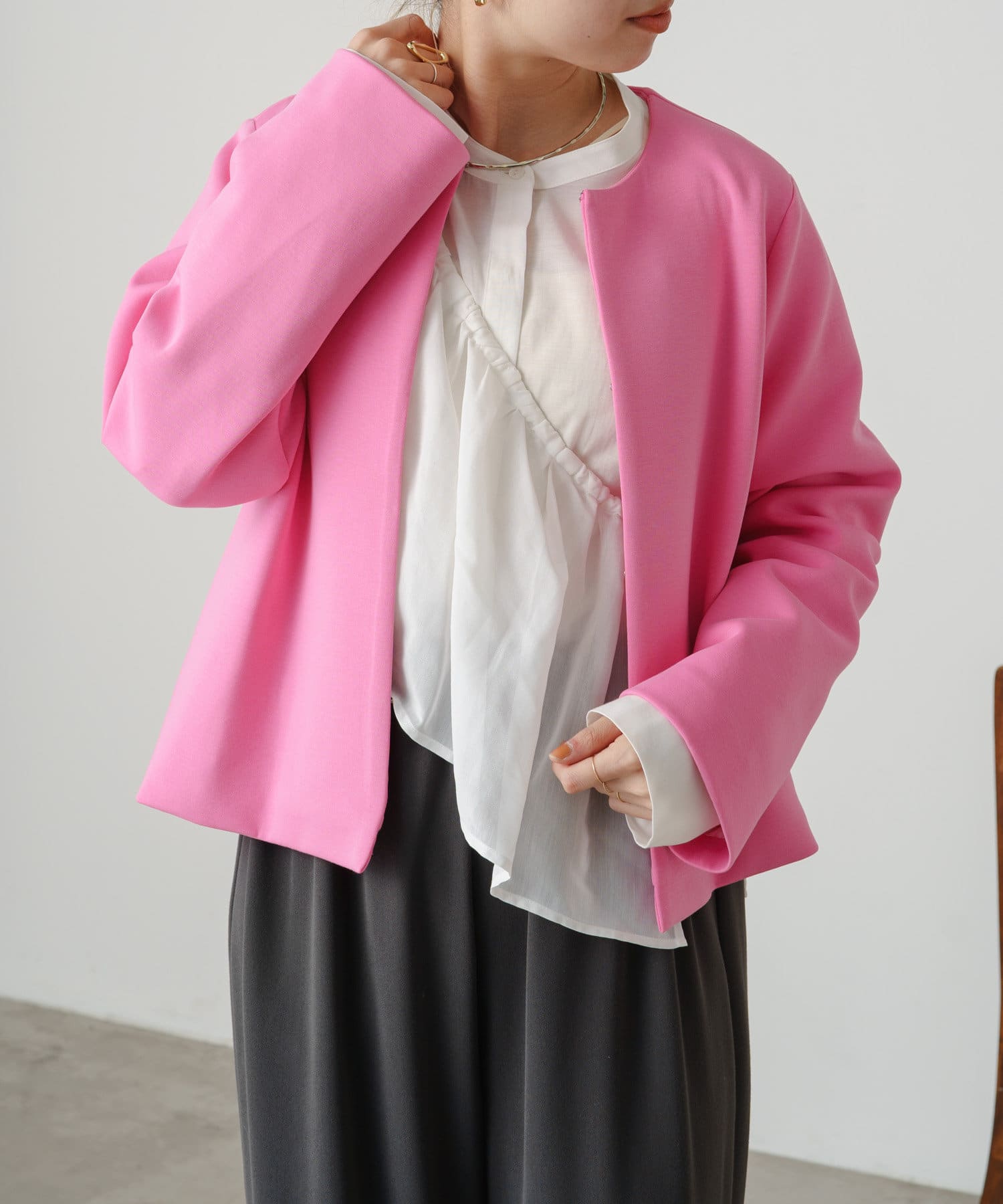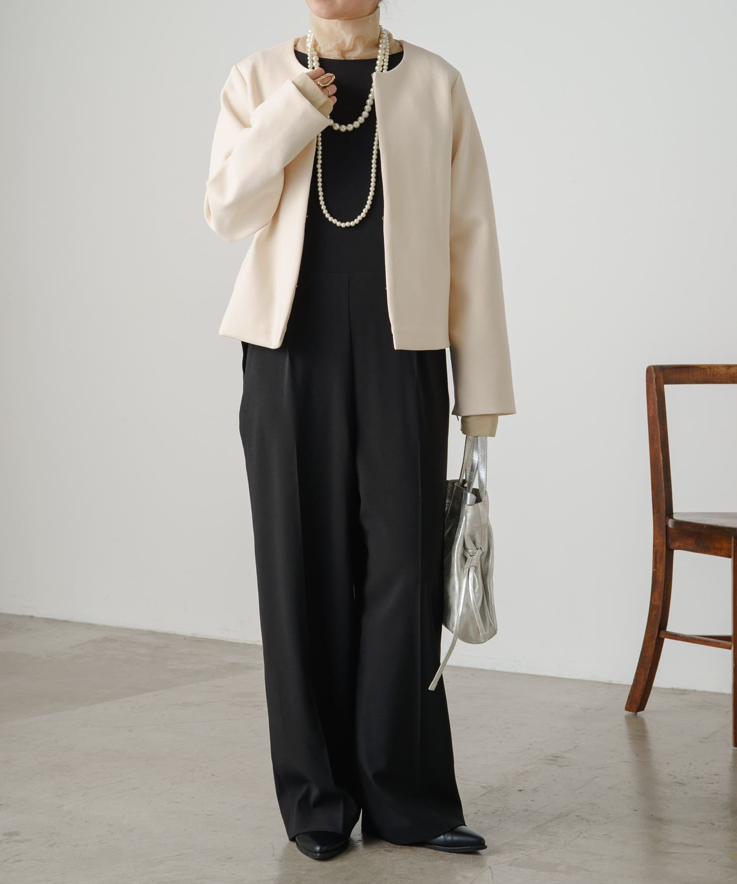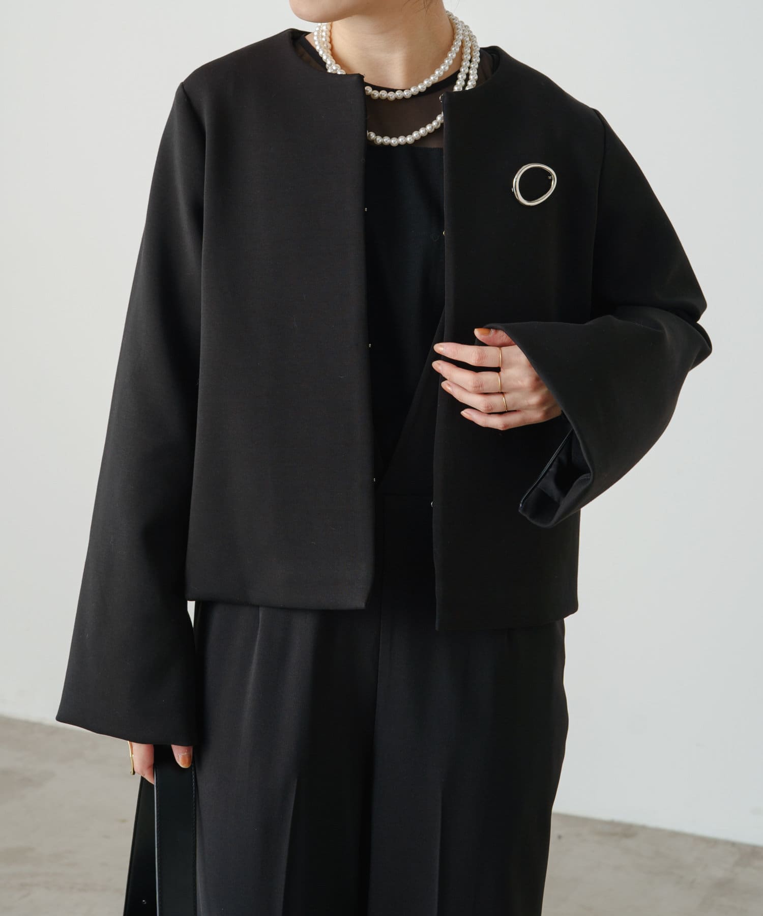 【オケージョン/結婚式】ノーカラーポンチジャケット