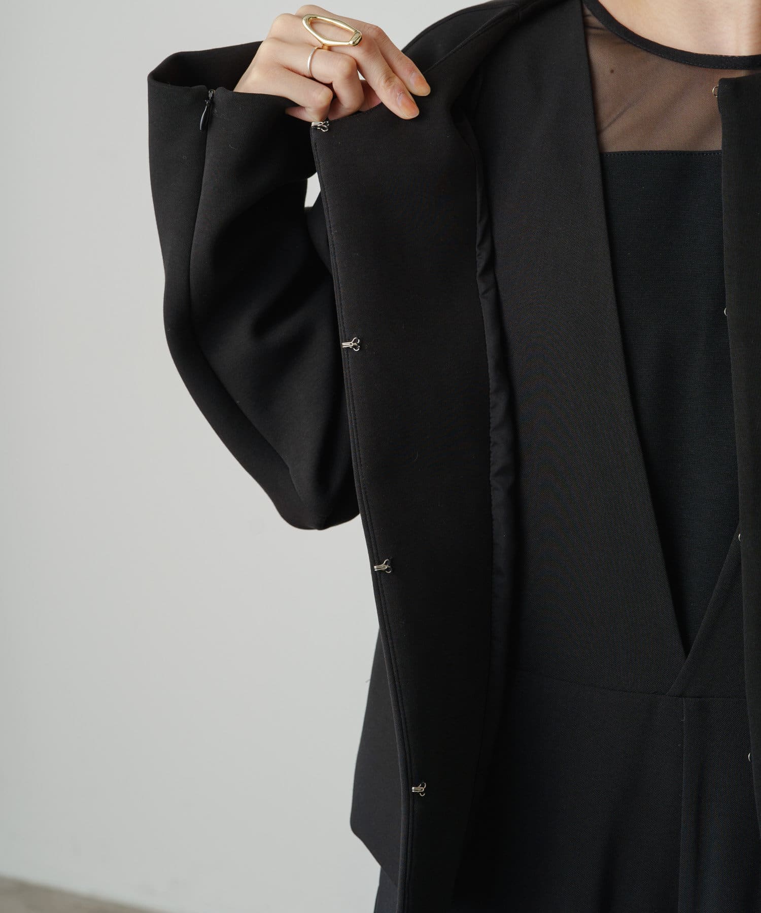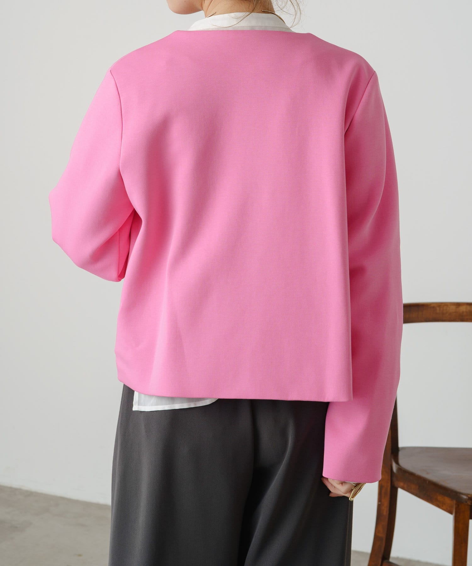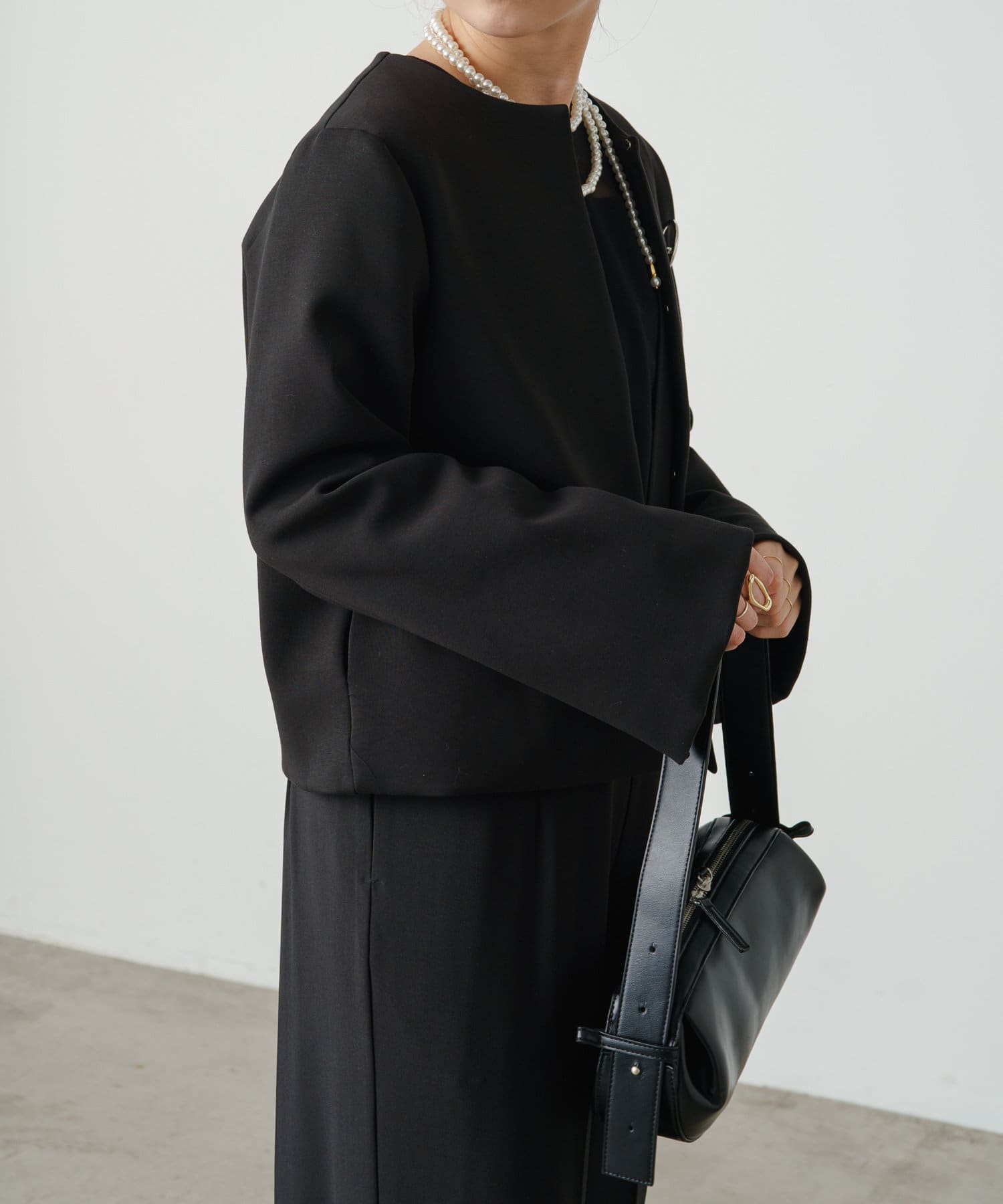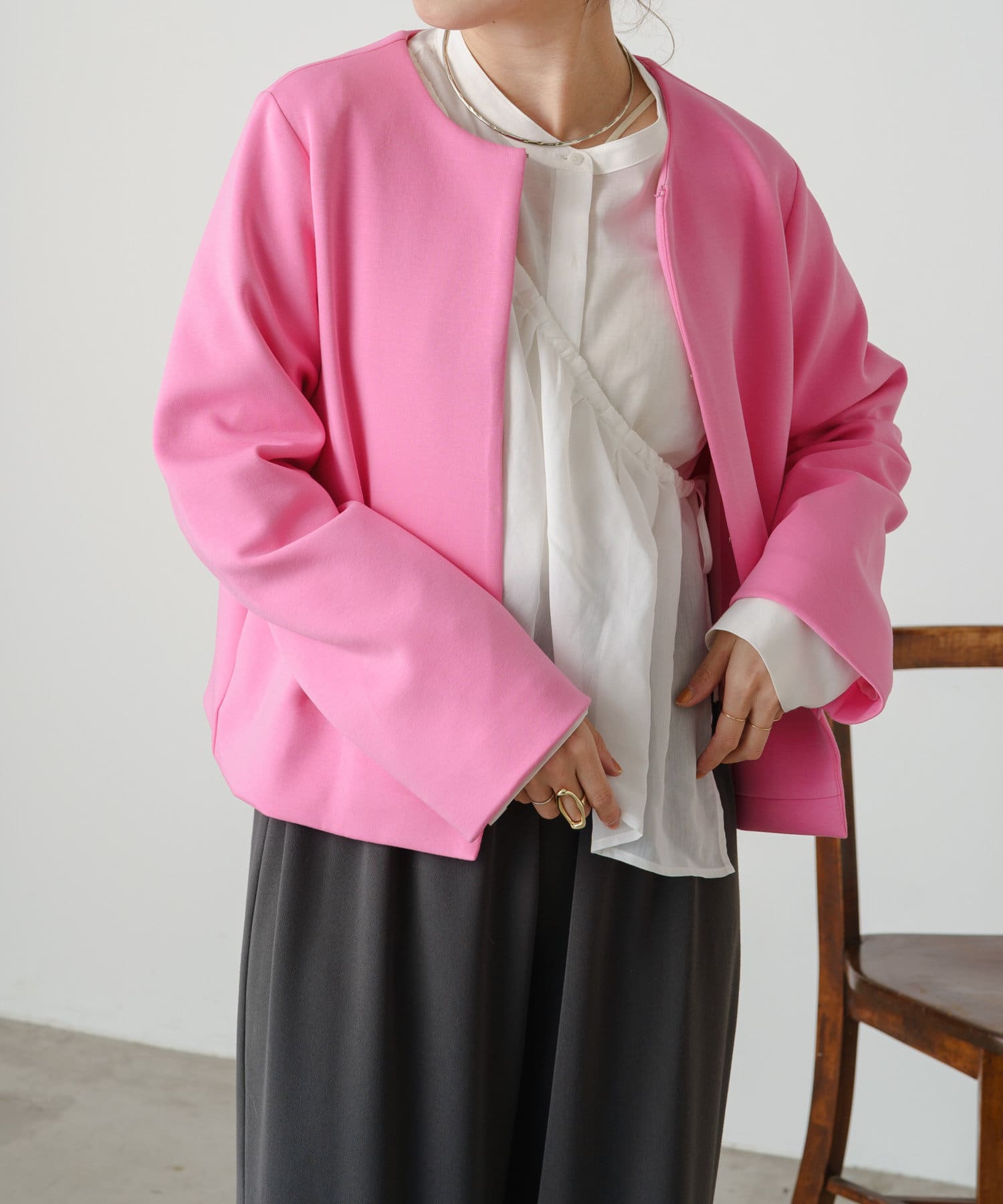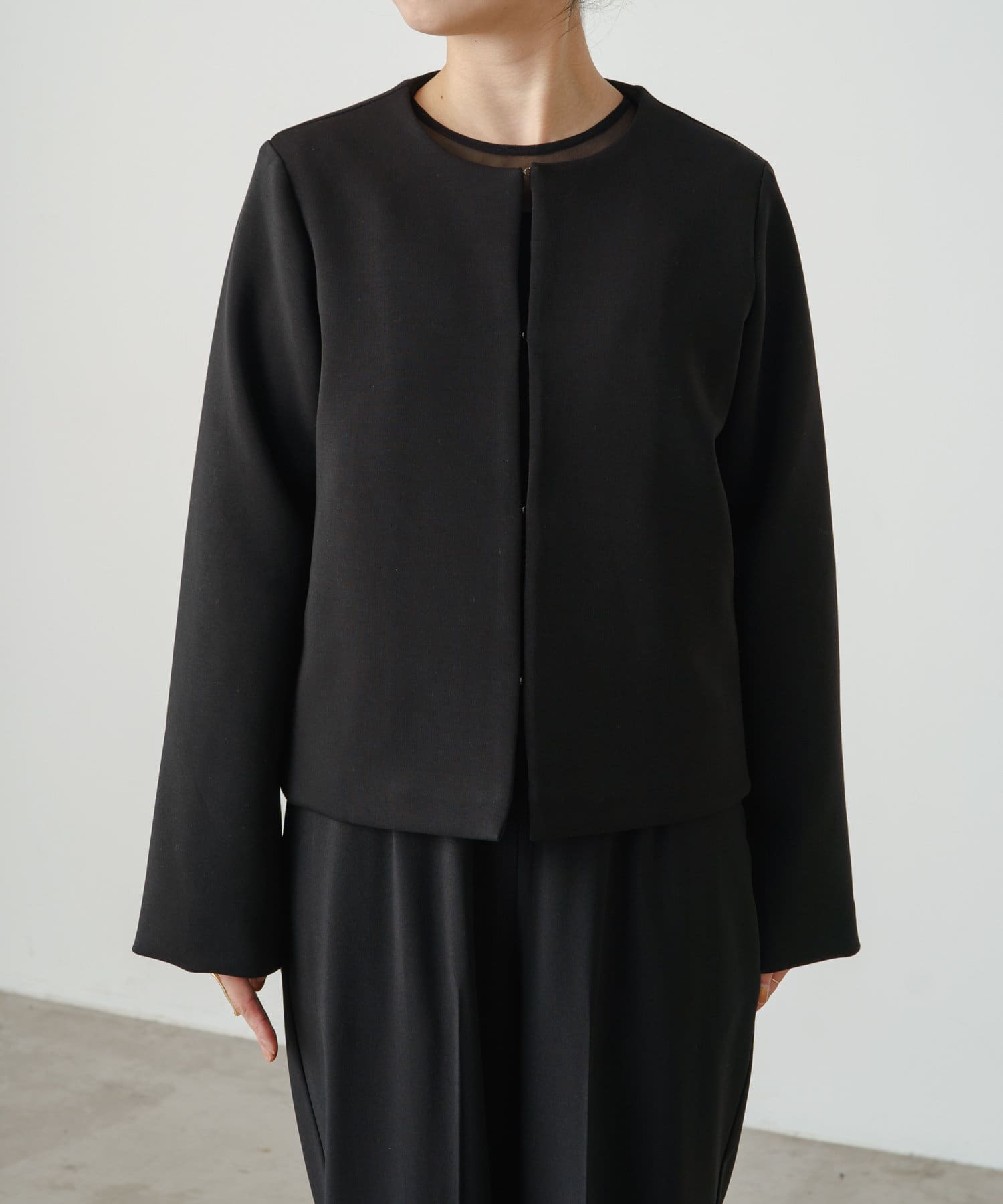 【オケージョン/結婚式】ノーカラーポンチジャケット