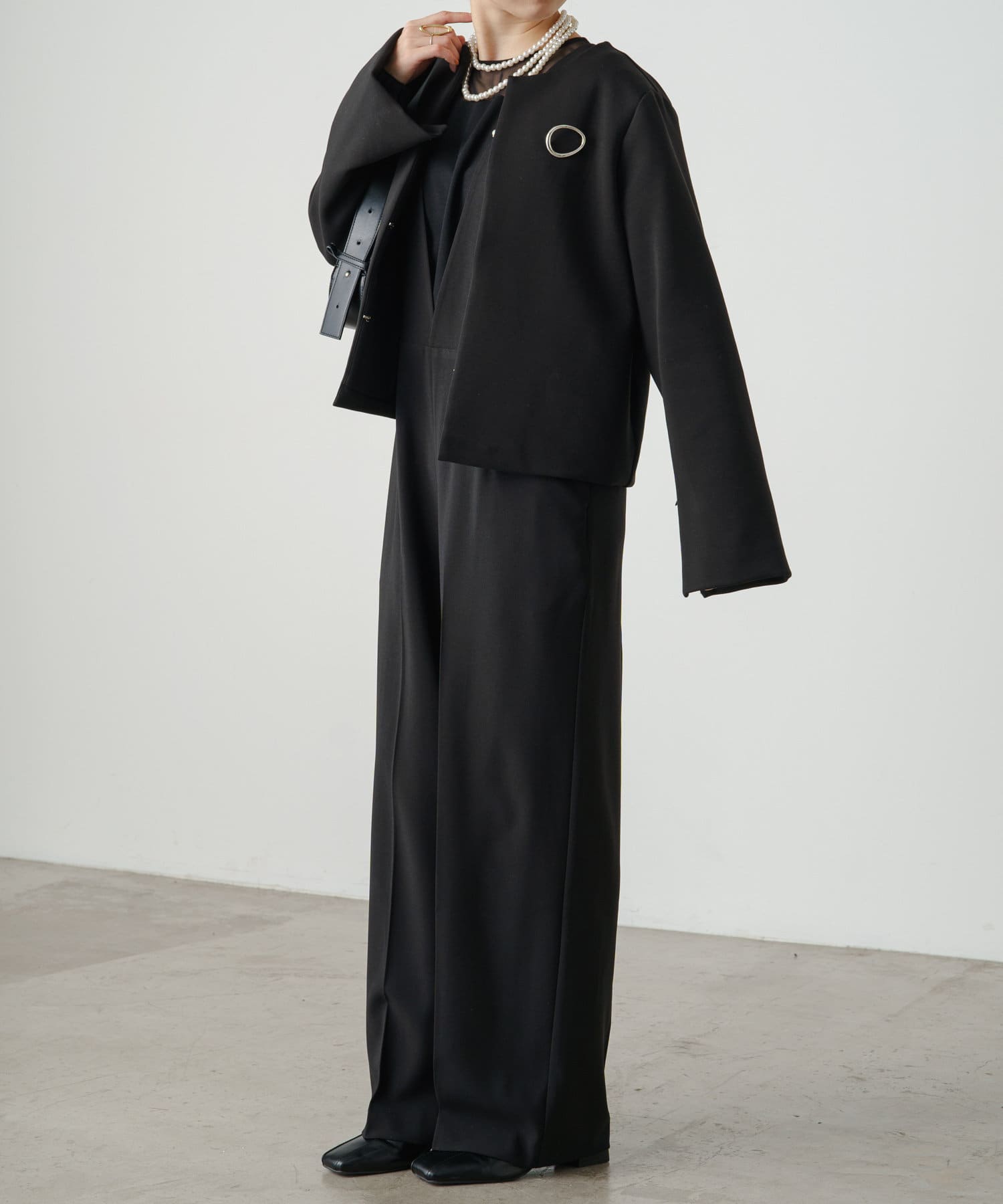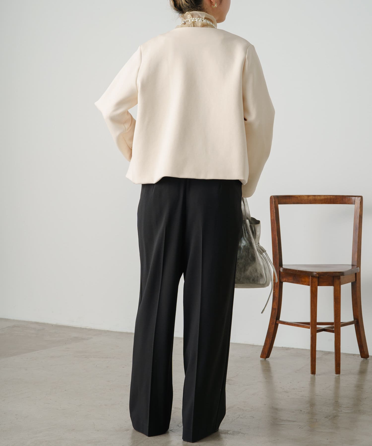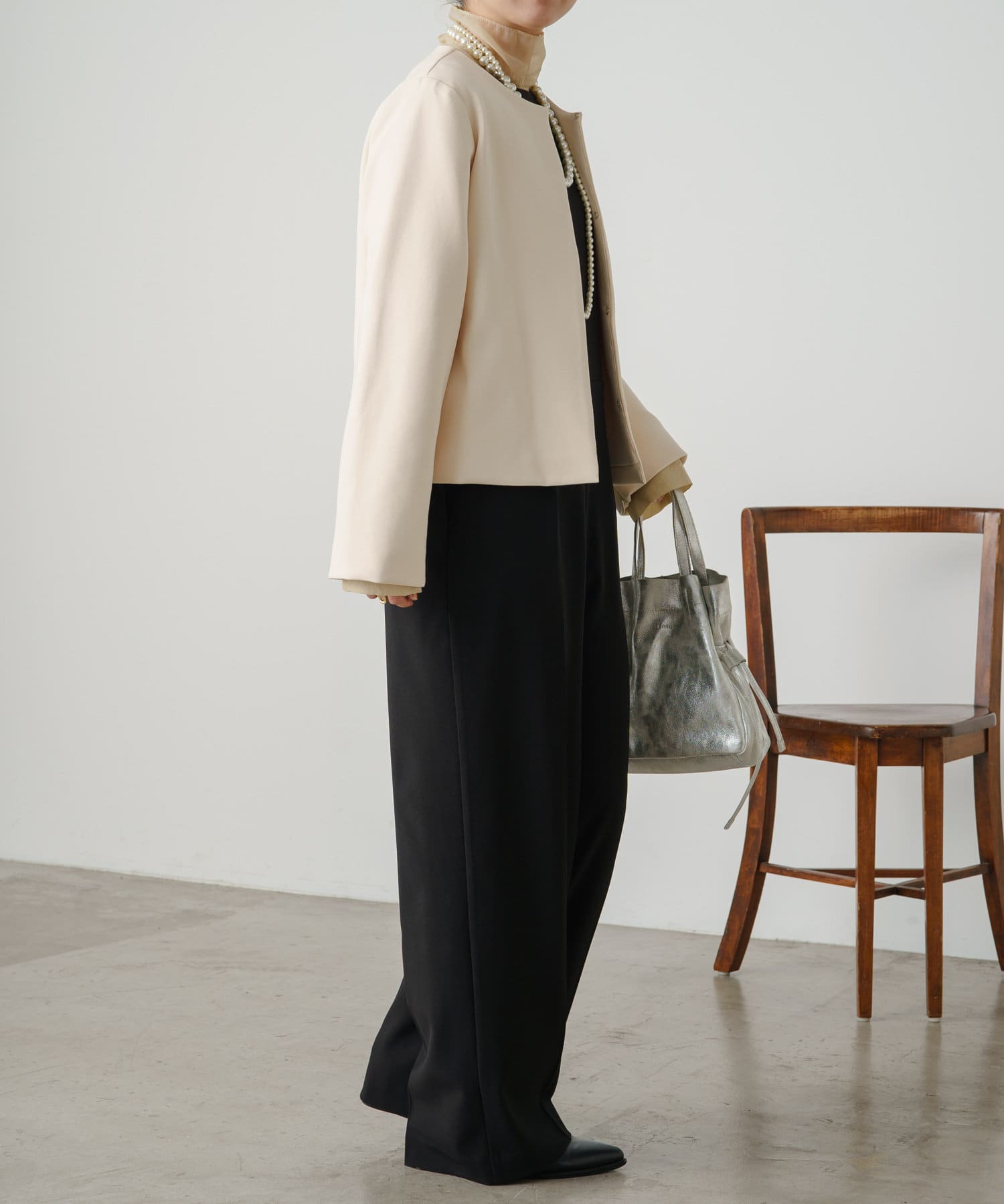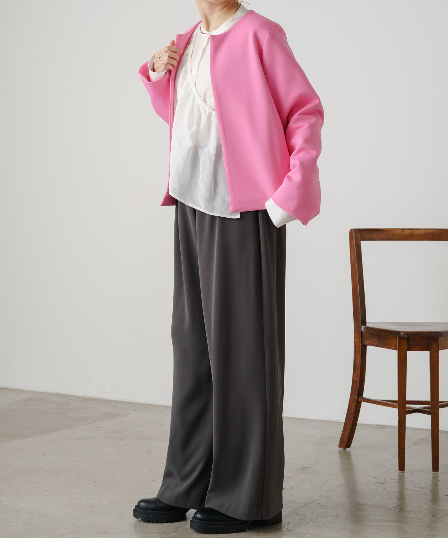 【オケージョン/結婚式】ノーカラーポンチジャケット