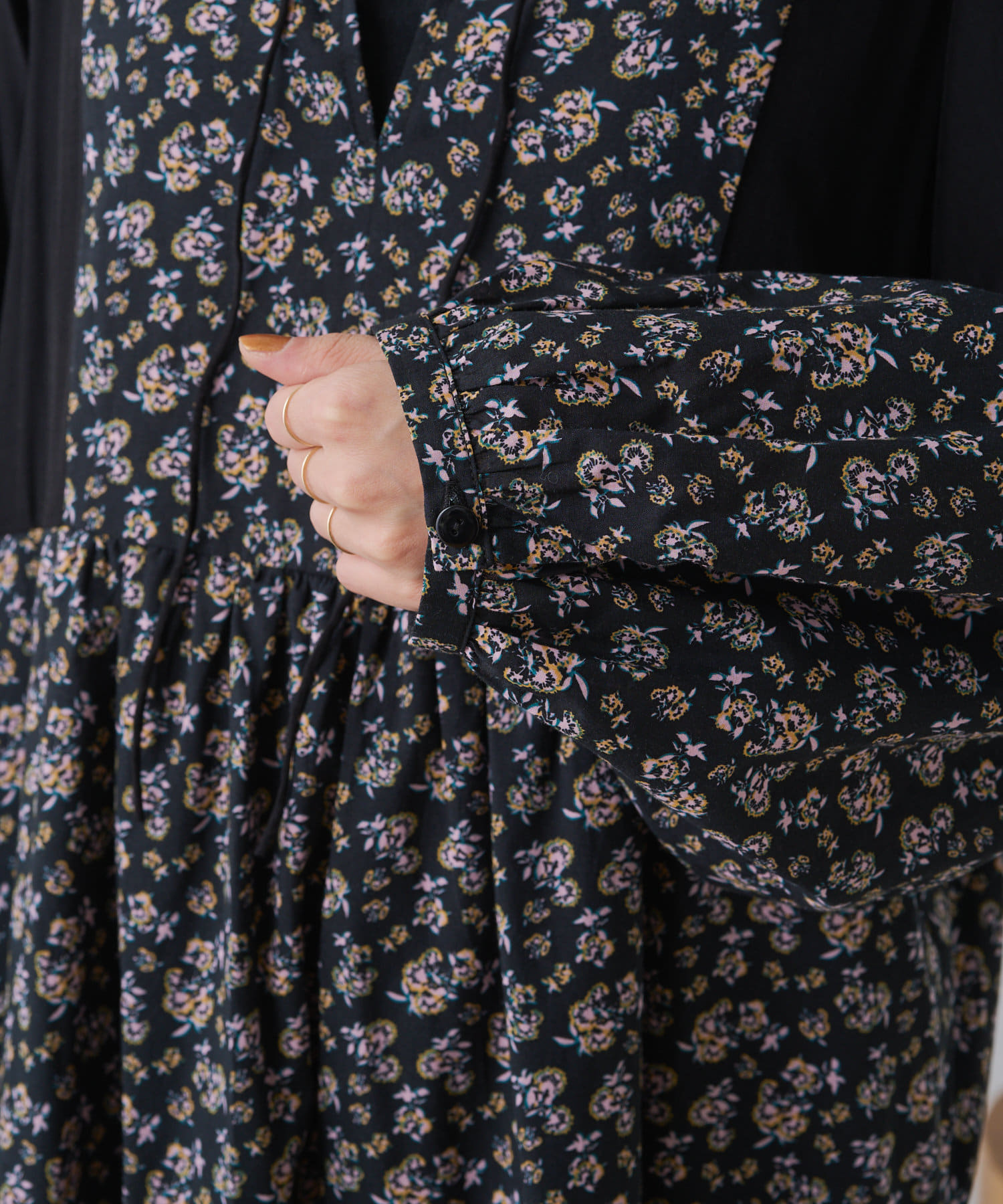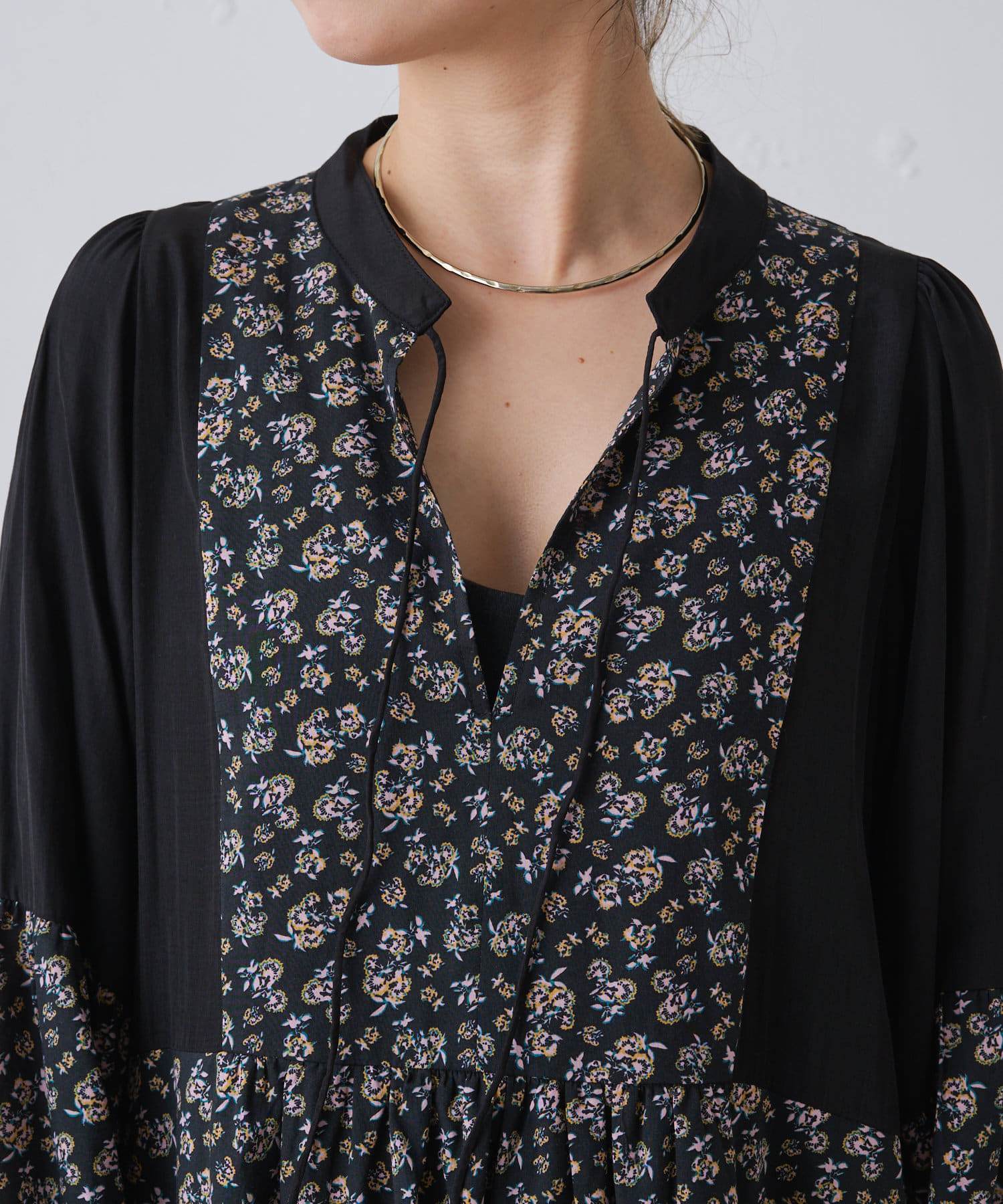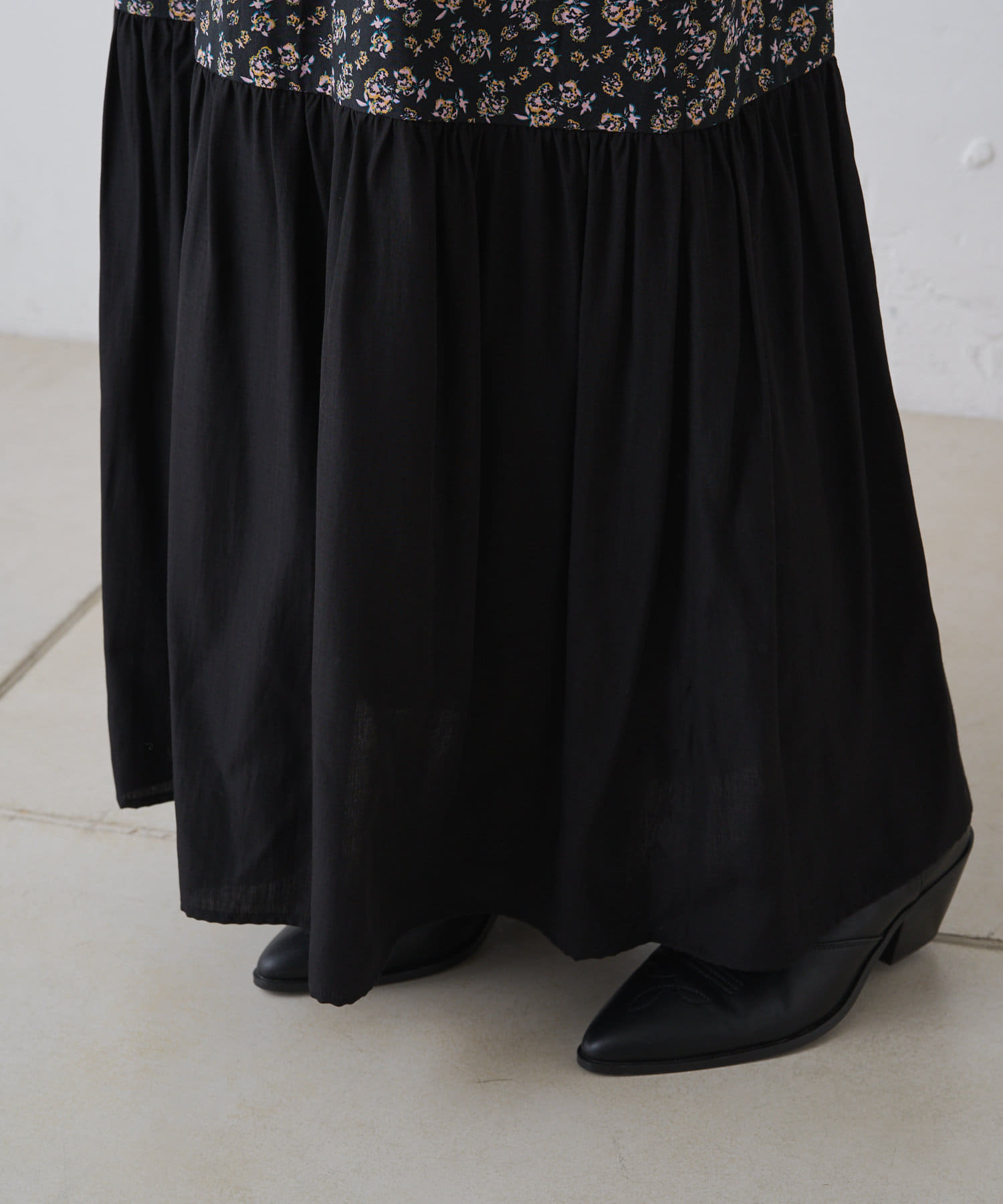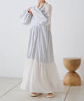 ギャザープリント切り替えワンピース