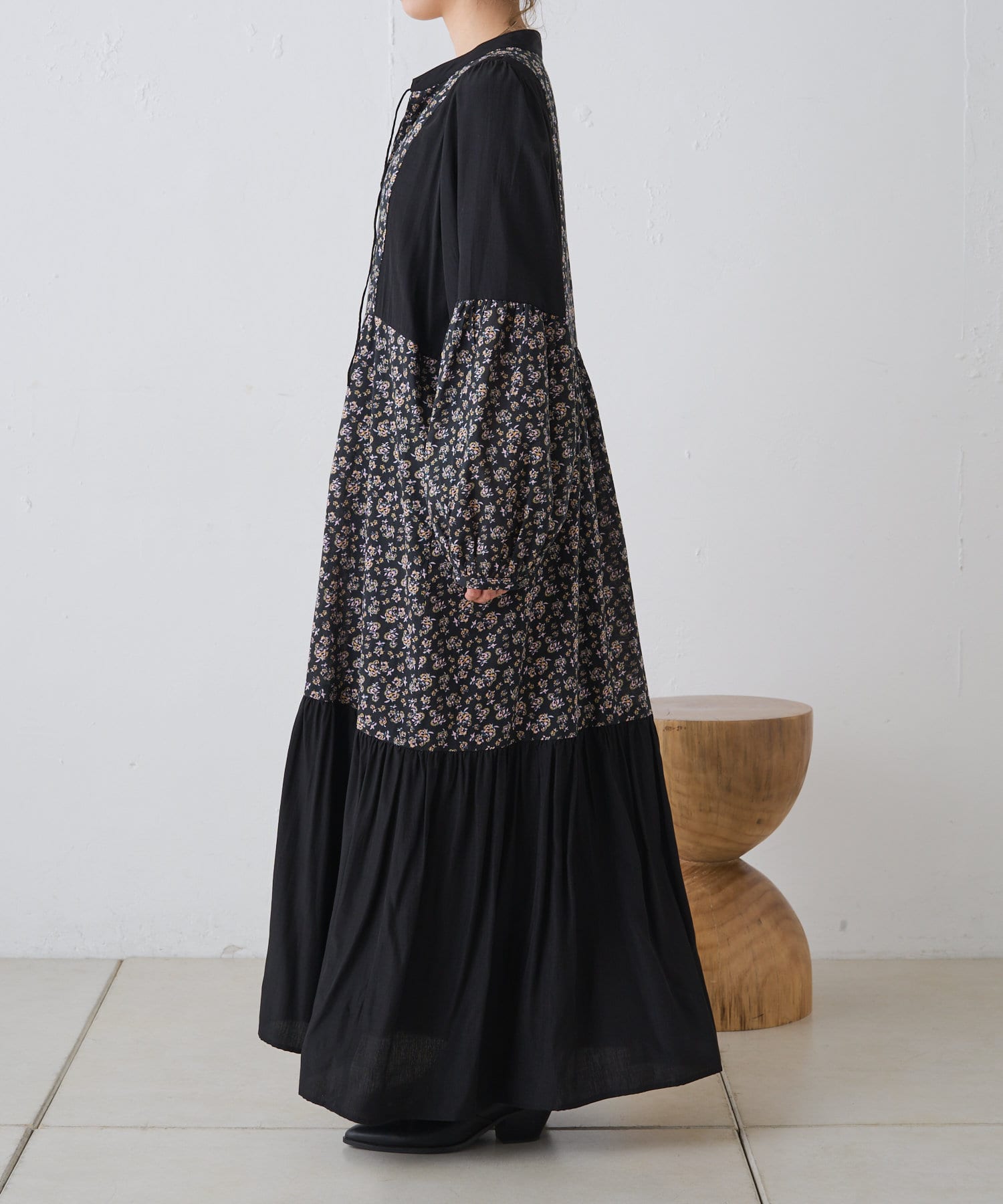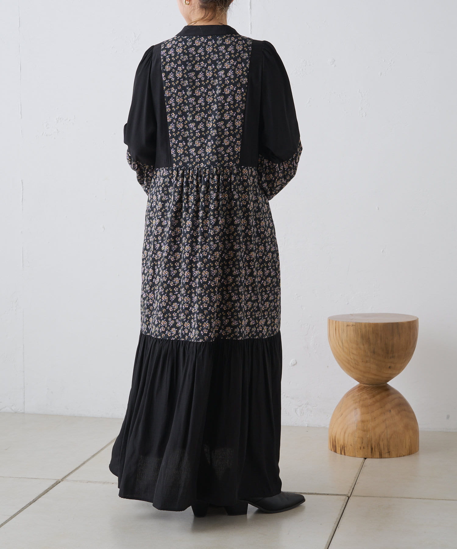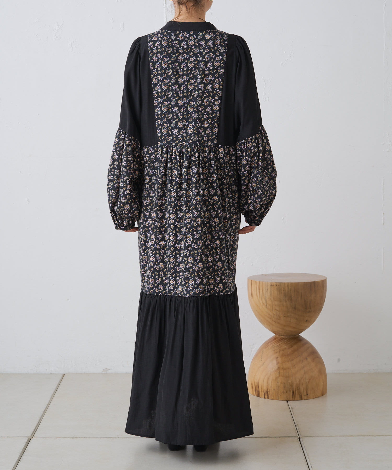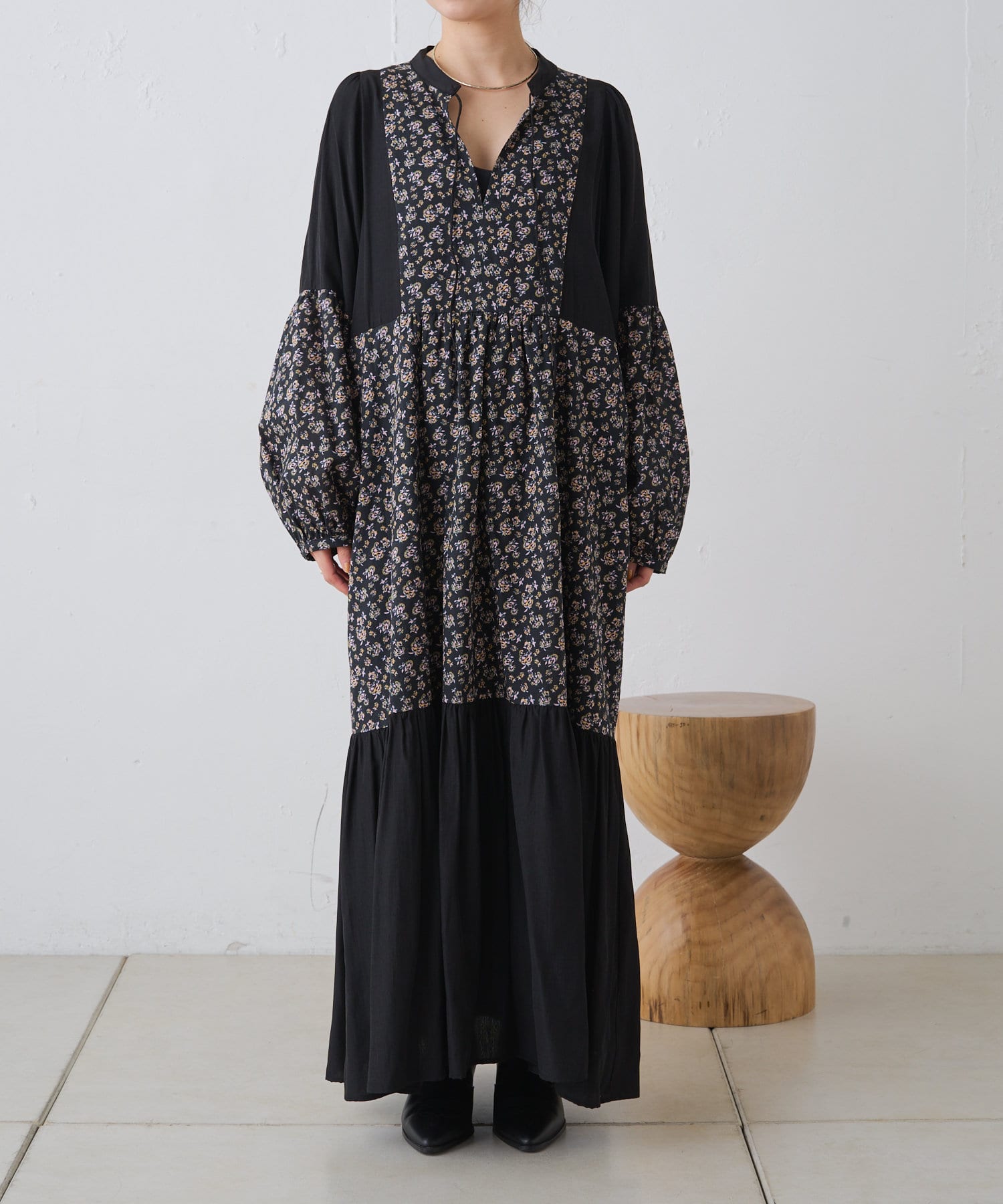 ギャザープリント切り替えワンピース