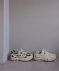 ・スポーツ用品メーカーMIZUNOのスニーカー。シンプルで合わせやすいながら、重層的な素材使いで、特別感の強いデザインとなっています。