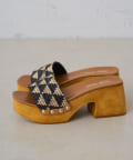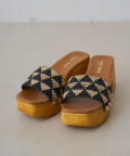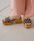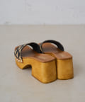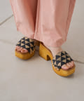 厚底なウッドの素材感で、コーディネートにアクセントをプラスしてくれる一足