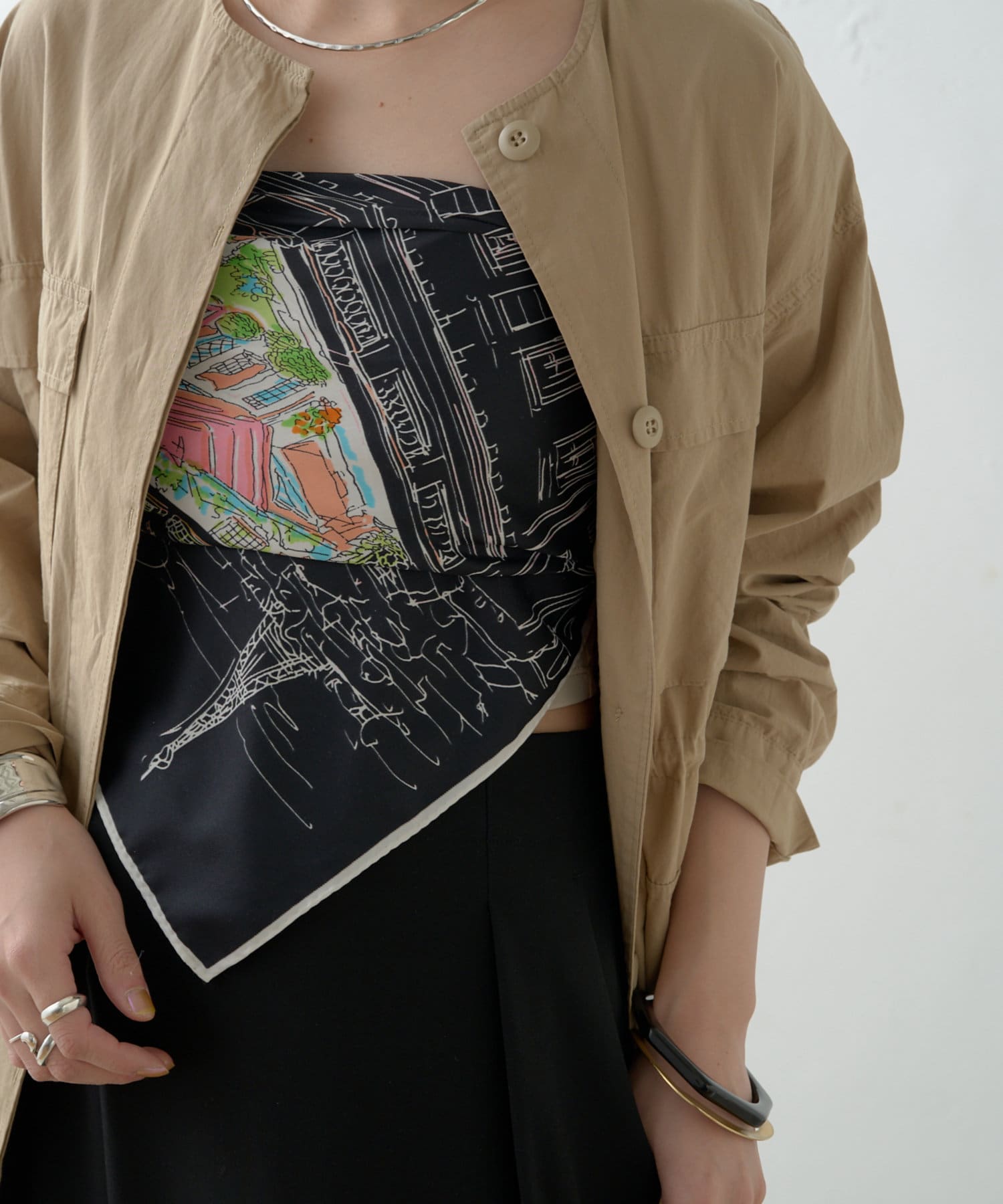 女性らしさもありつつ遊び心もある配色がポイントのスカーフ