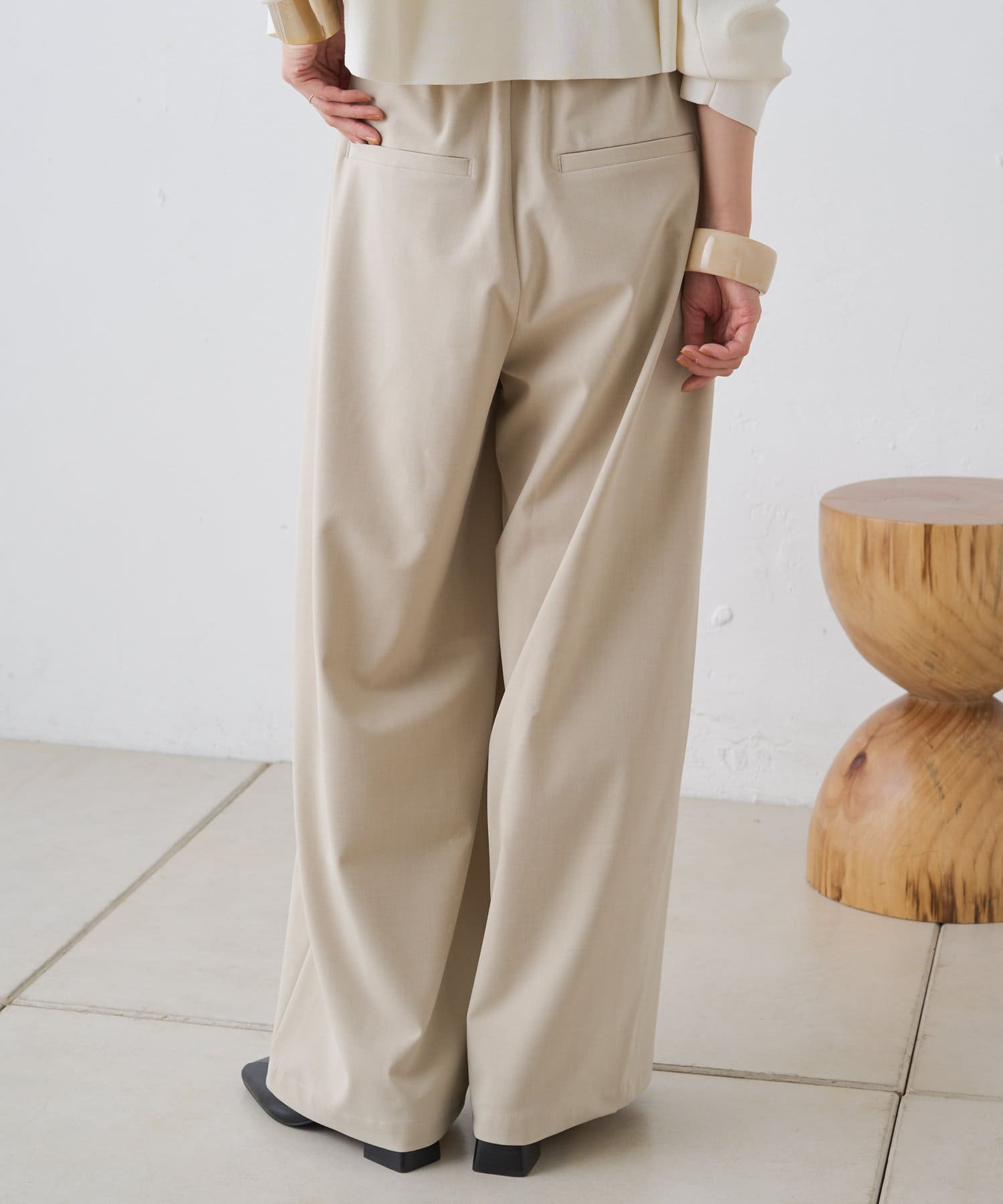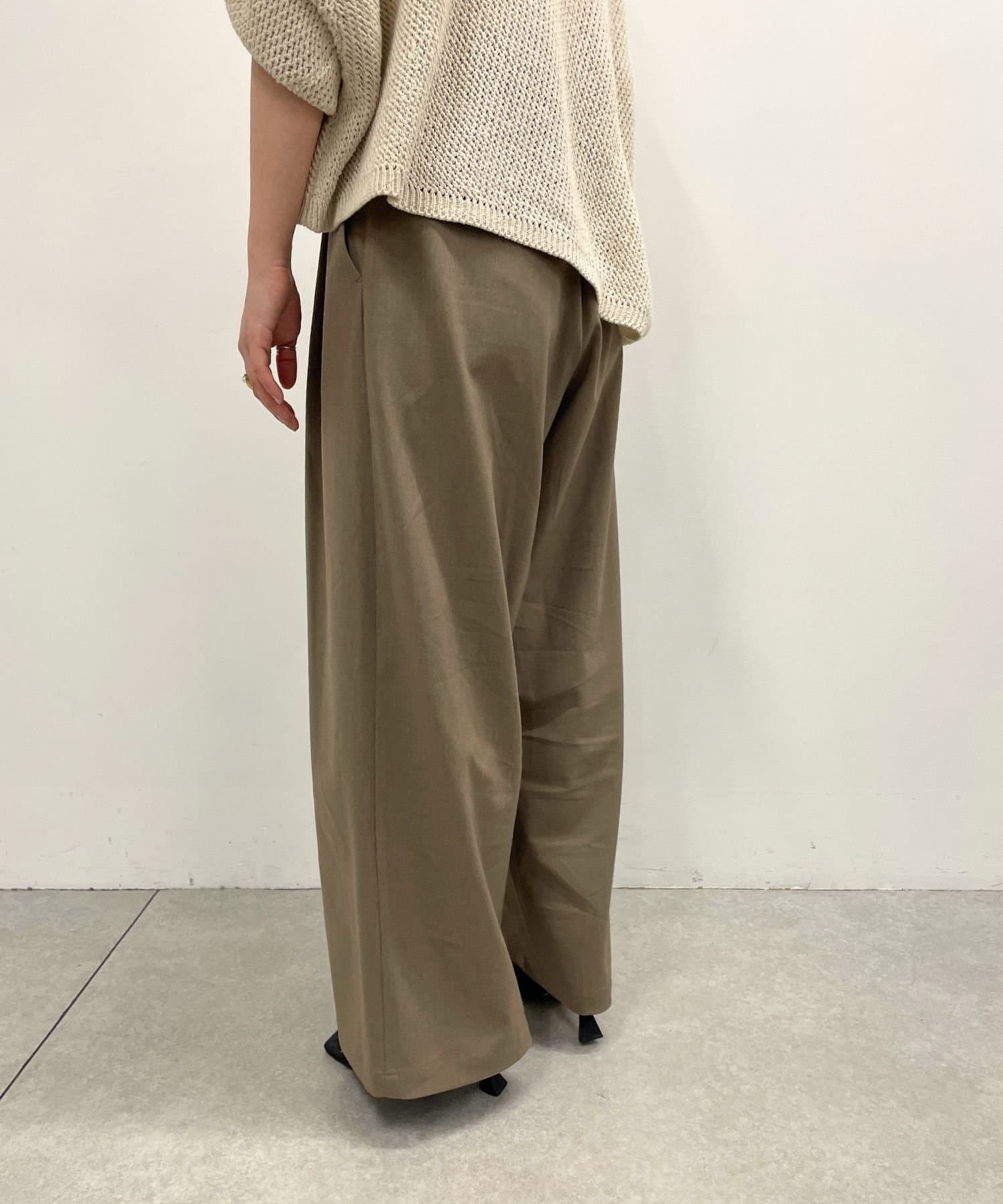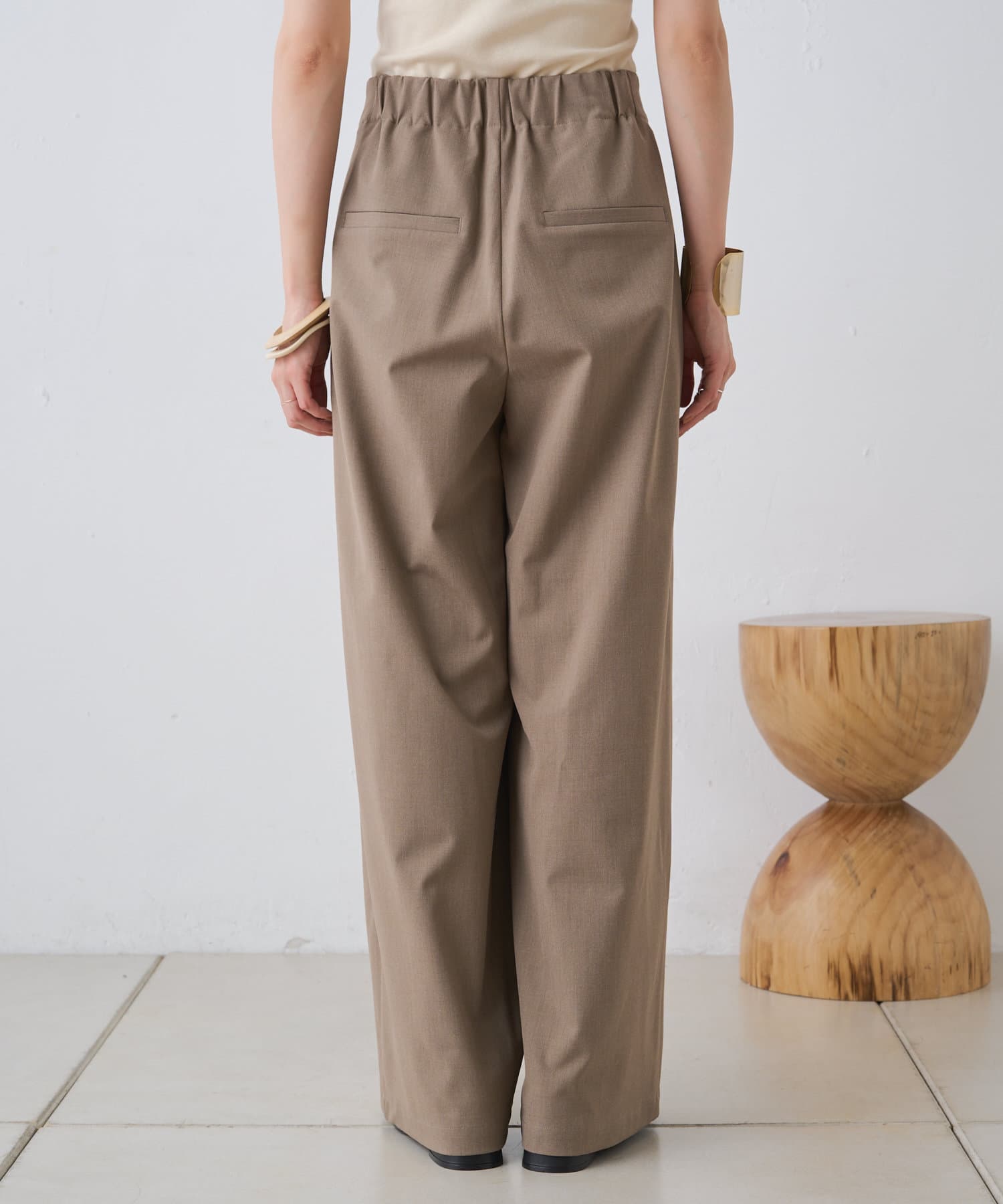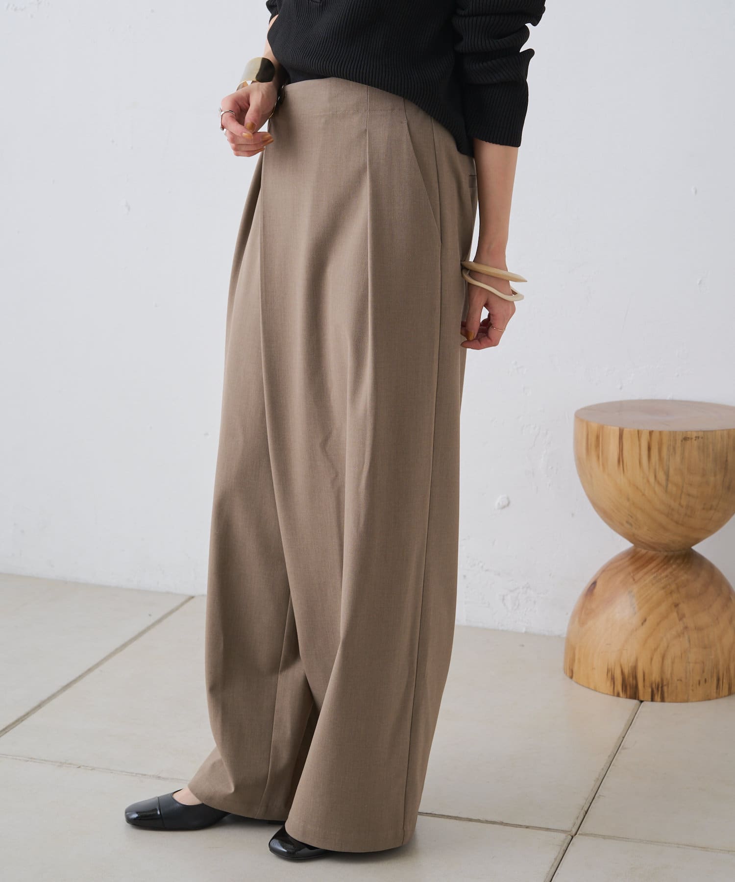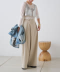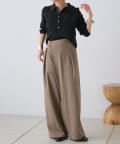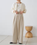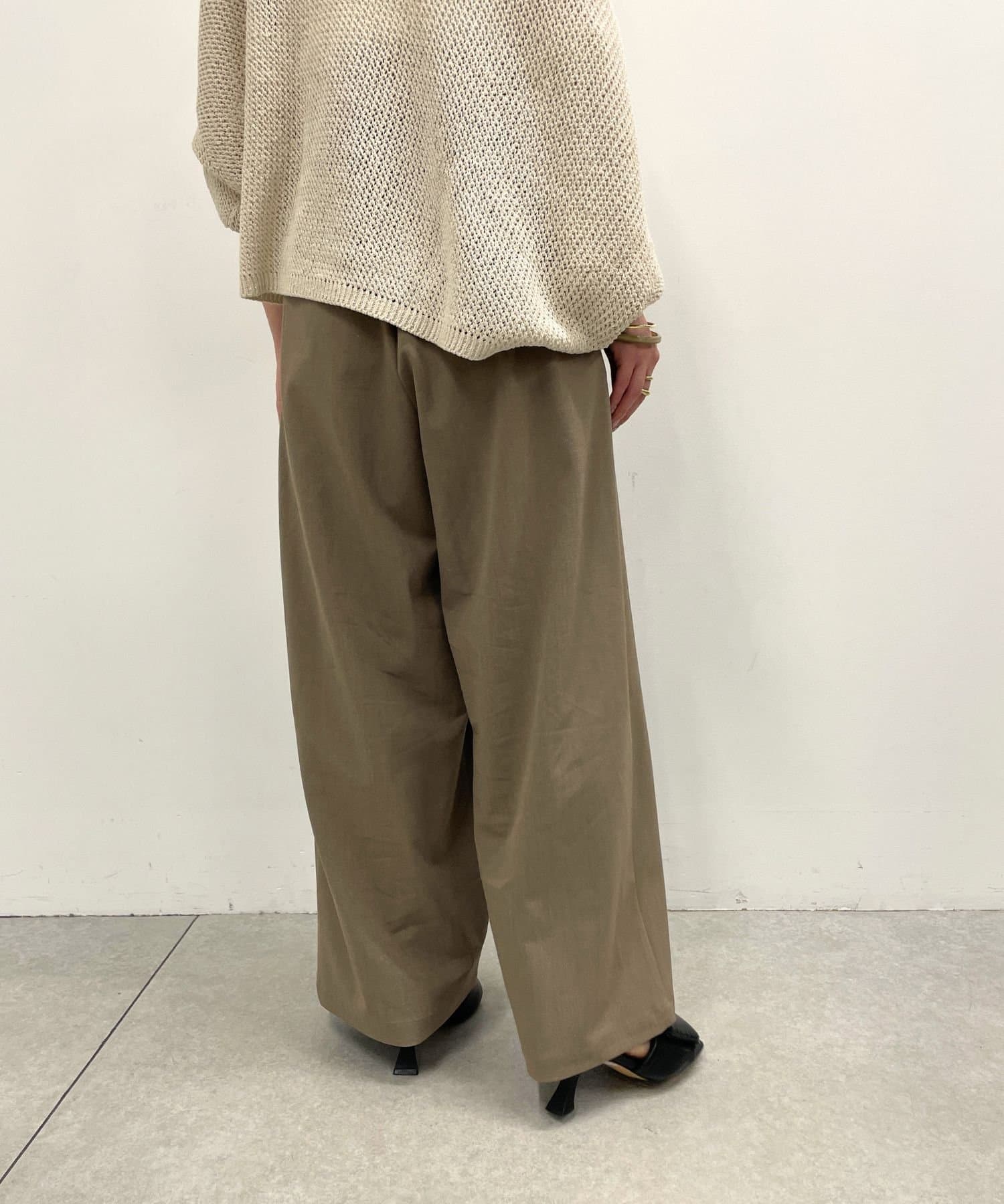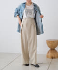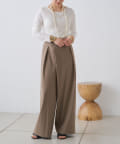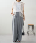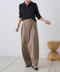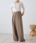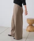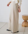 すとんと落ちるシルエットとタックの入ったウエストデザインですっきり一枚で決まるパンツ