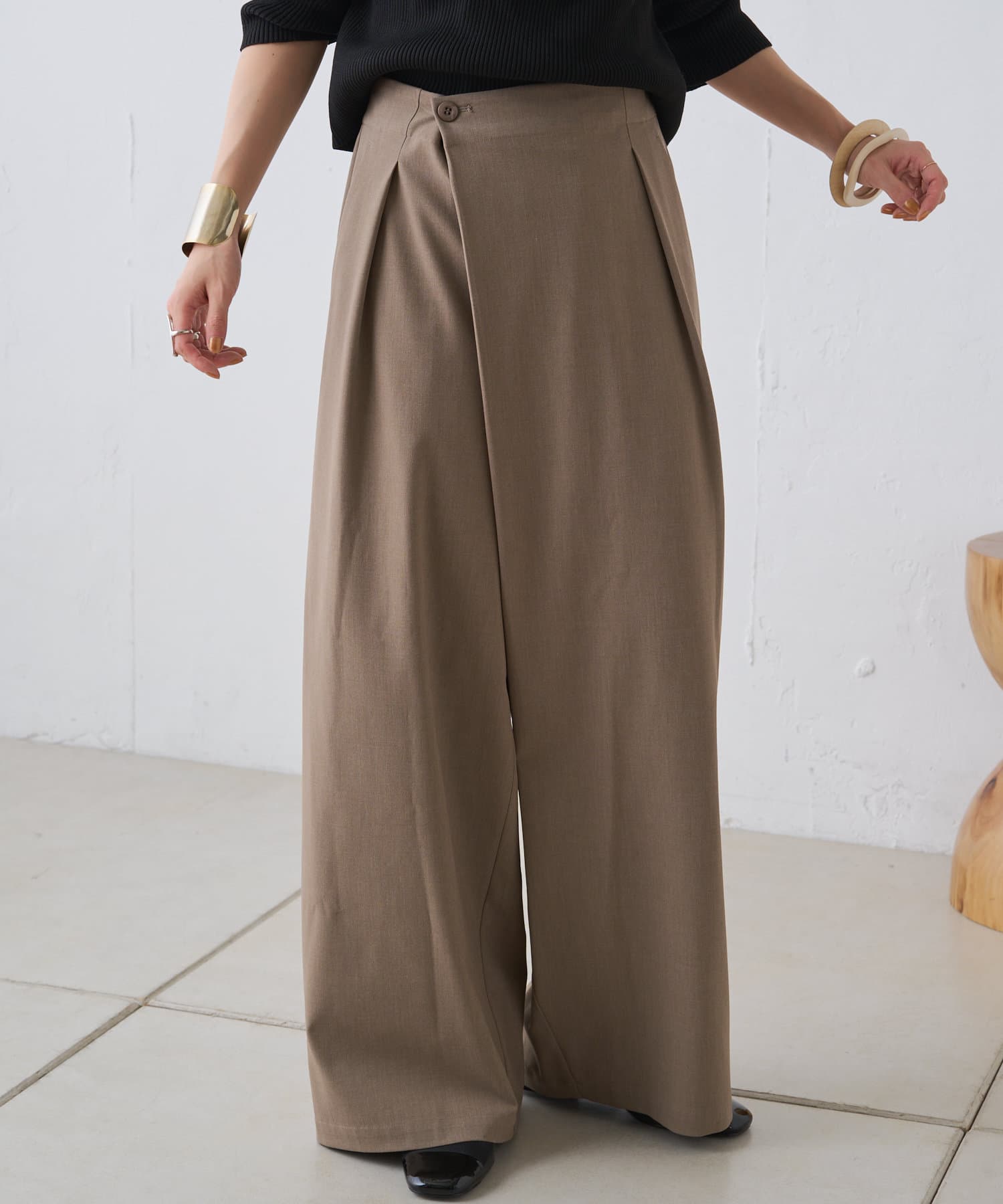 【Omekashi】【-3kg見え!】ワイドラップパンツ