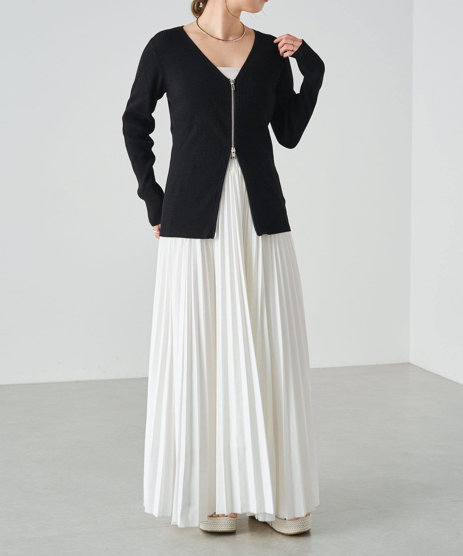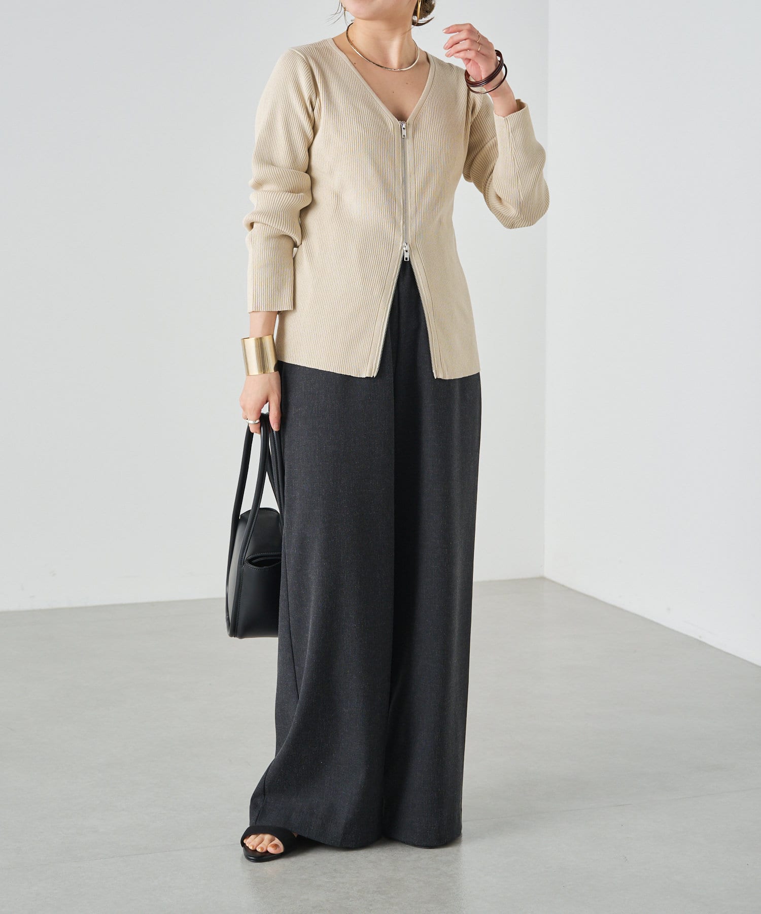 ・ジップの開閉で抜け感も出せるので、ボトムのバランスにより様々な着こなしが可能です