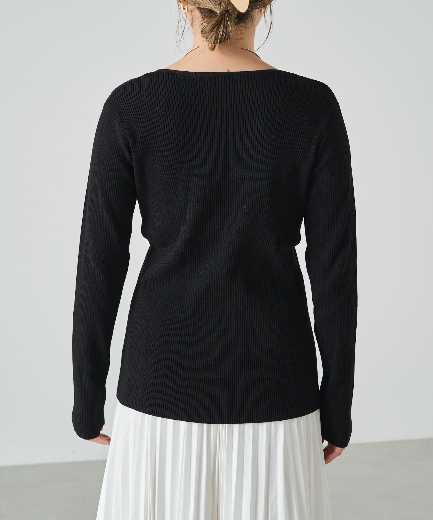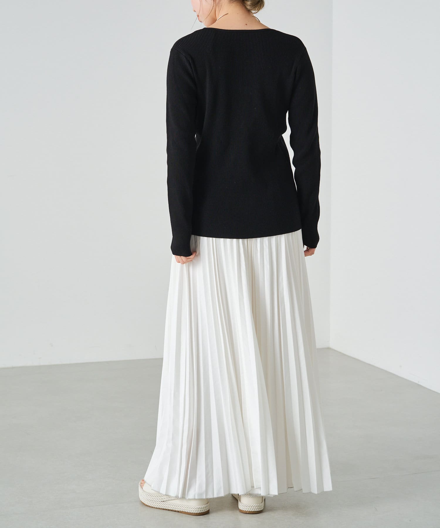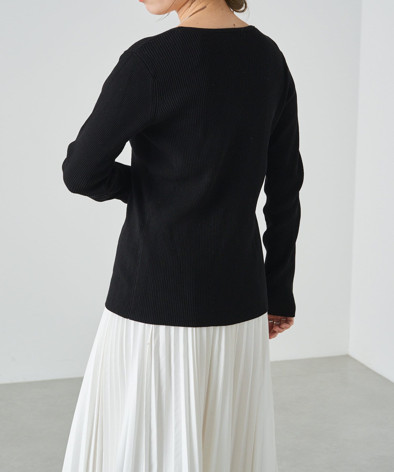 ・程よい肉厚さのある生地感で、身体のラインを拾いにくくスタイルアップが叶う一枚