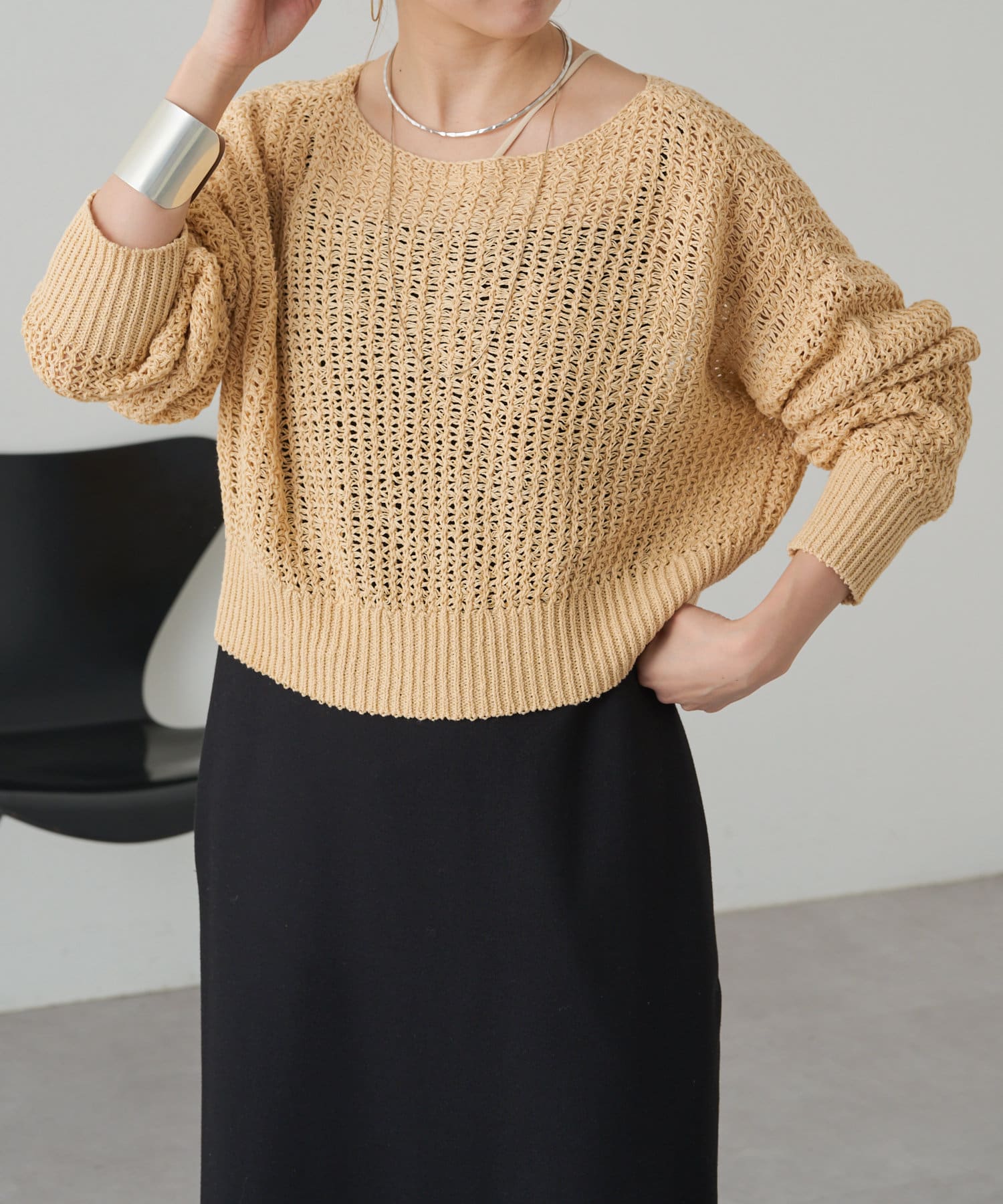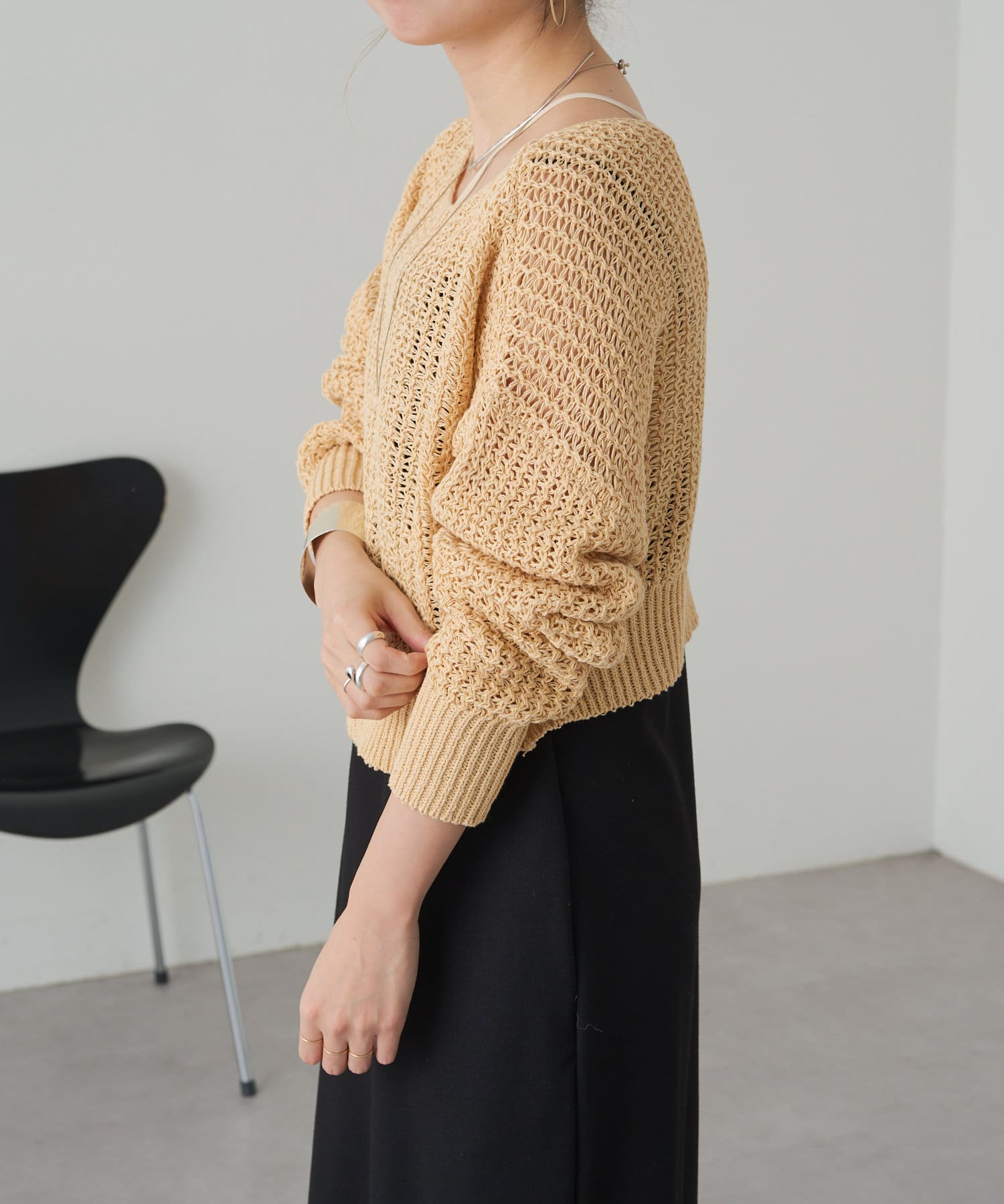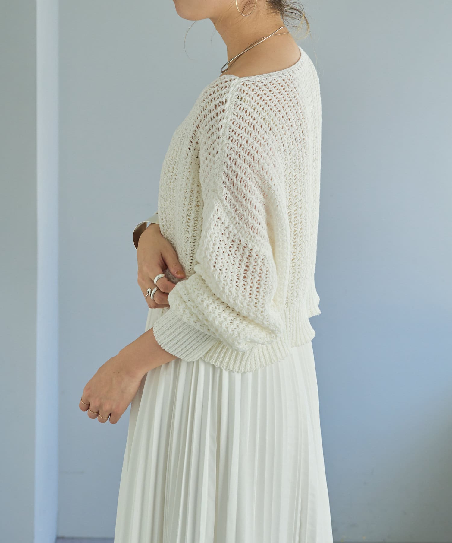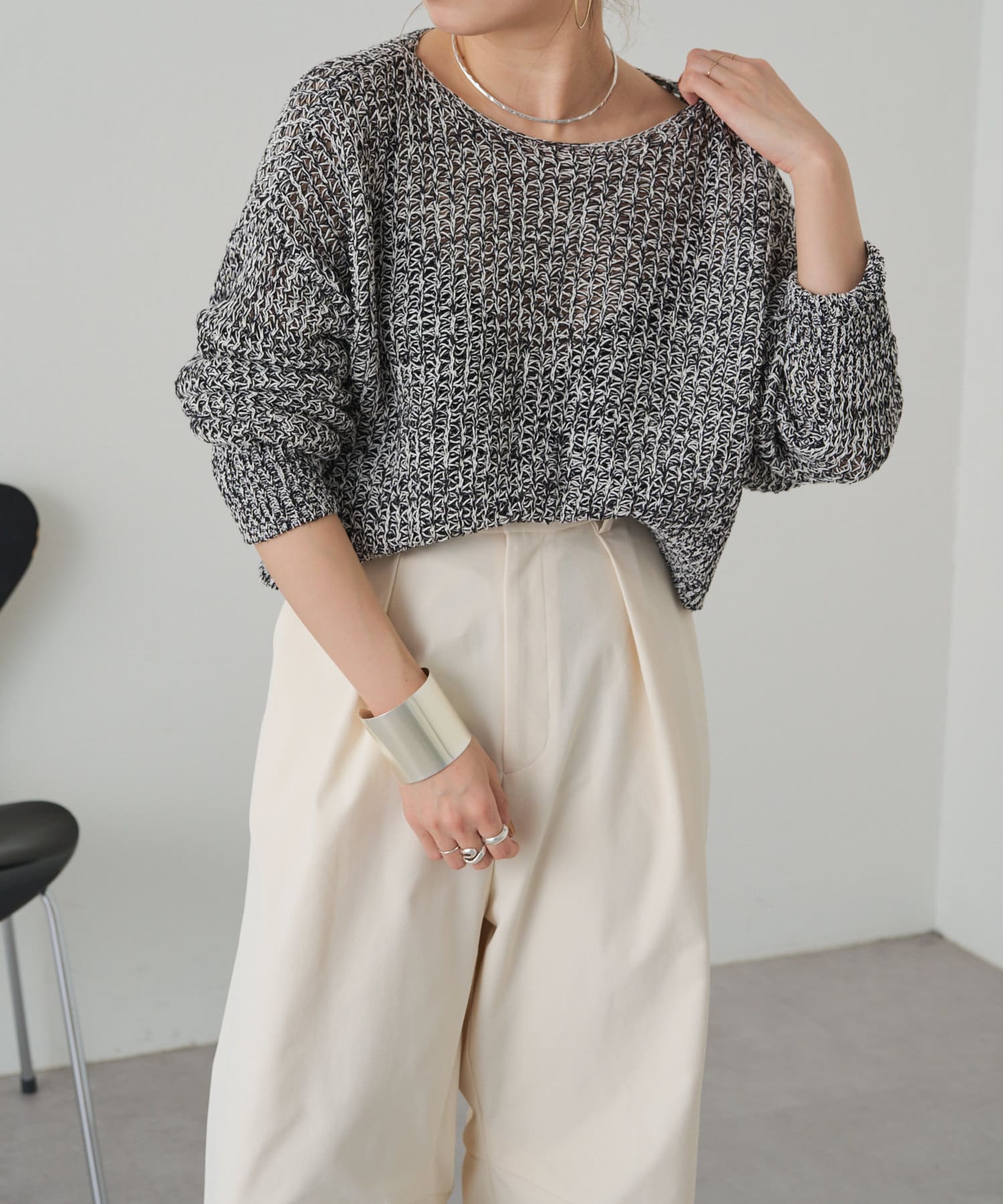 ・透け感のあるローゲージな編地なので、合わせるインナー次第で幅広いシーズンのご着用が可能です