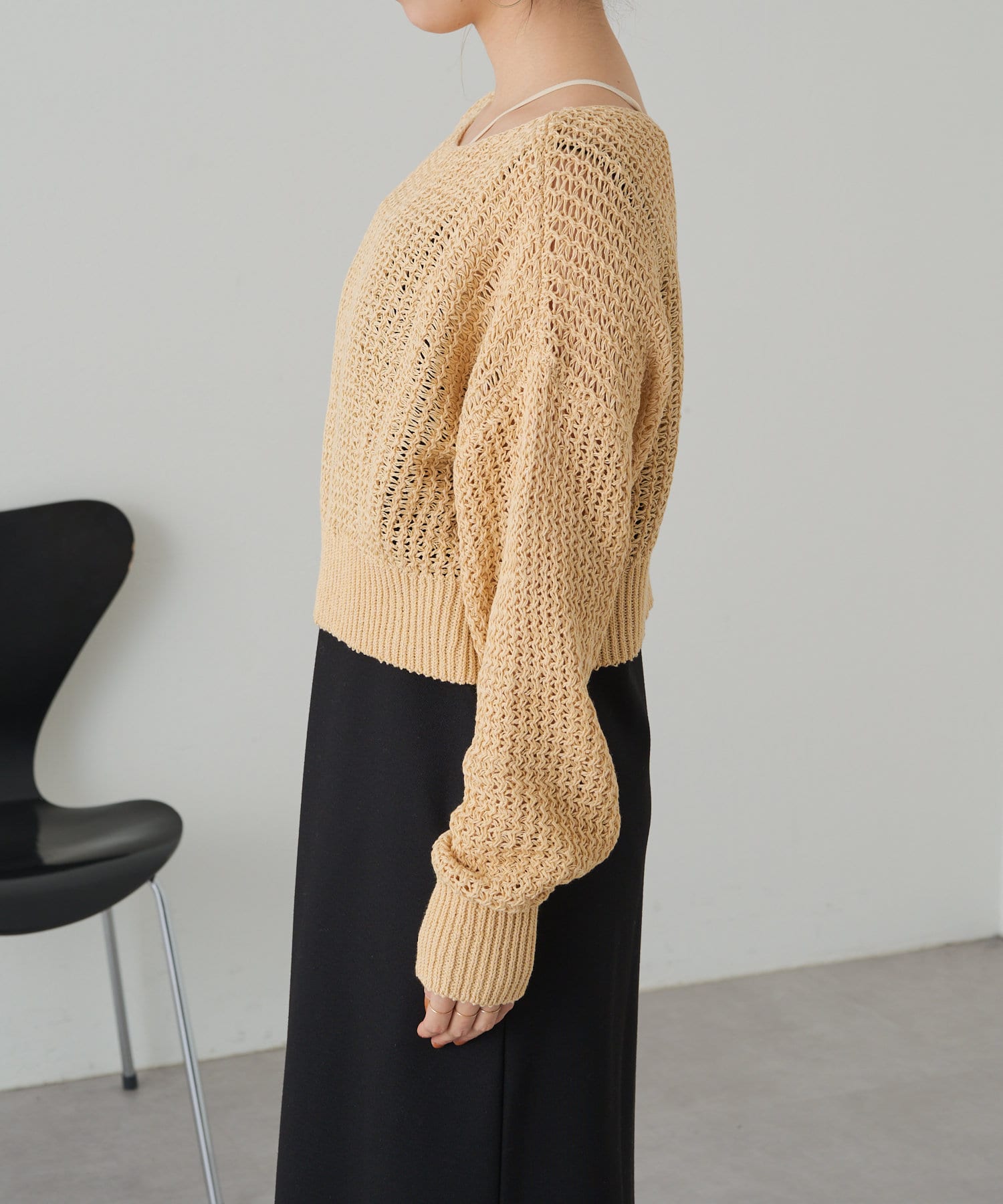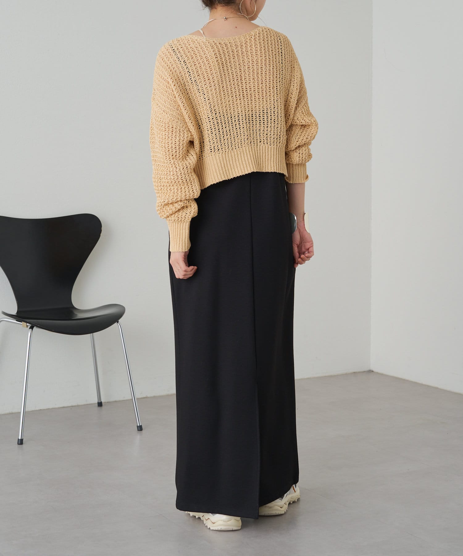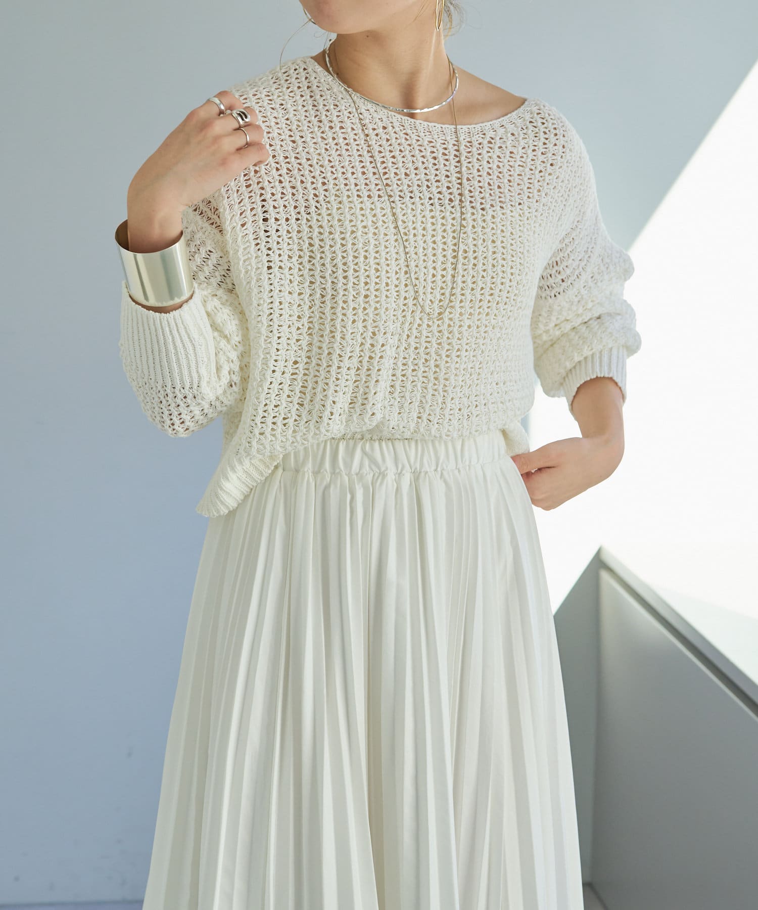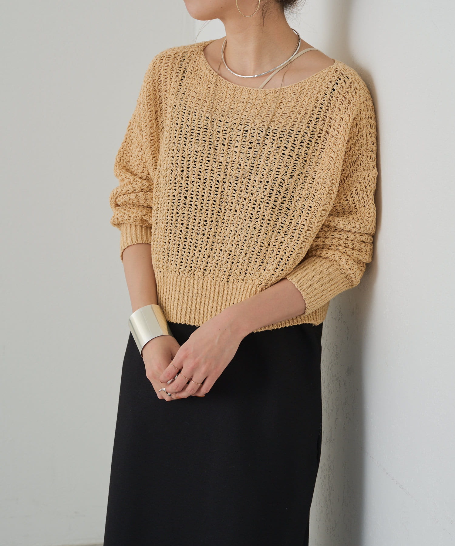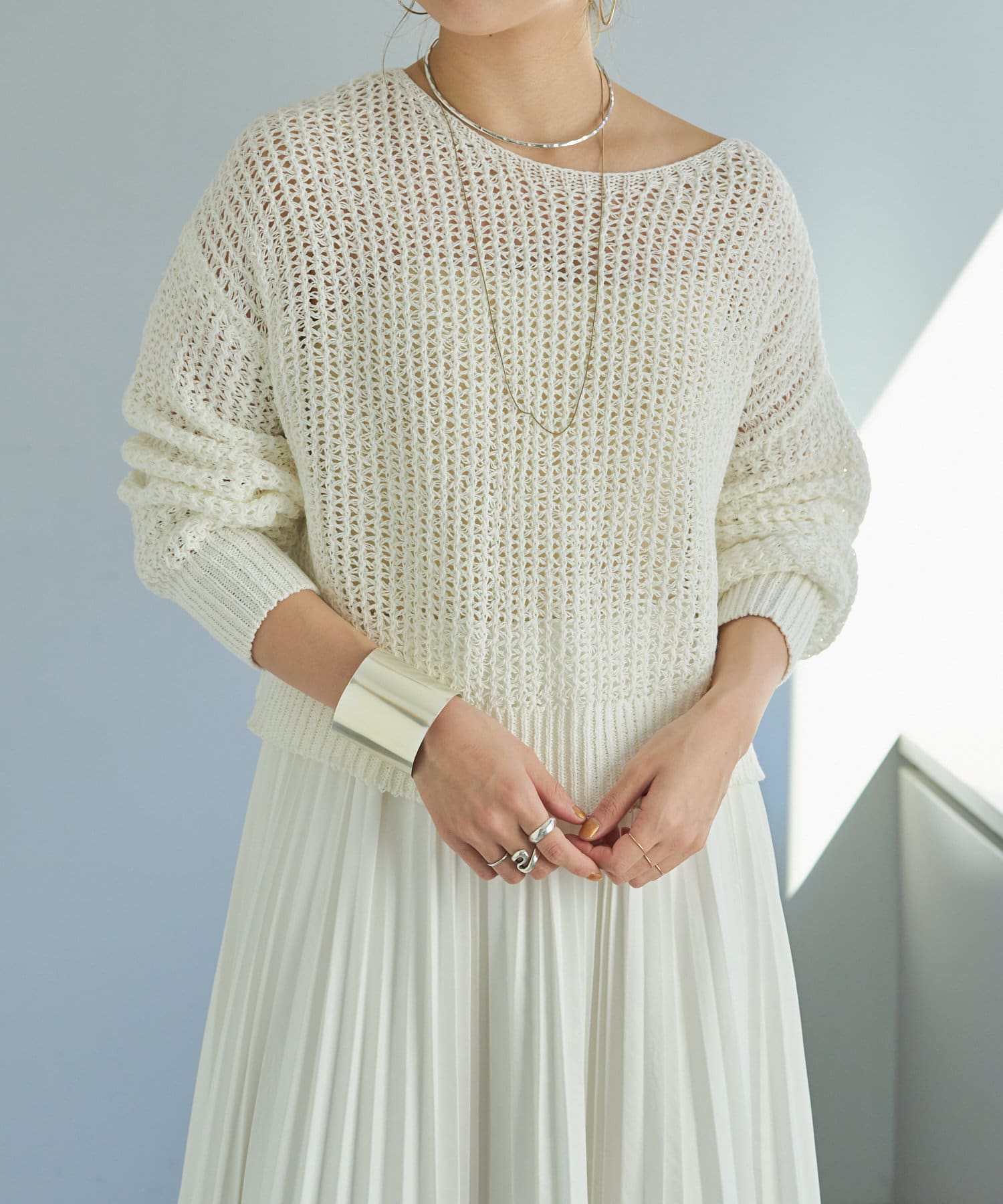 ・透け感のあるローゲージな編地なので、合わせるインナー次第で幅広いシーズンのご着用が可能です