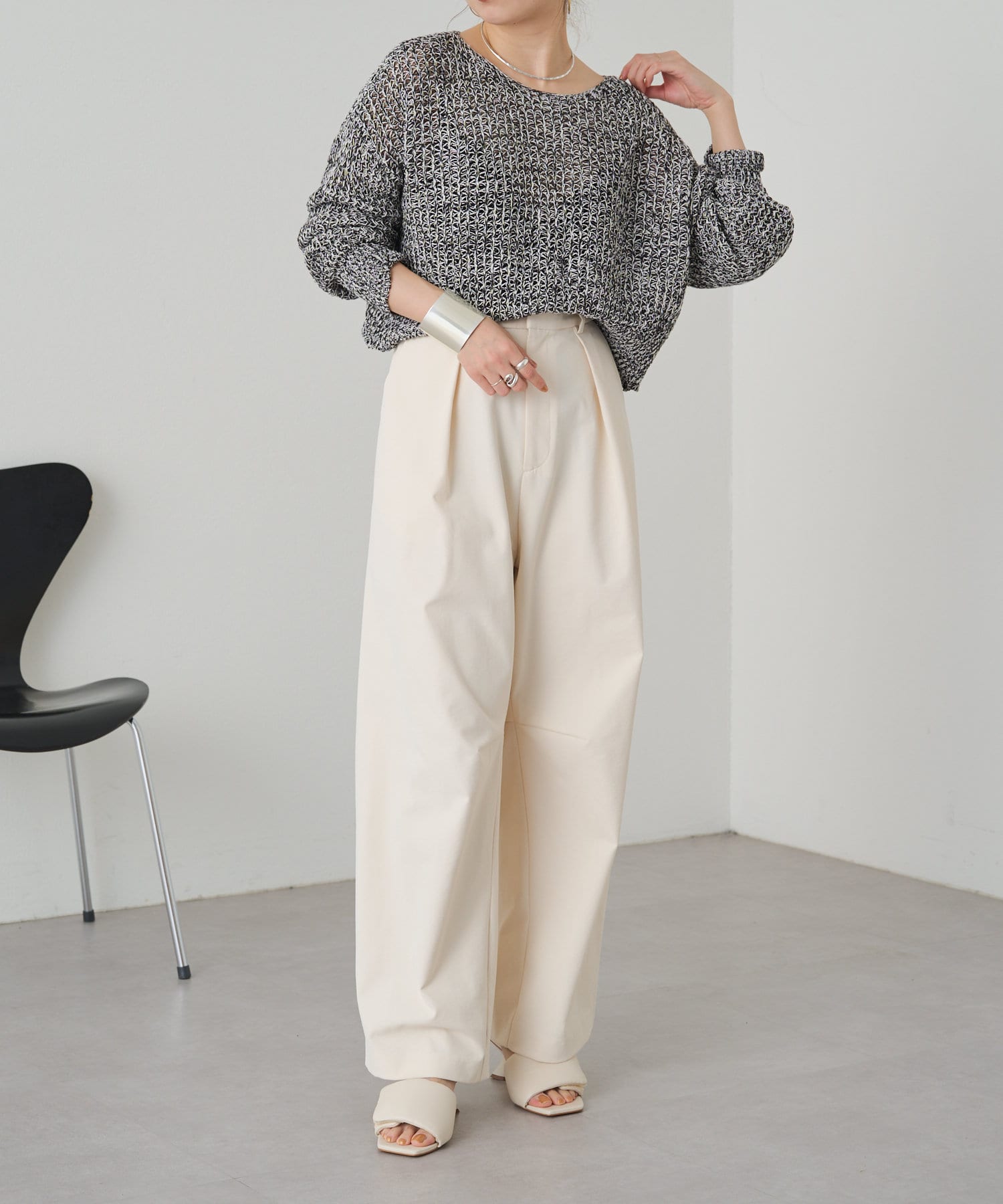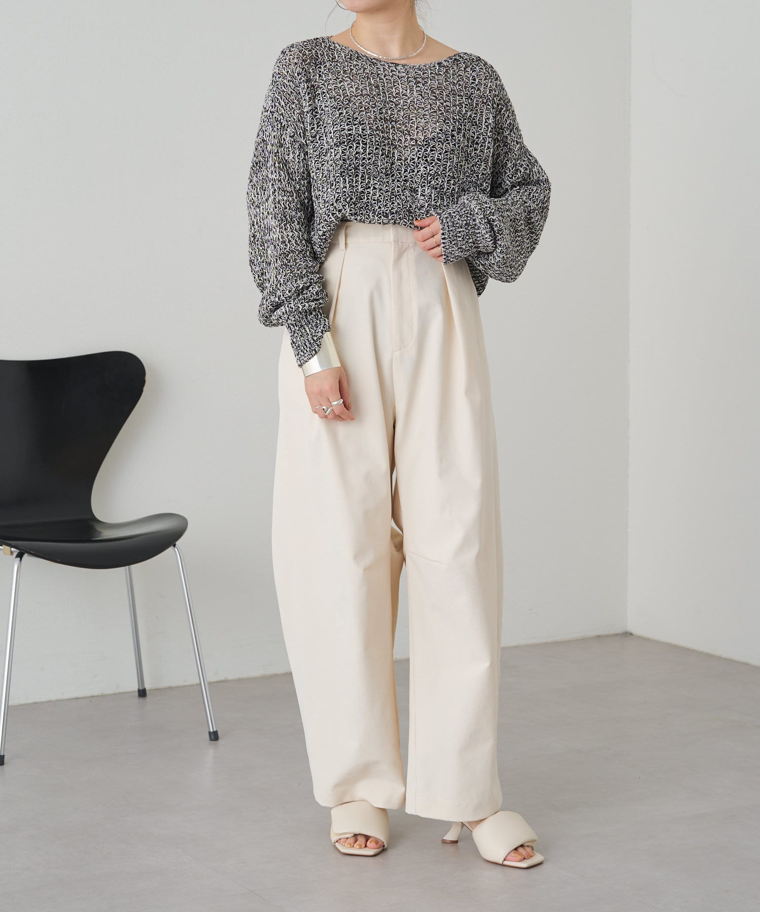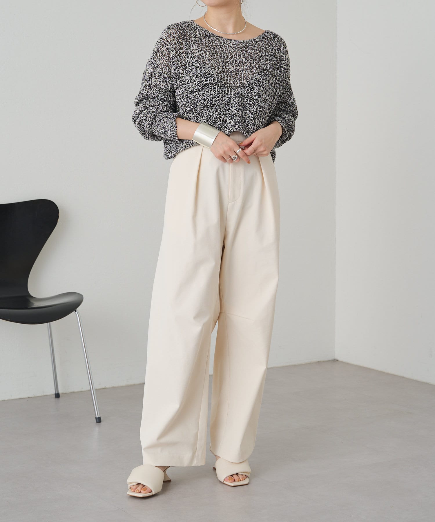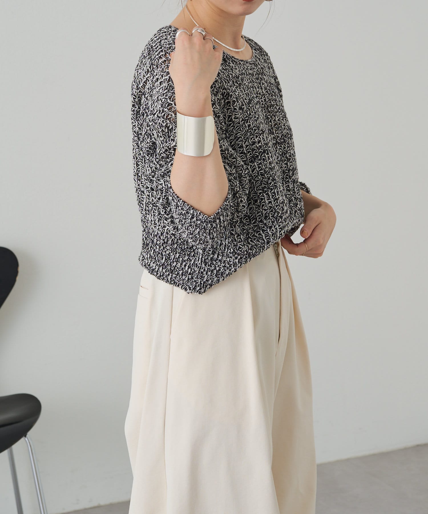 ・透け感のあるローゲージな編地なので、合わせるインナー次第で幅広いシーズンのご着用が可能です