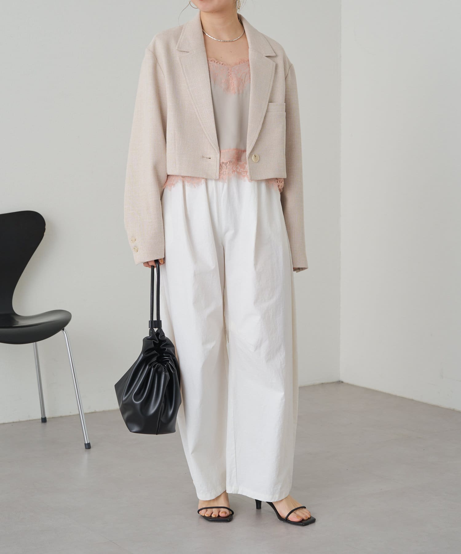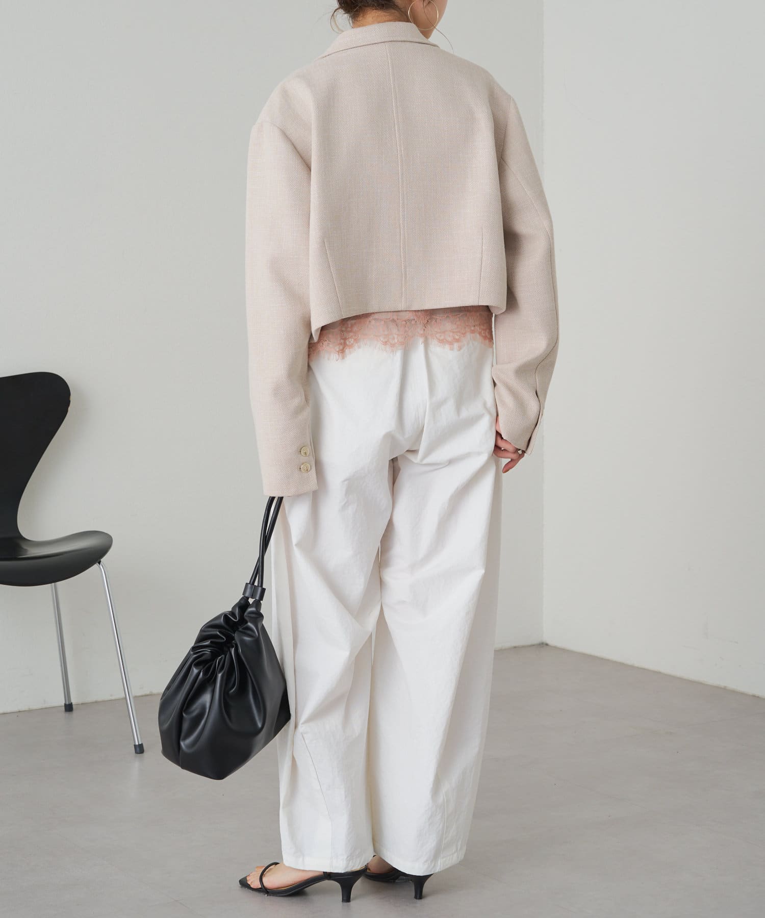 ・めずらしいショートシルエットで、目線が上がりスタイルアップが叶う1枚