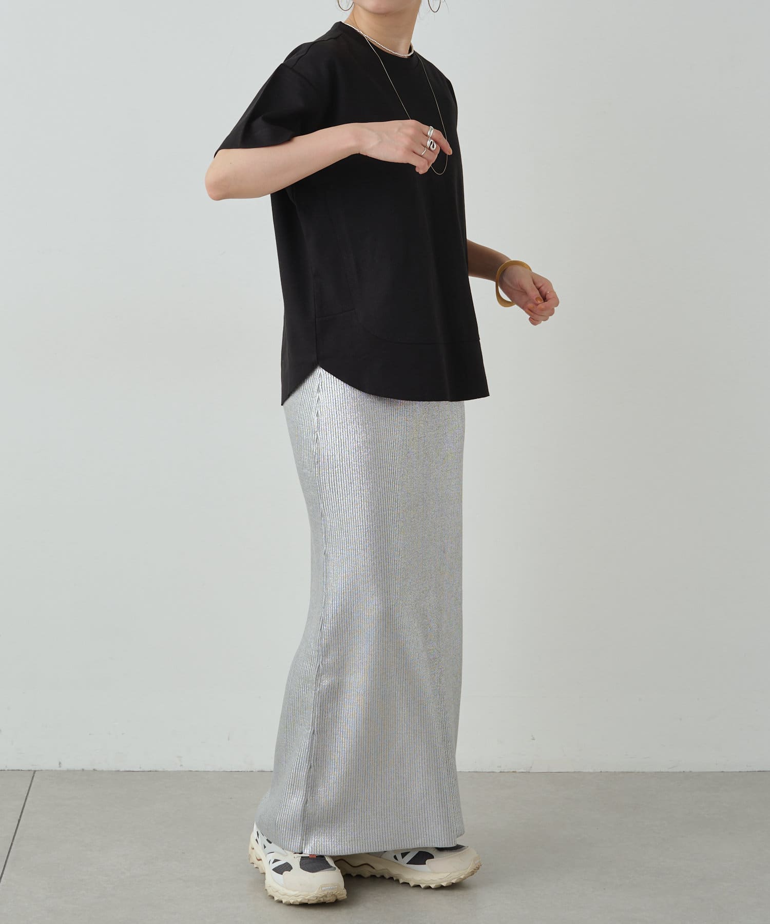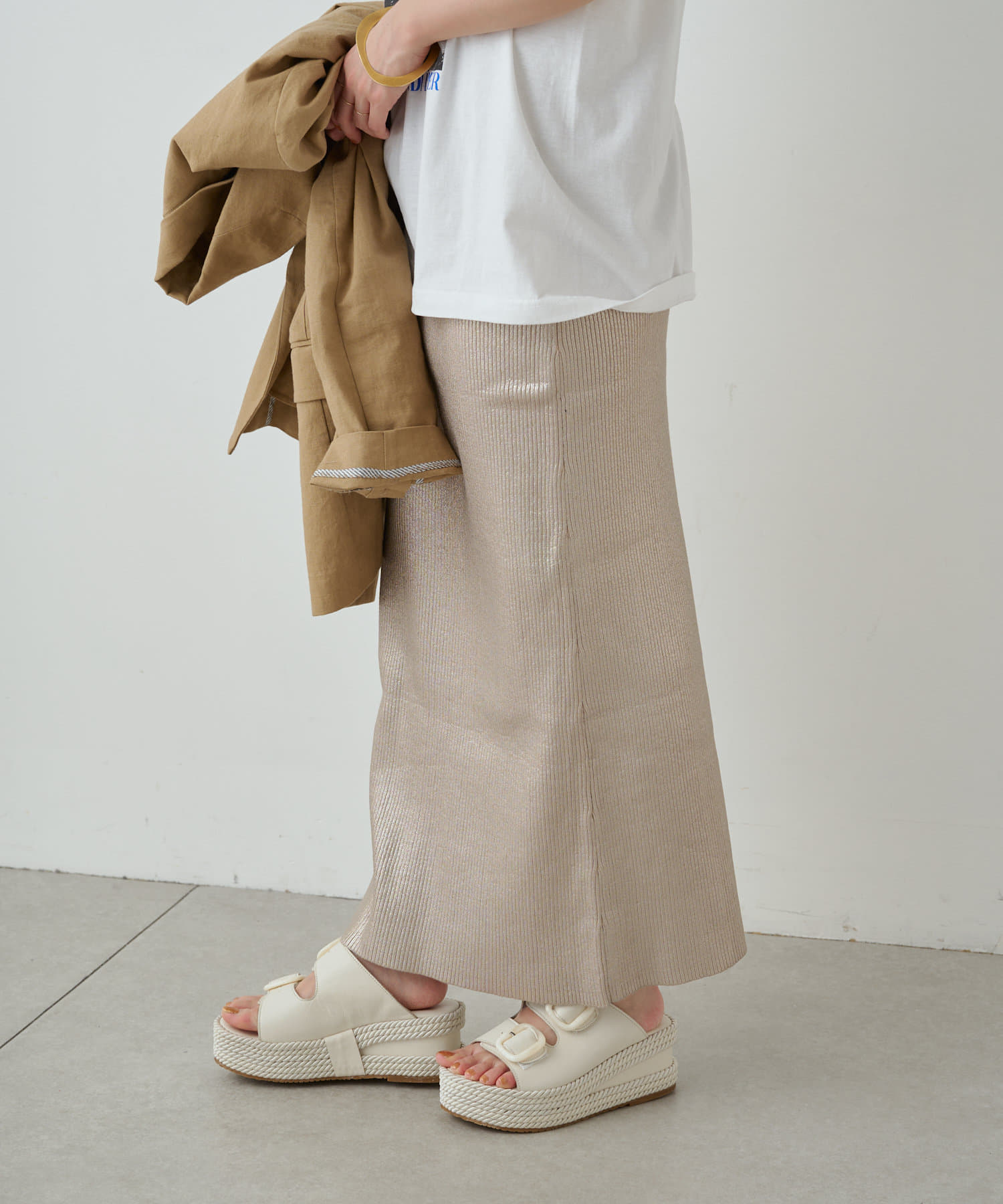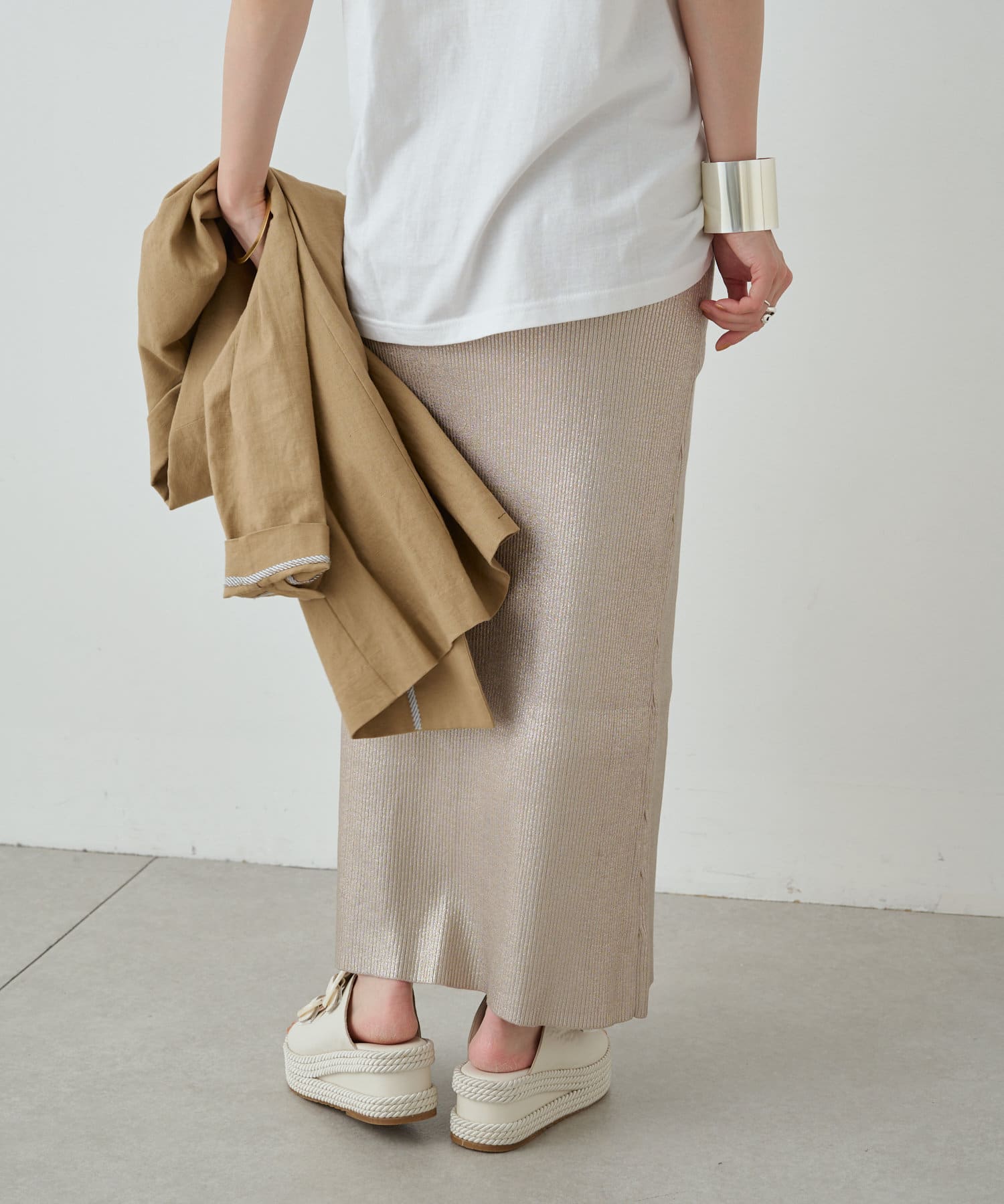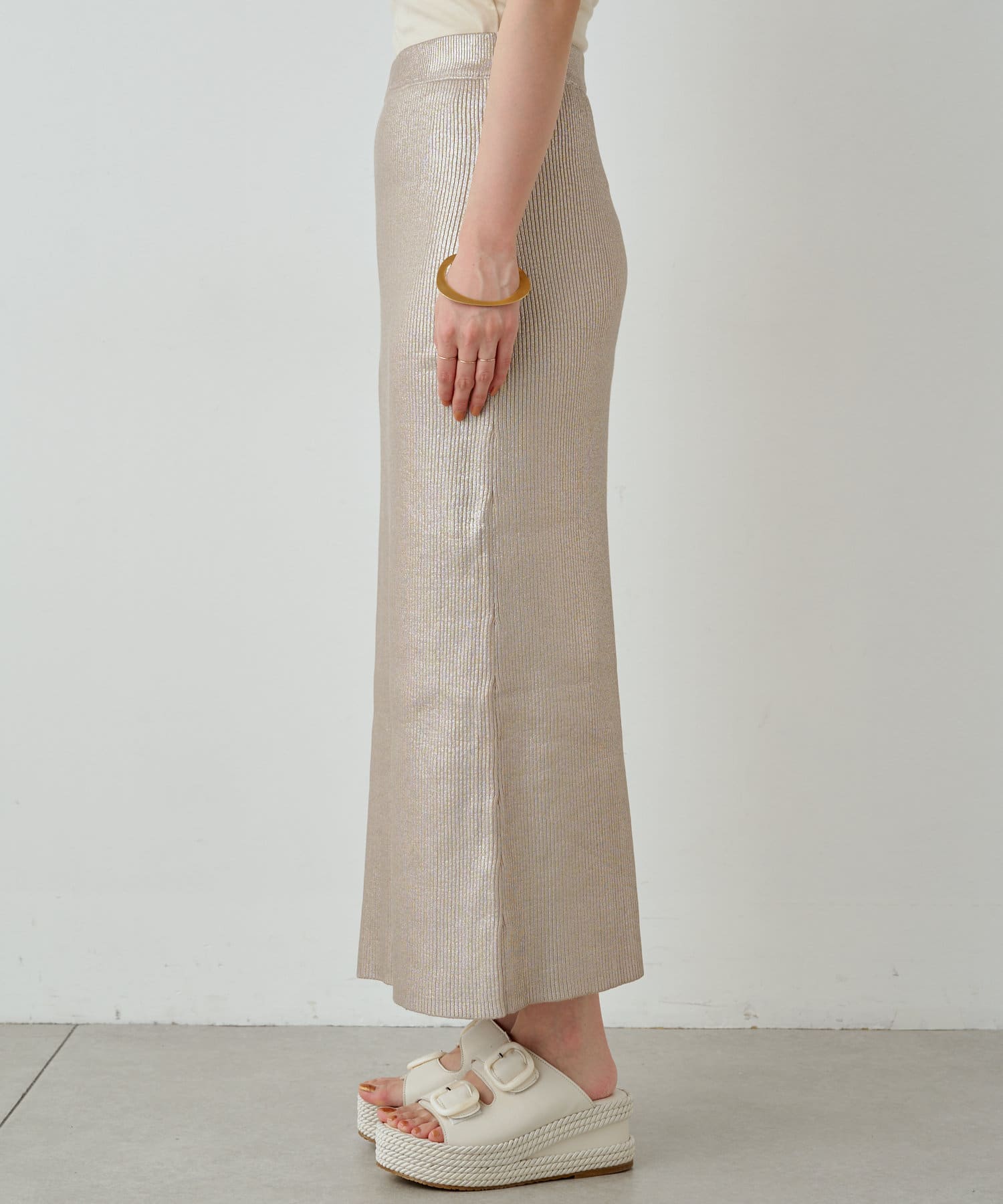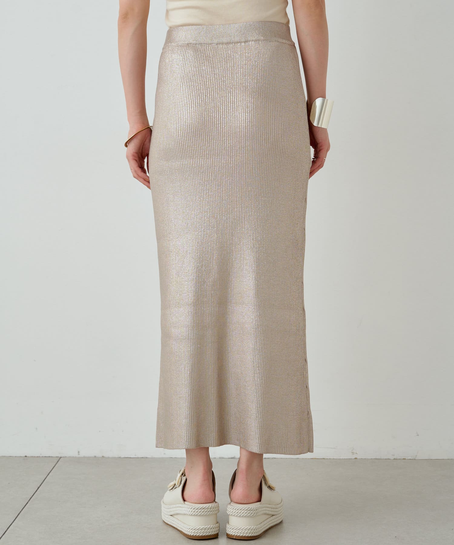 ・1枚で様になる箔の光沢感が、スタイリングのポイントになるスカート