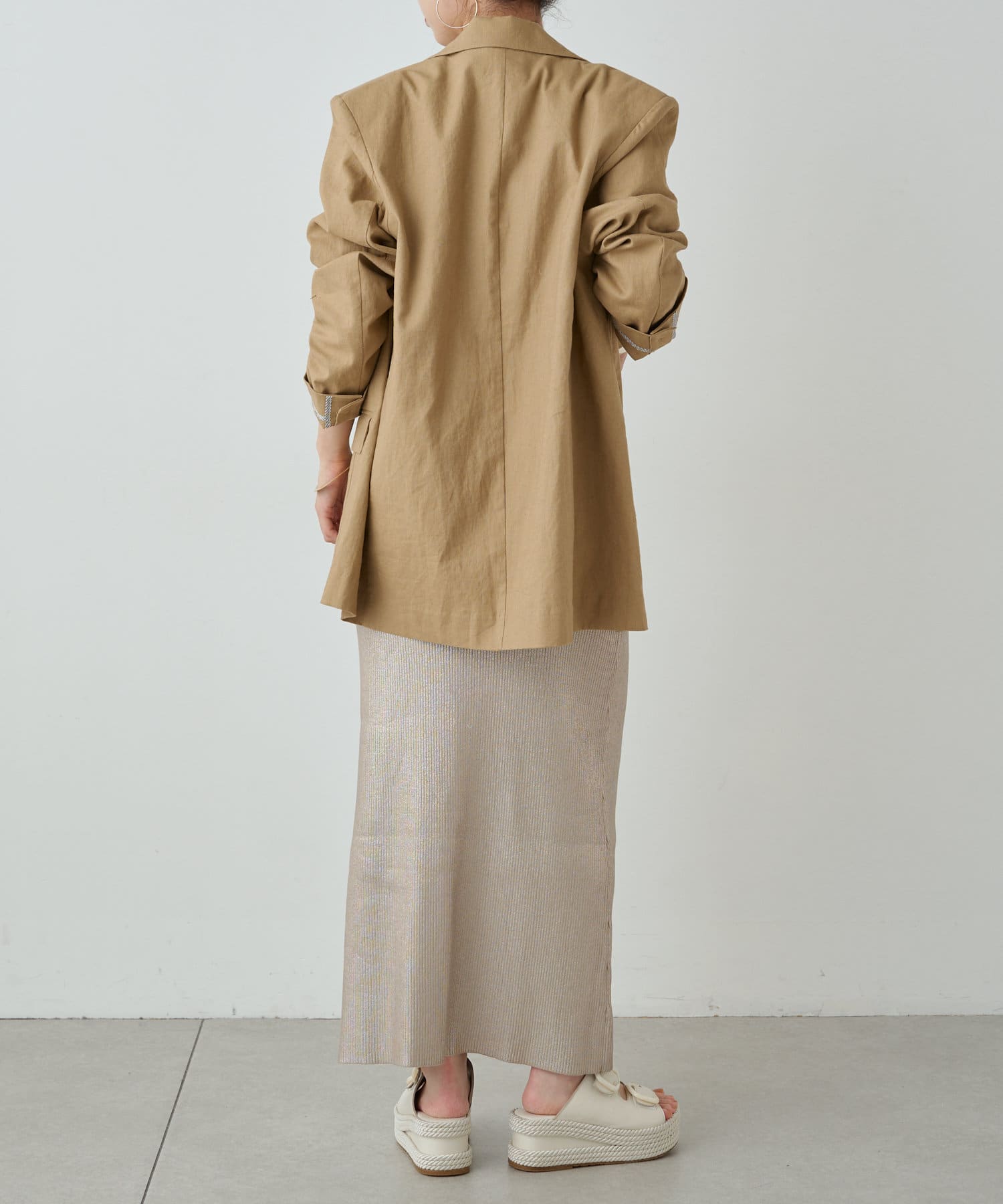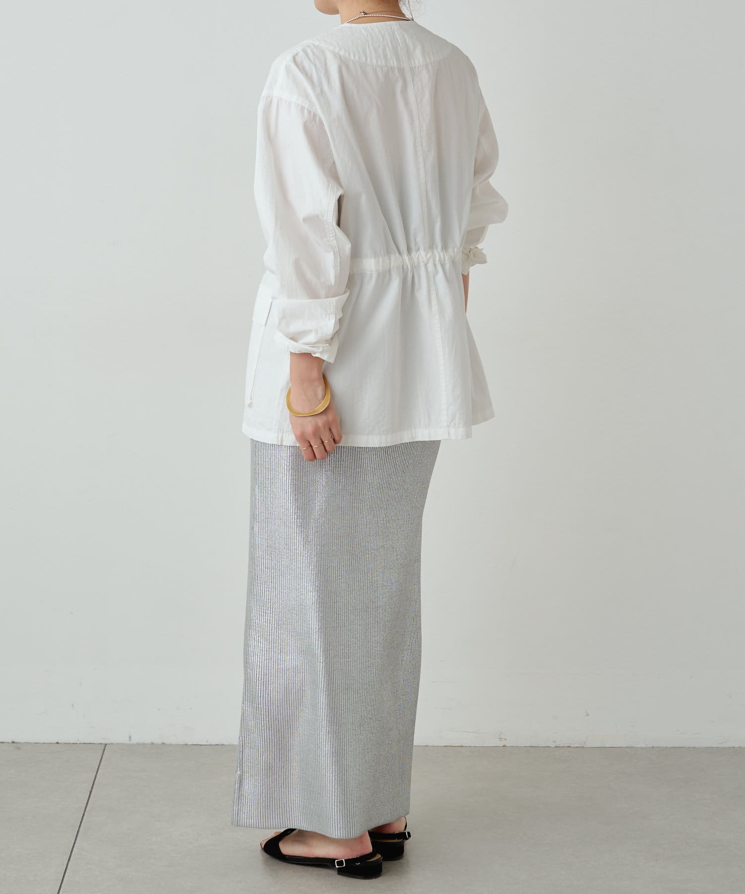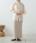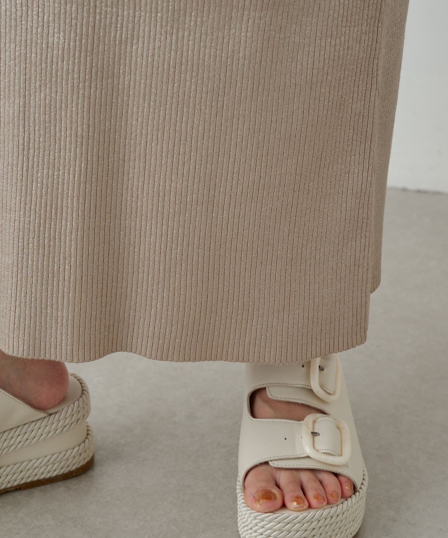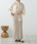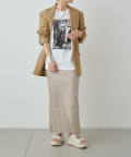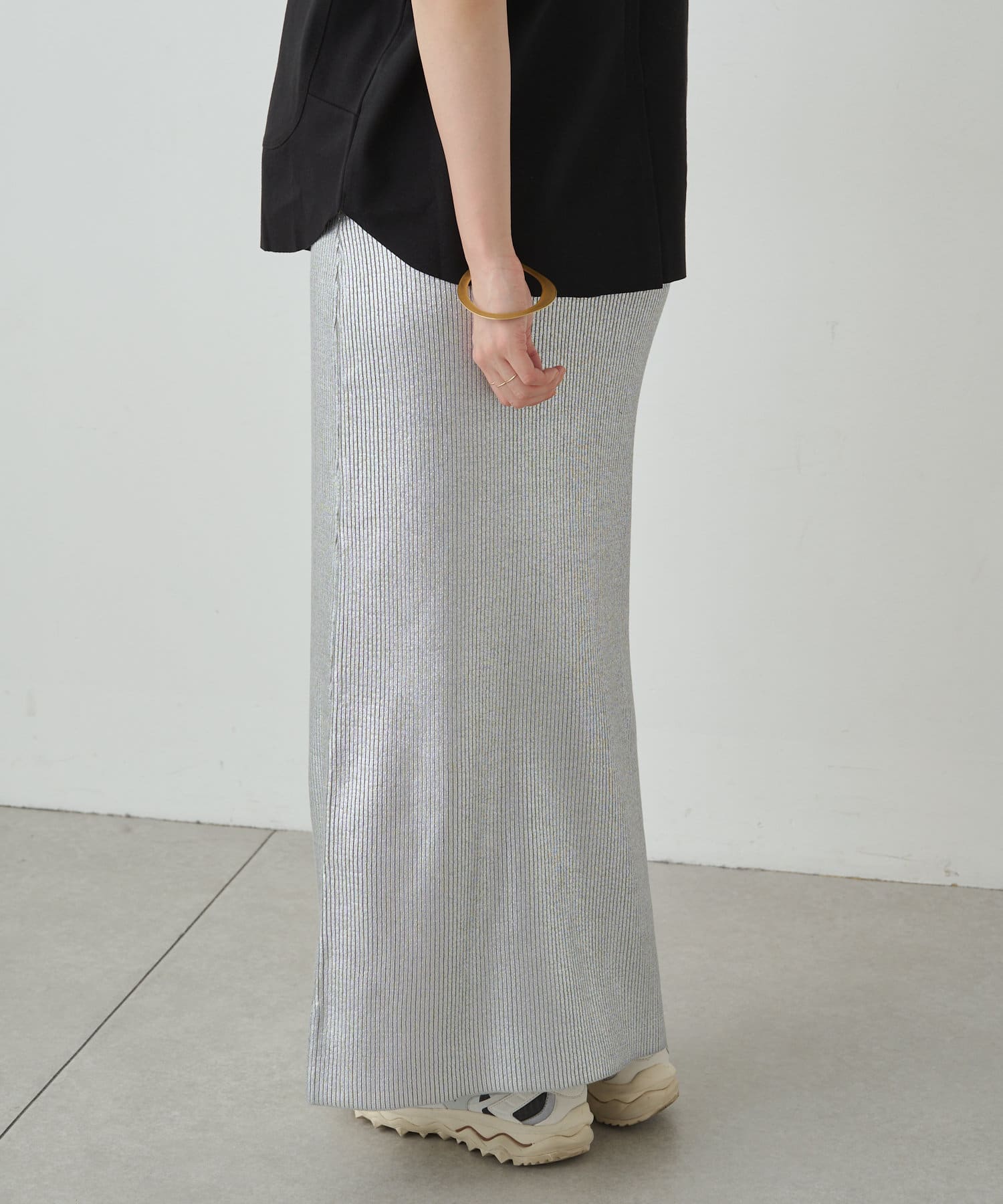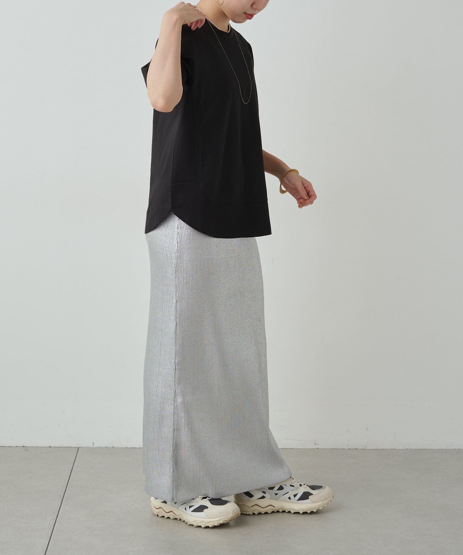 ・1枚で様になる箔の光沢感が、スタイリングのポイントになるスカート
