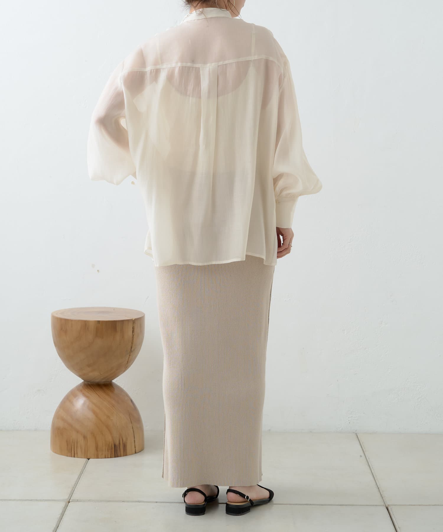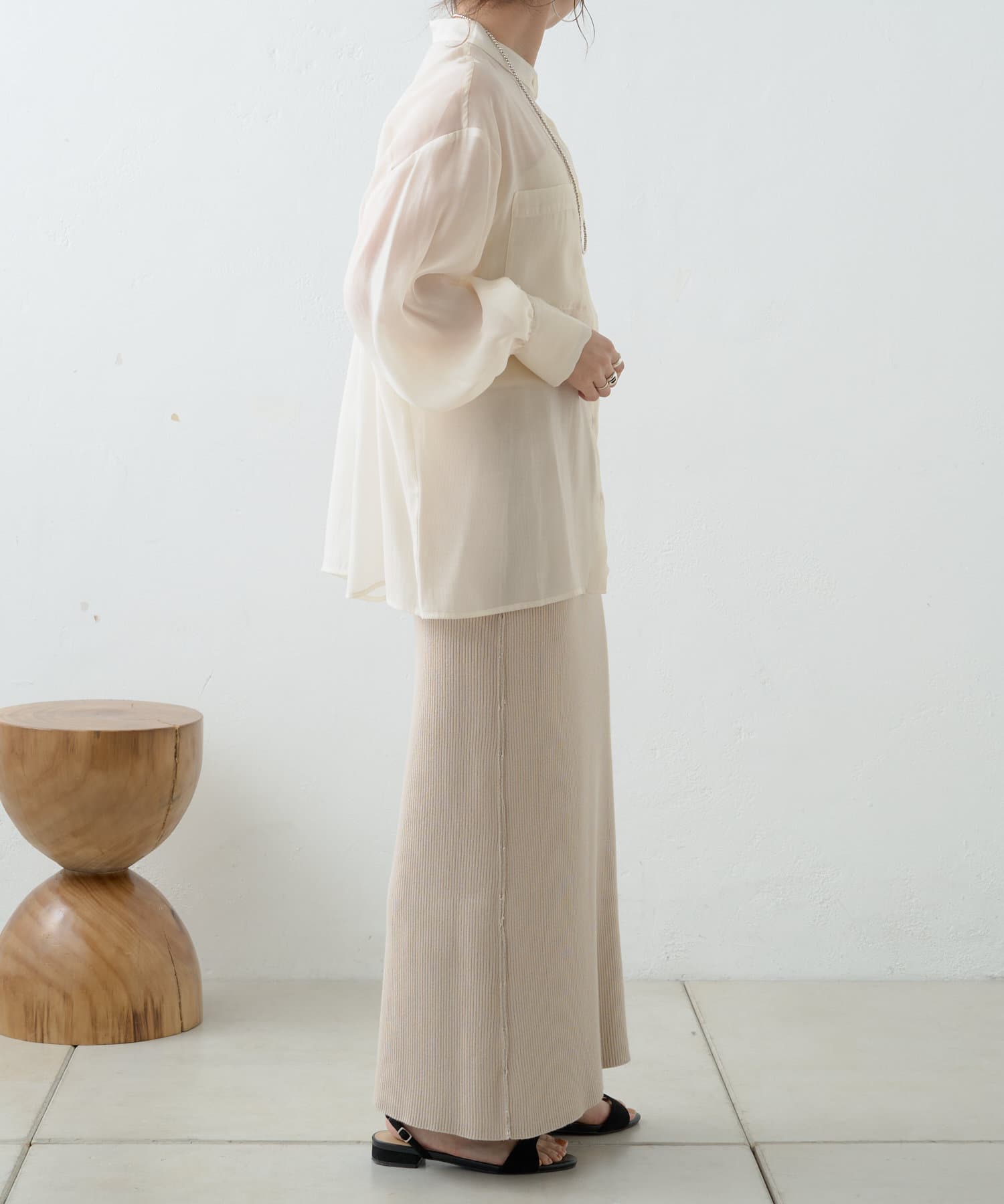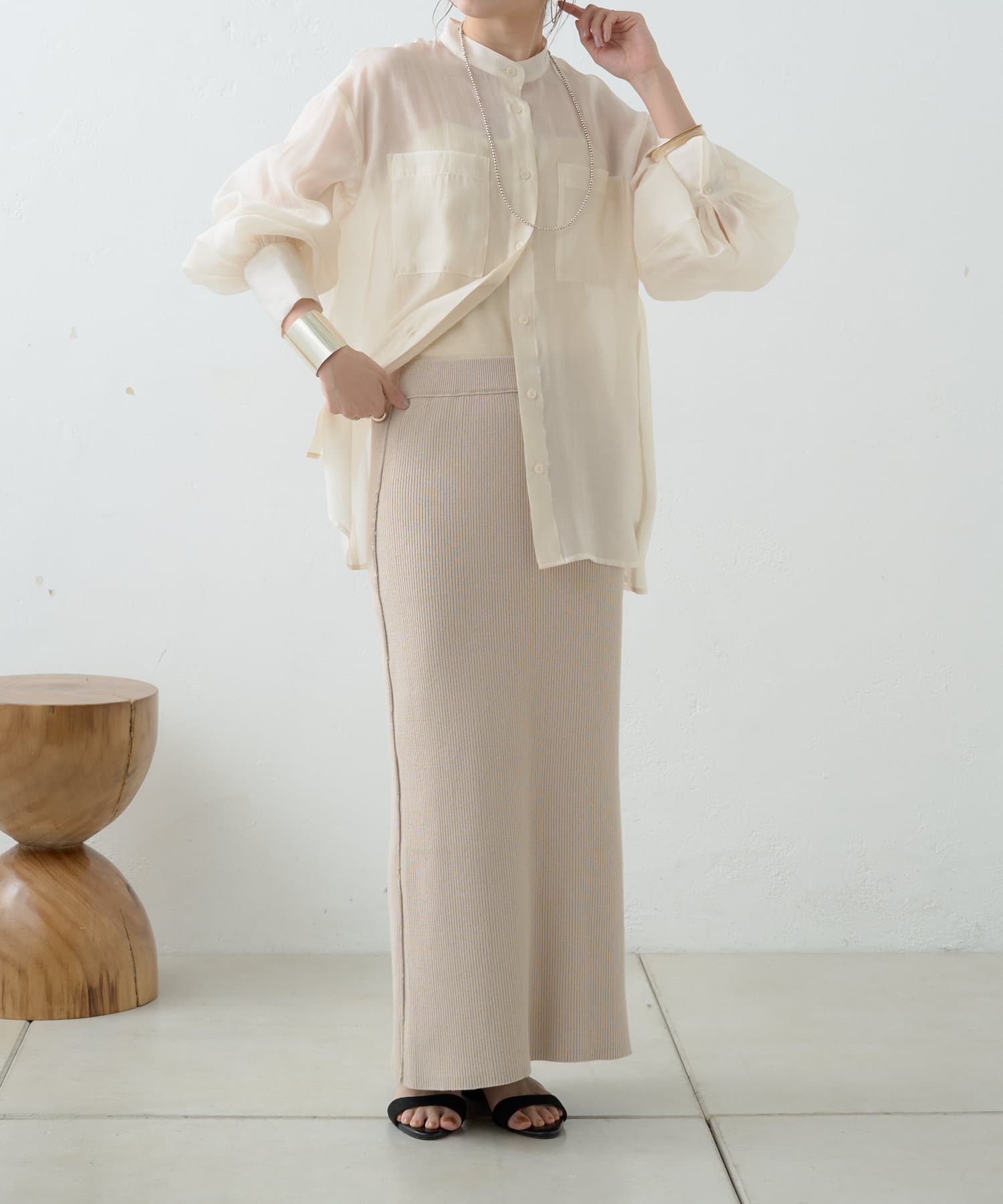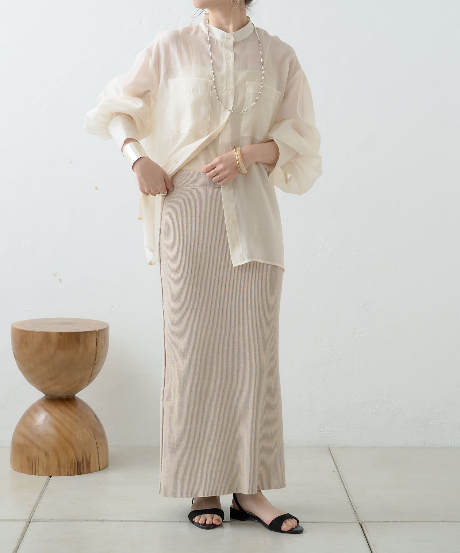 ・やや肉厚なニットを使用することで、身体のラインを拾いにくく着やせ効果も抜群◎