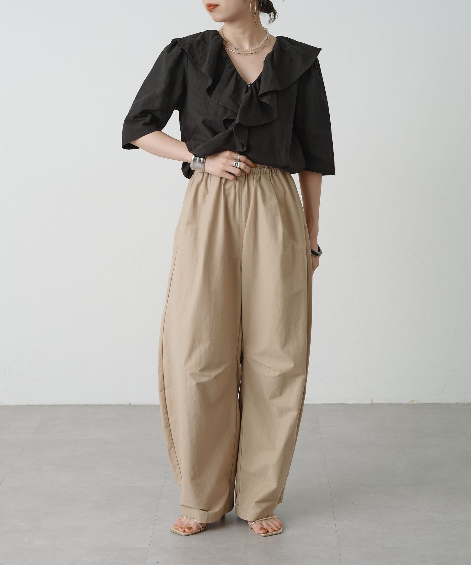 ・リネンの涼しげな生地感で、風通しも良く、着心地の良さも抜群です◎