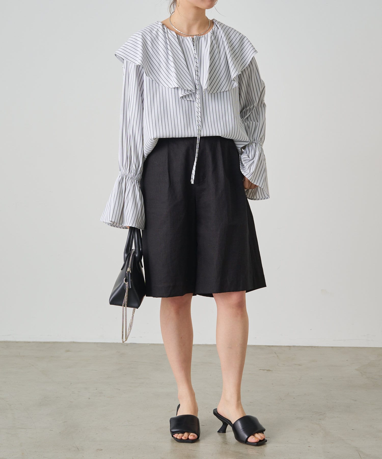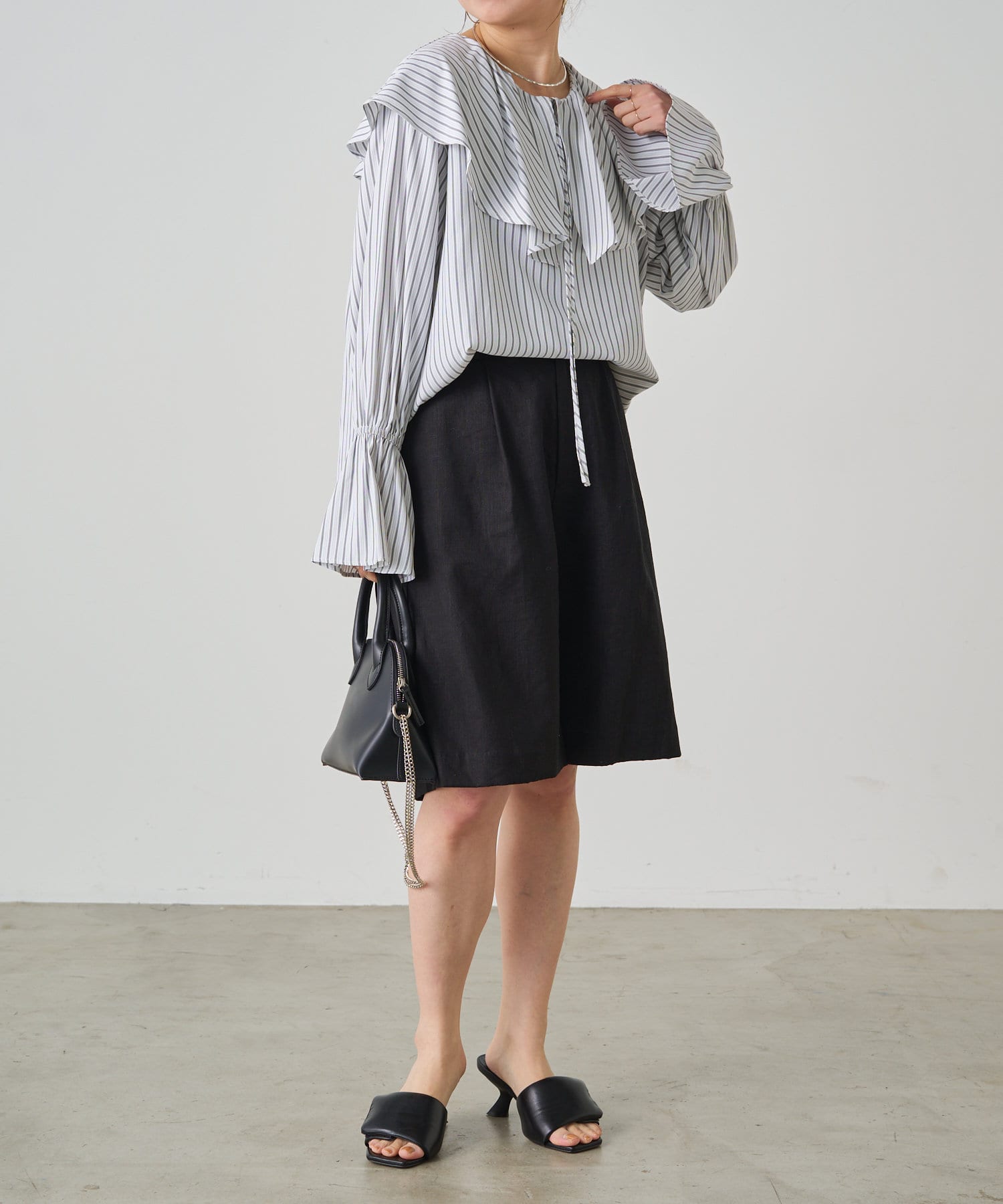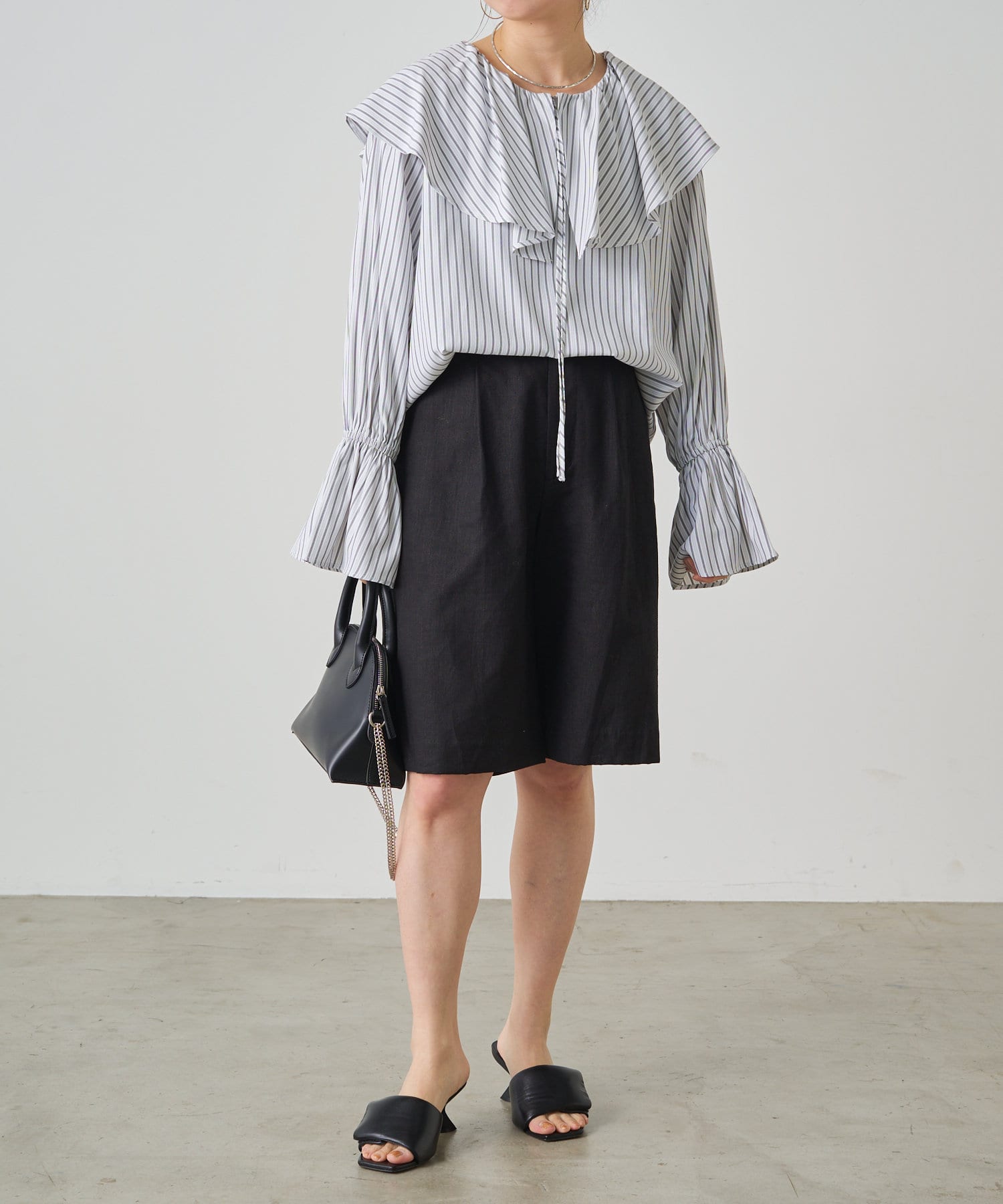 ・膝にかかる丈感と、ワイド目なシルエットでスタイルアップが叶います
