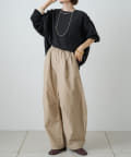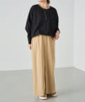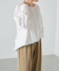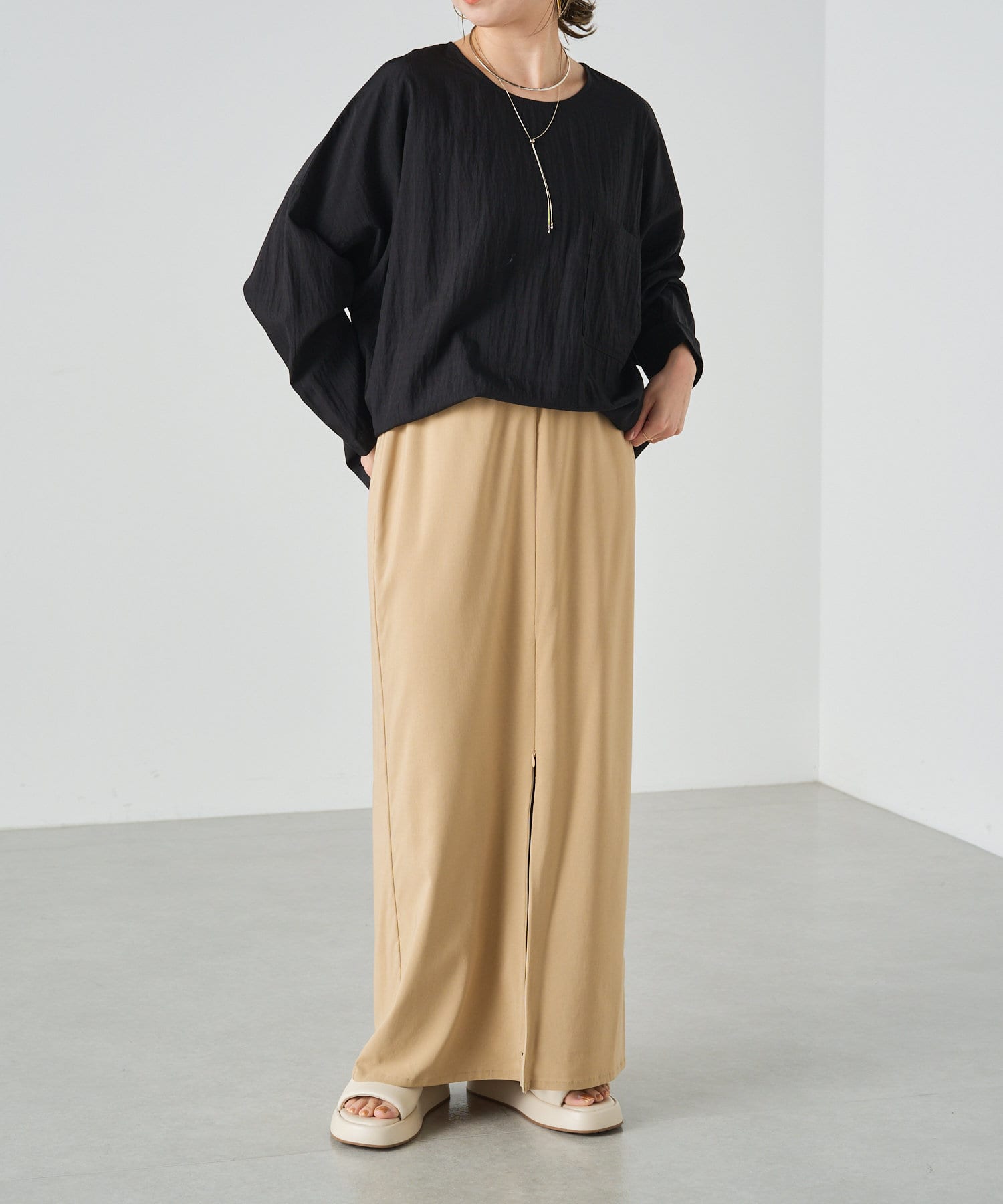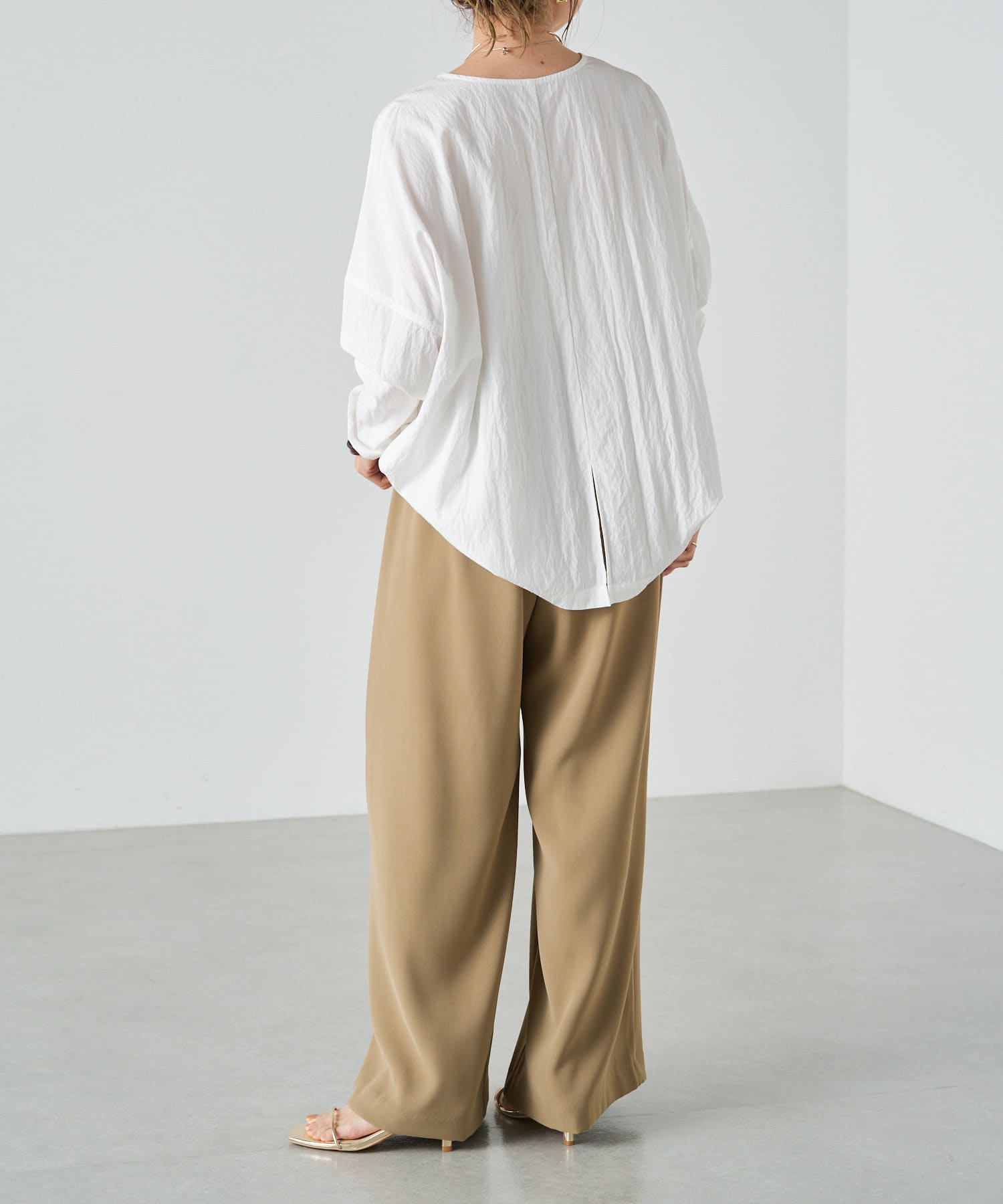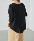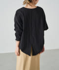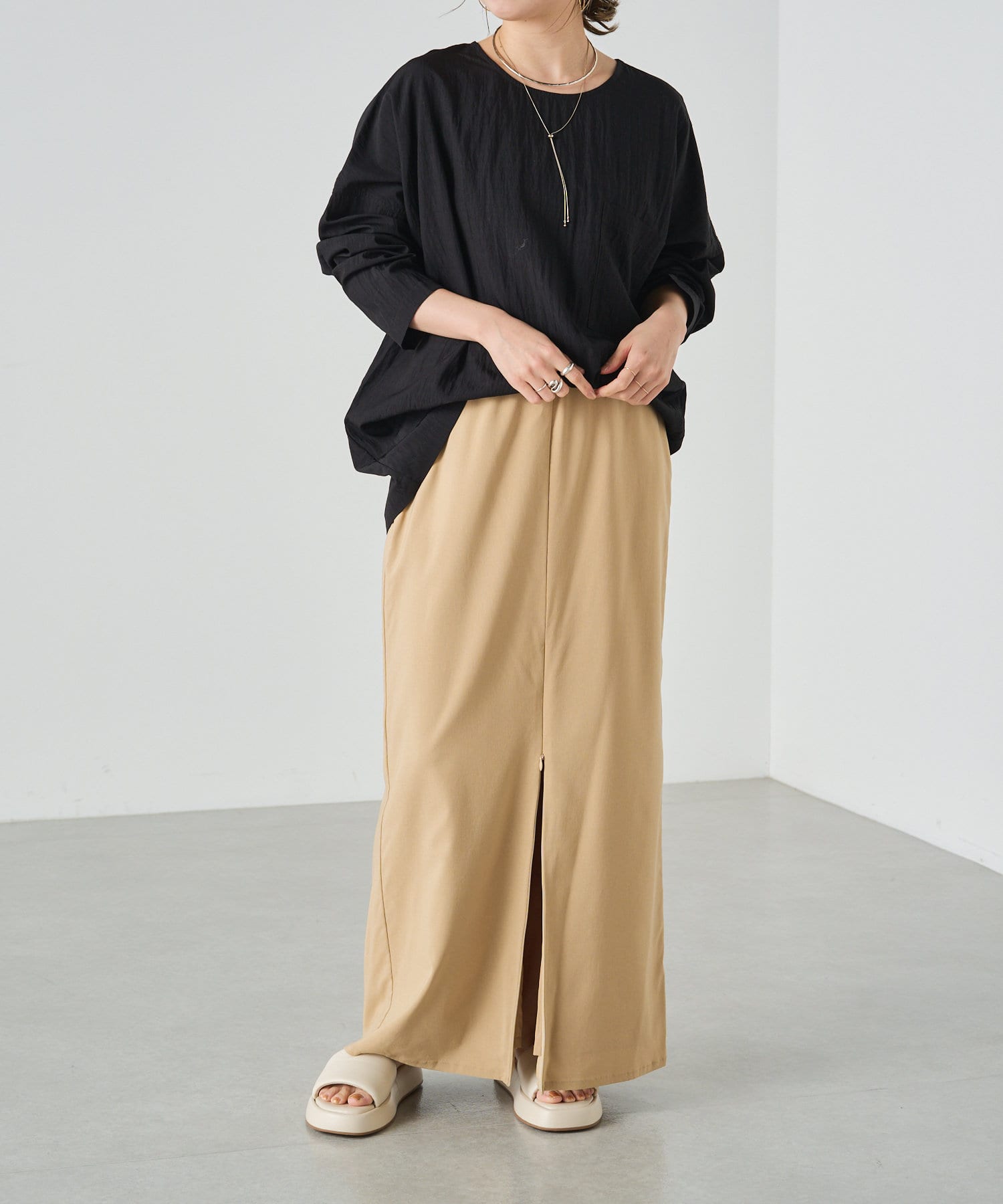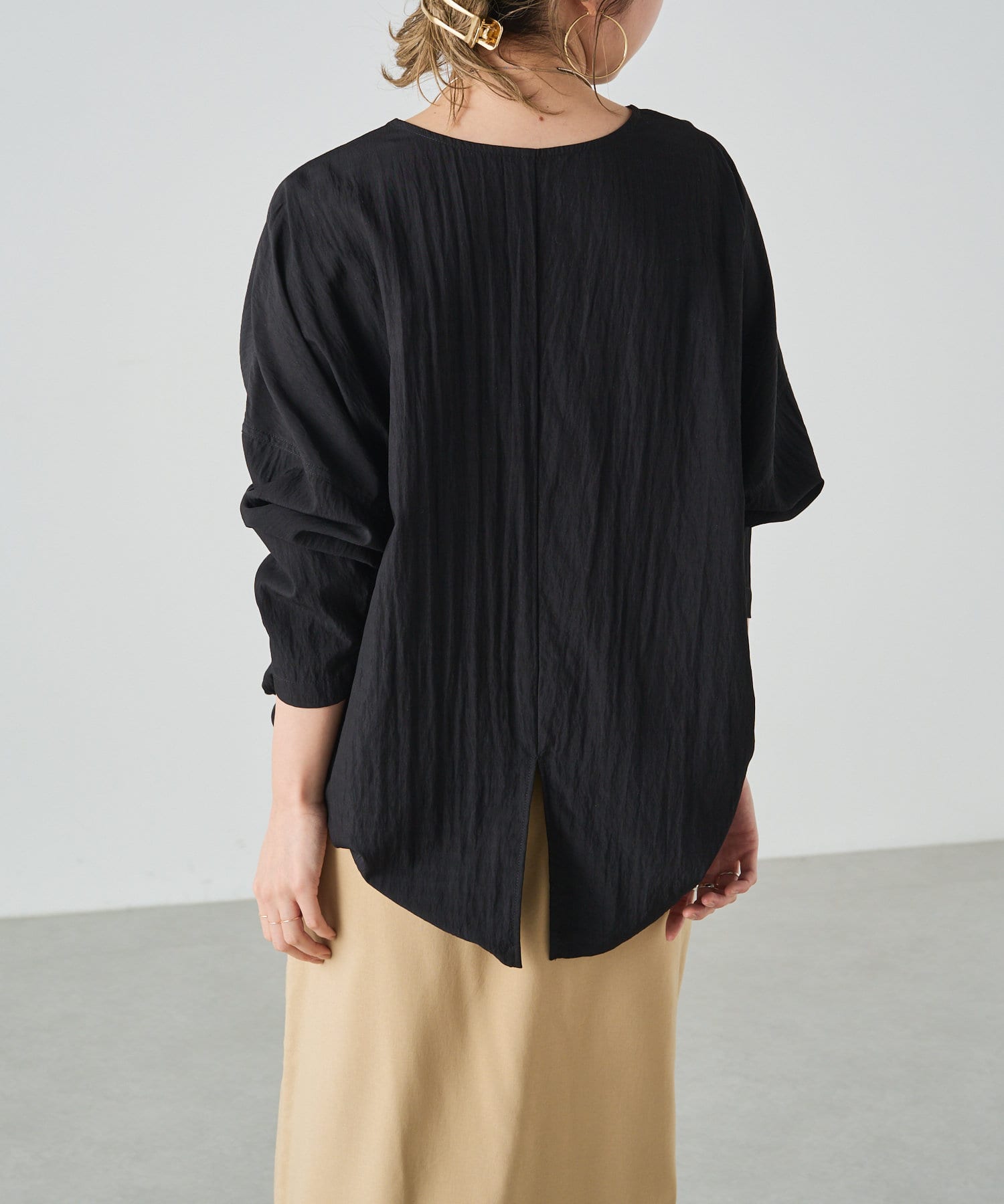 ・Tシャツのようなカジュアルなデザインですが、ややつやのある素材がきれい見えするブラウス