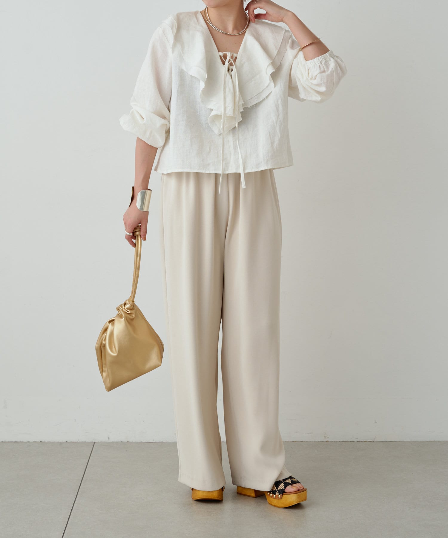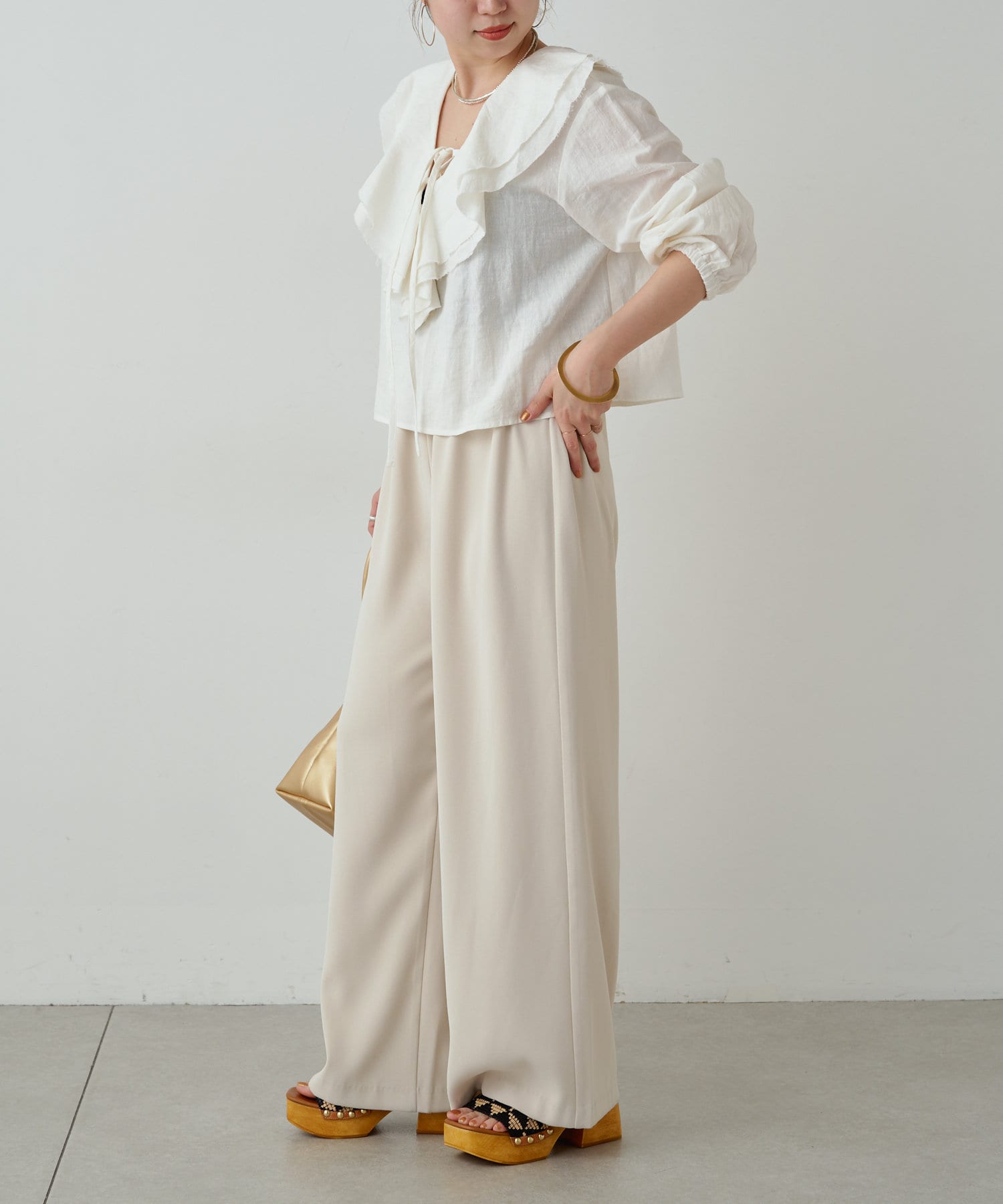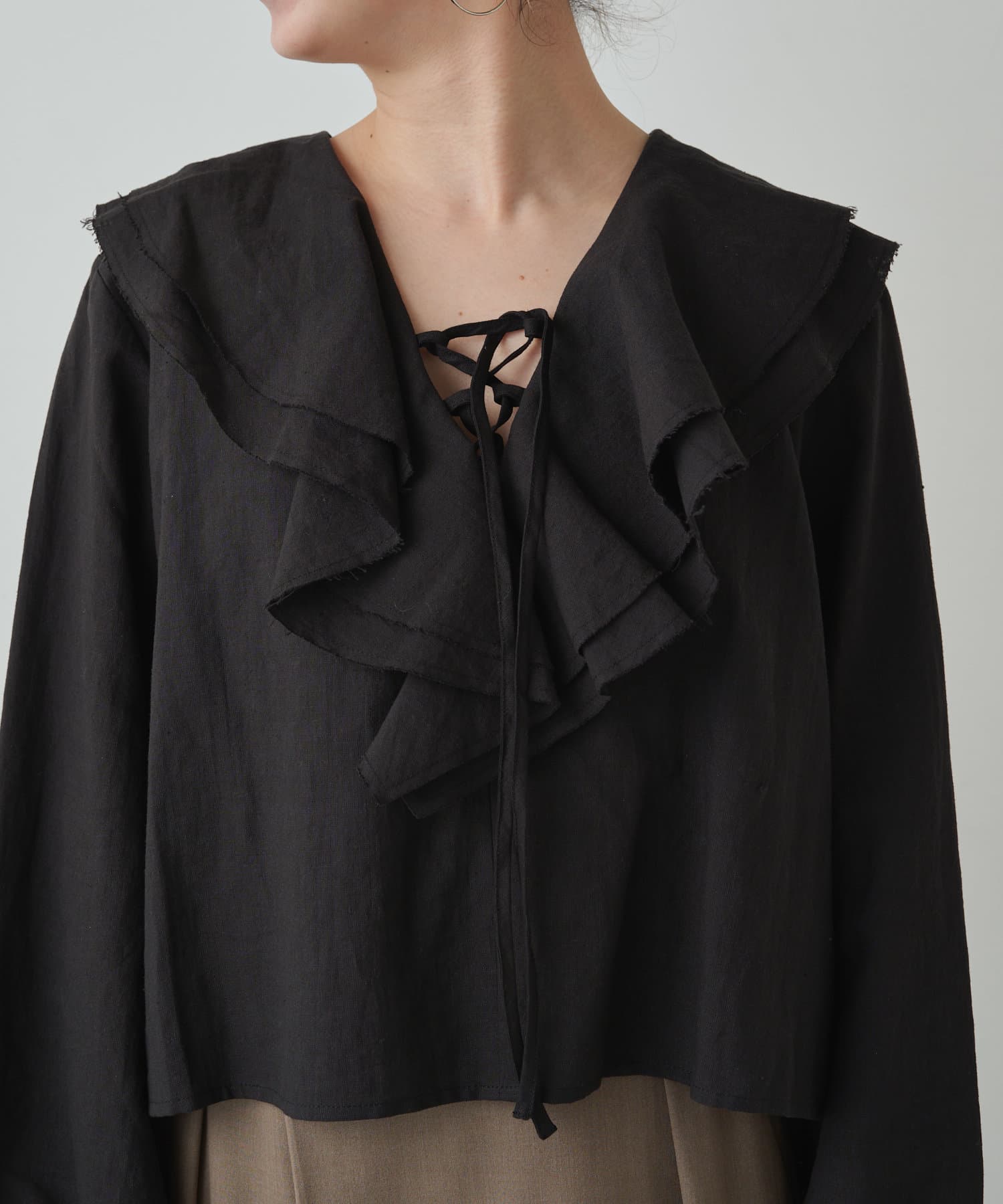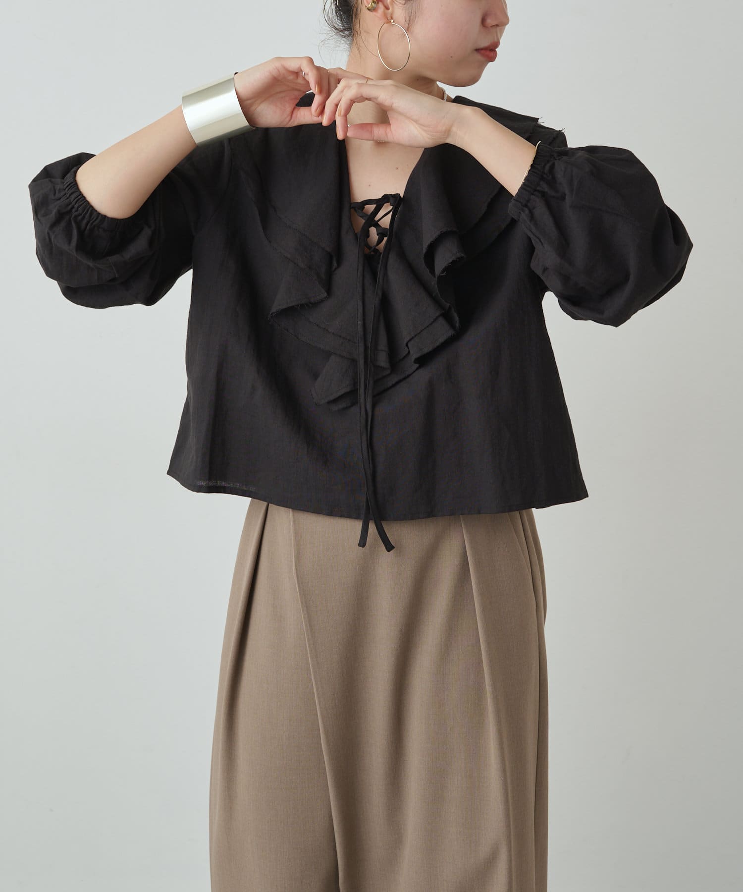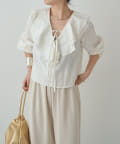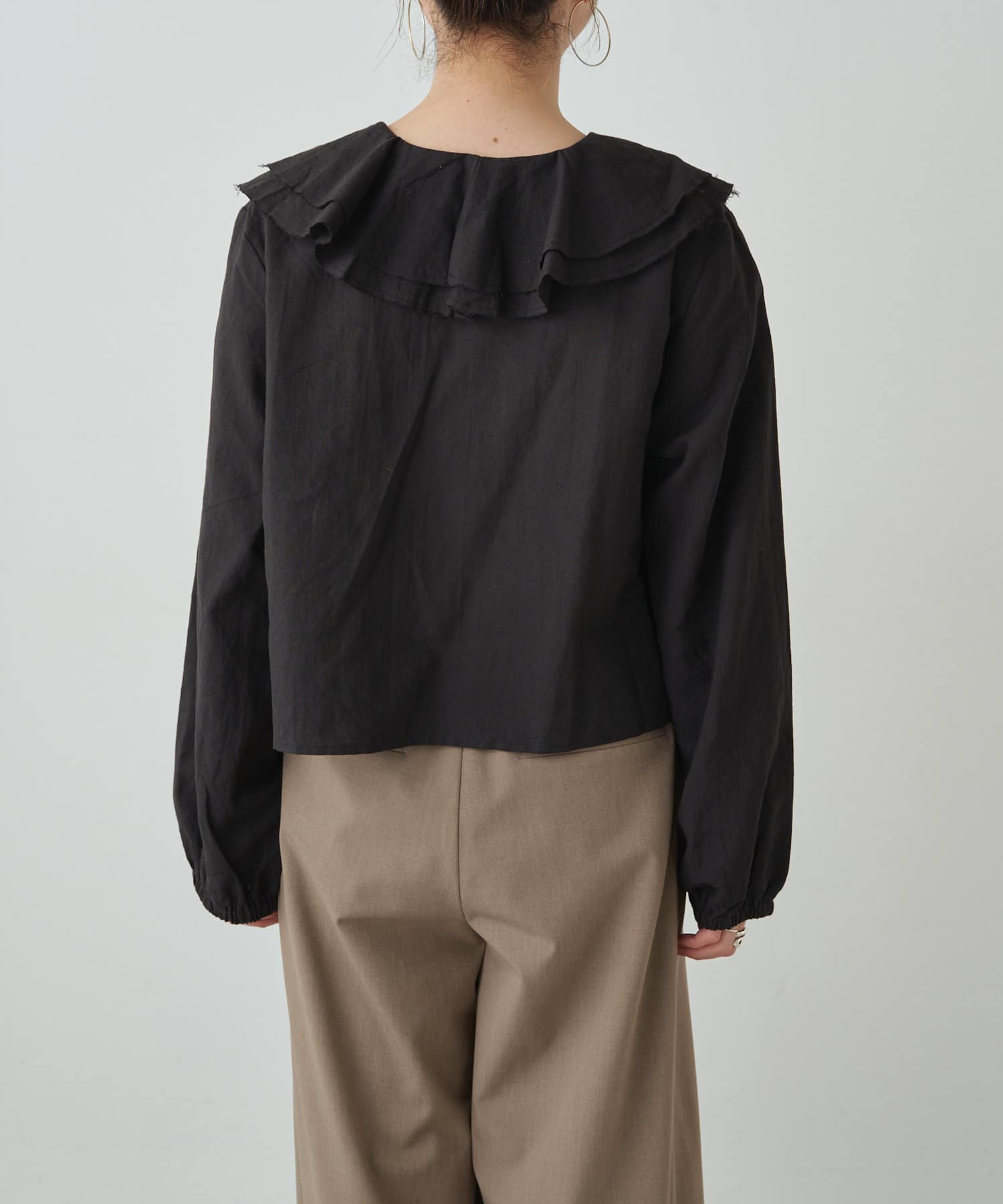 ・デコルテから肩にかけて広がるフリルのデザインで、一枚でコーディネートの主役になるブラウス◎
