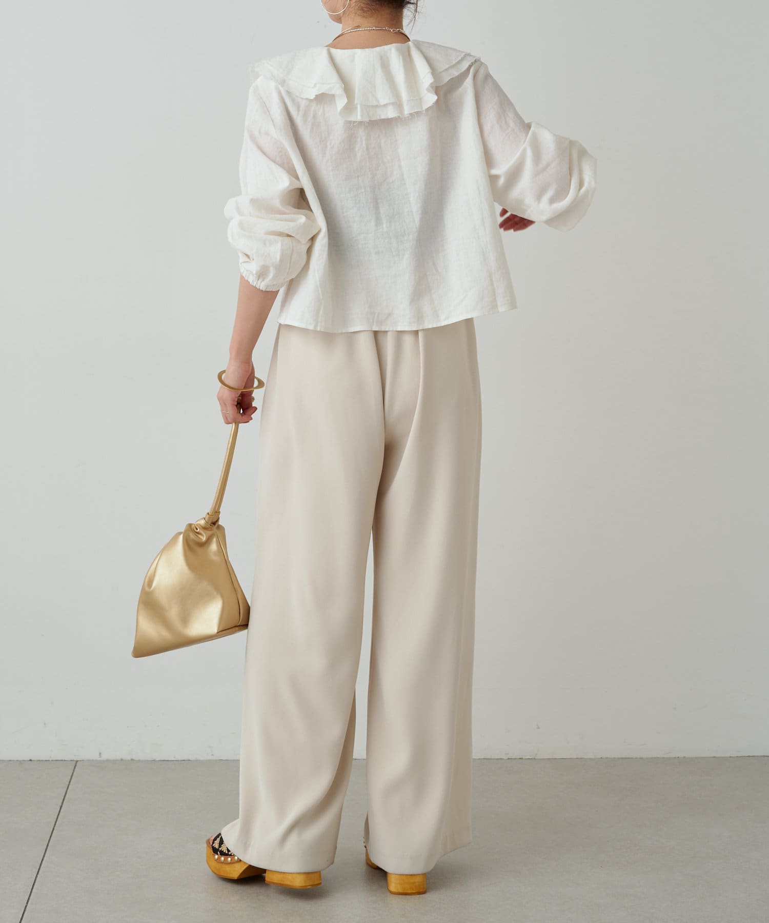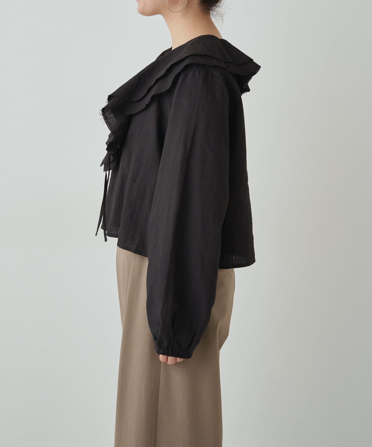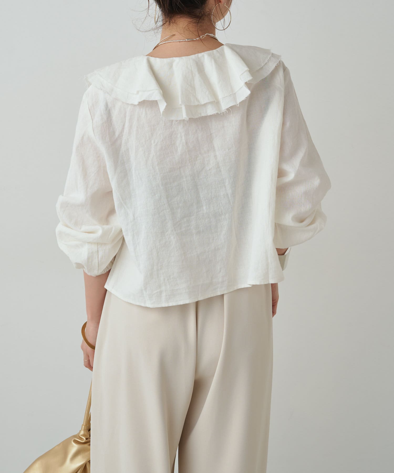 揺れ動く襟が一枚で様になる、Omekashiらしさ溢れるリネンブラウス!