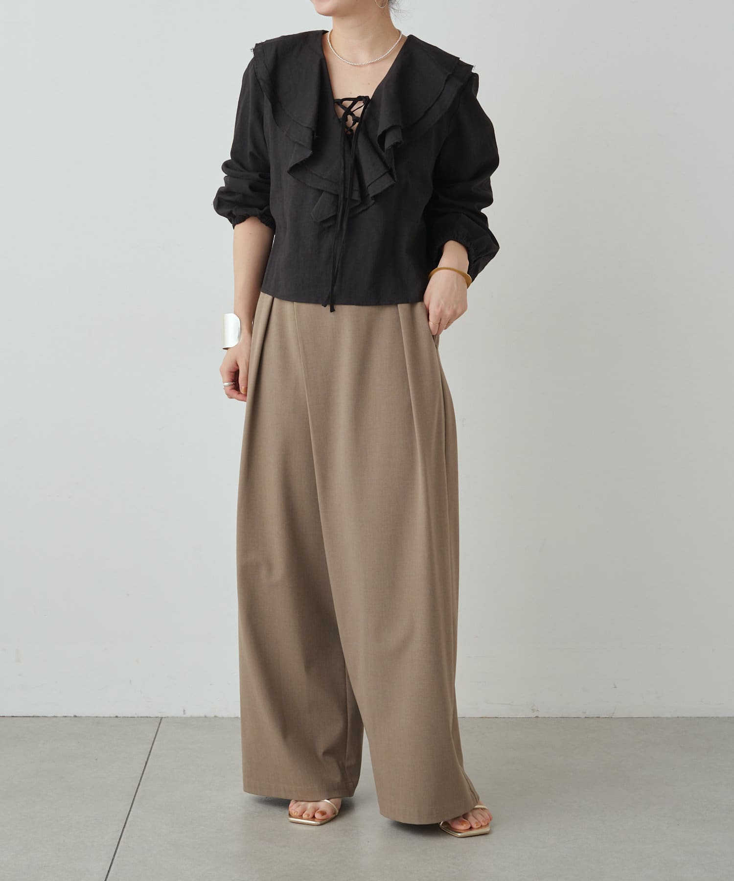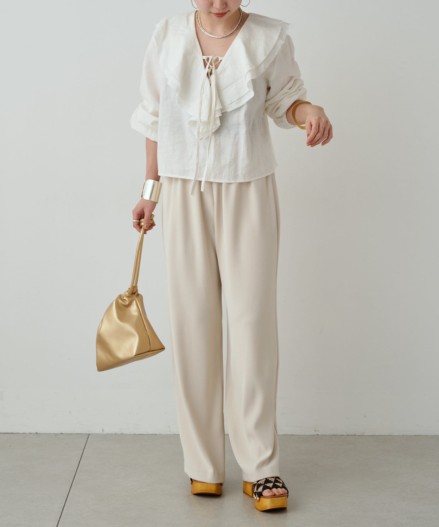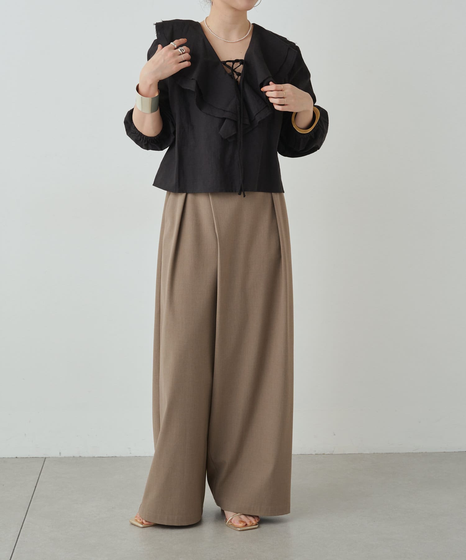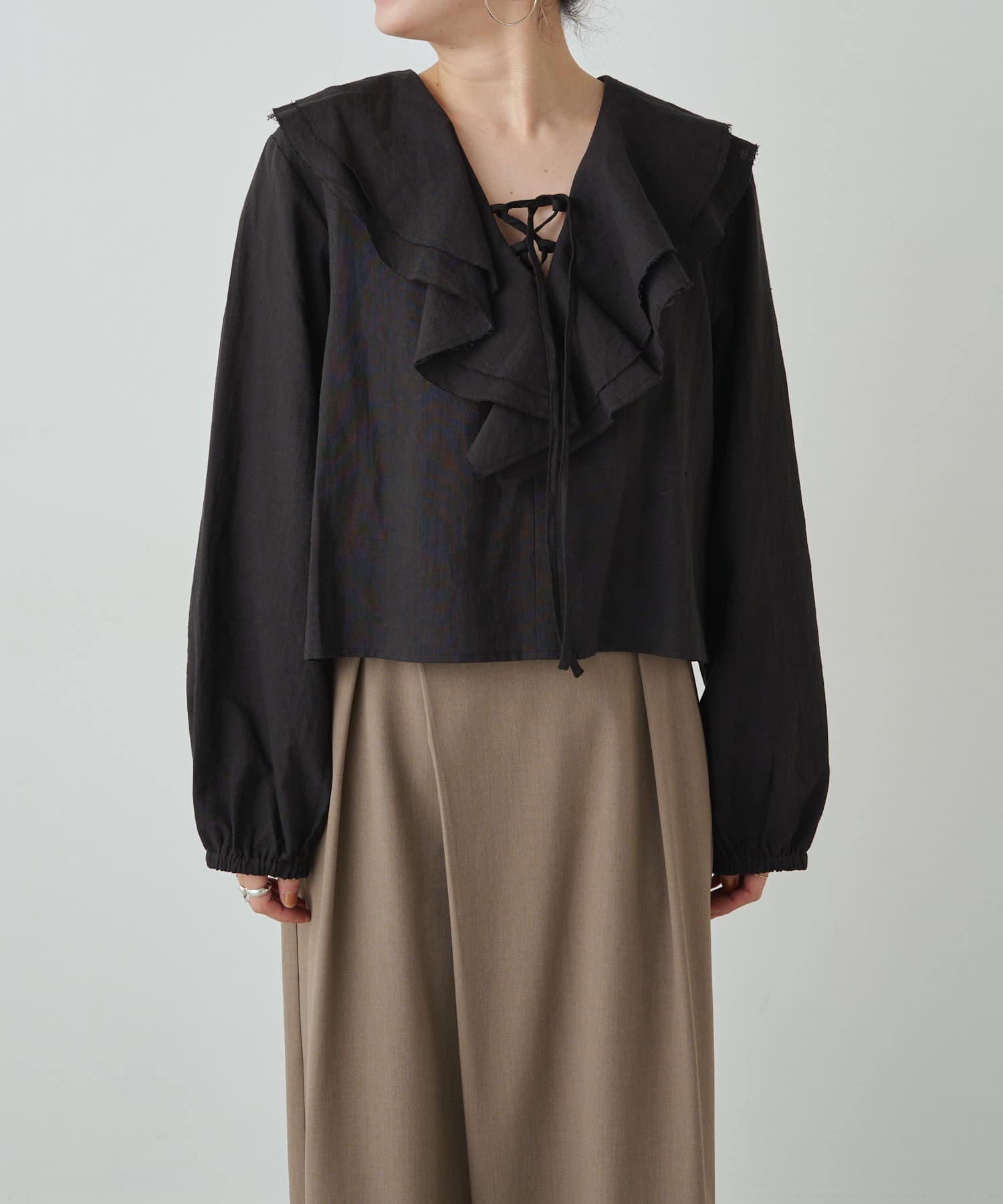 揺れ動く襟が一枚で様になる、Omekashiらしさ溢れるリネンブラウス!