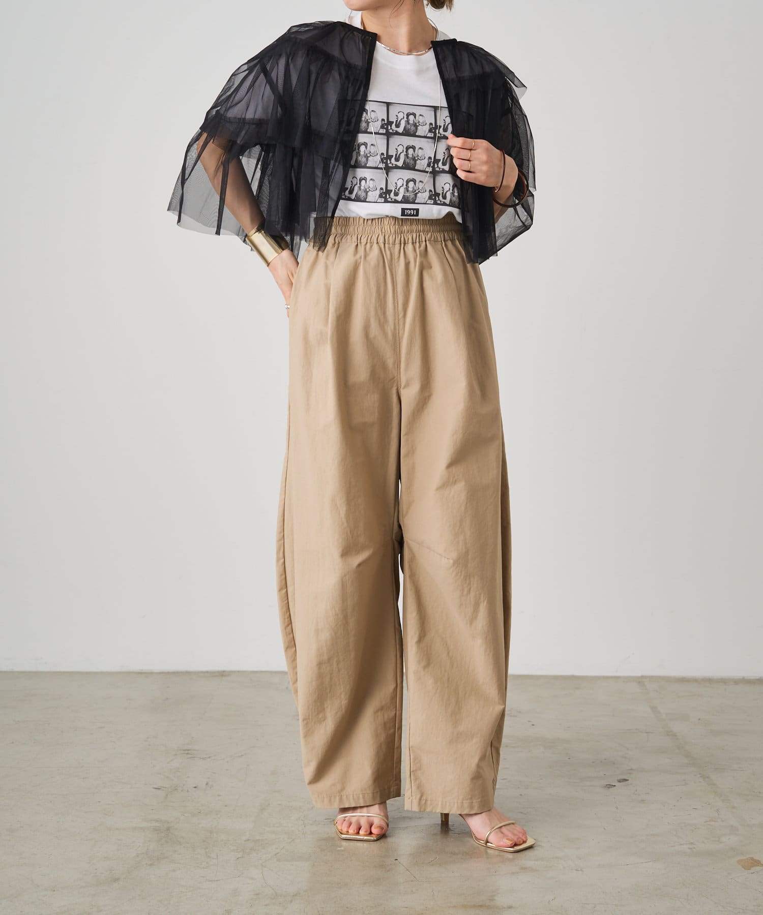 チュールだけど広がりすぎずでよかった。Tシャツだけだと体のラインが気になるので重ね着に重宝しそう♪