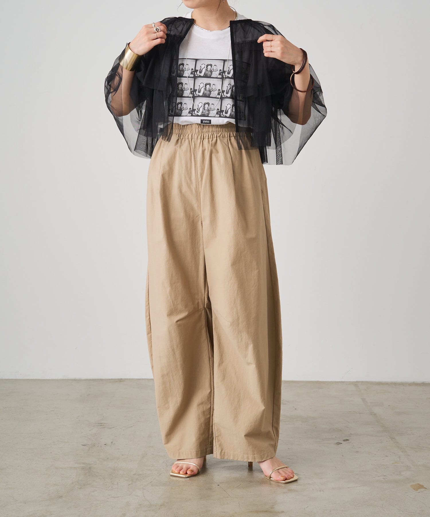 ・シアー素材なので旬なレイヤードスタイルにも◎中に合わせるもの次第で雰囲気を変えて楽しめる一着。