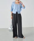 ・カーブパンツやラップパンツなど、カジュアルボトムと合わせた抜け感のあるコーデがおすすめです。