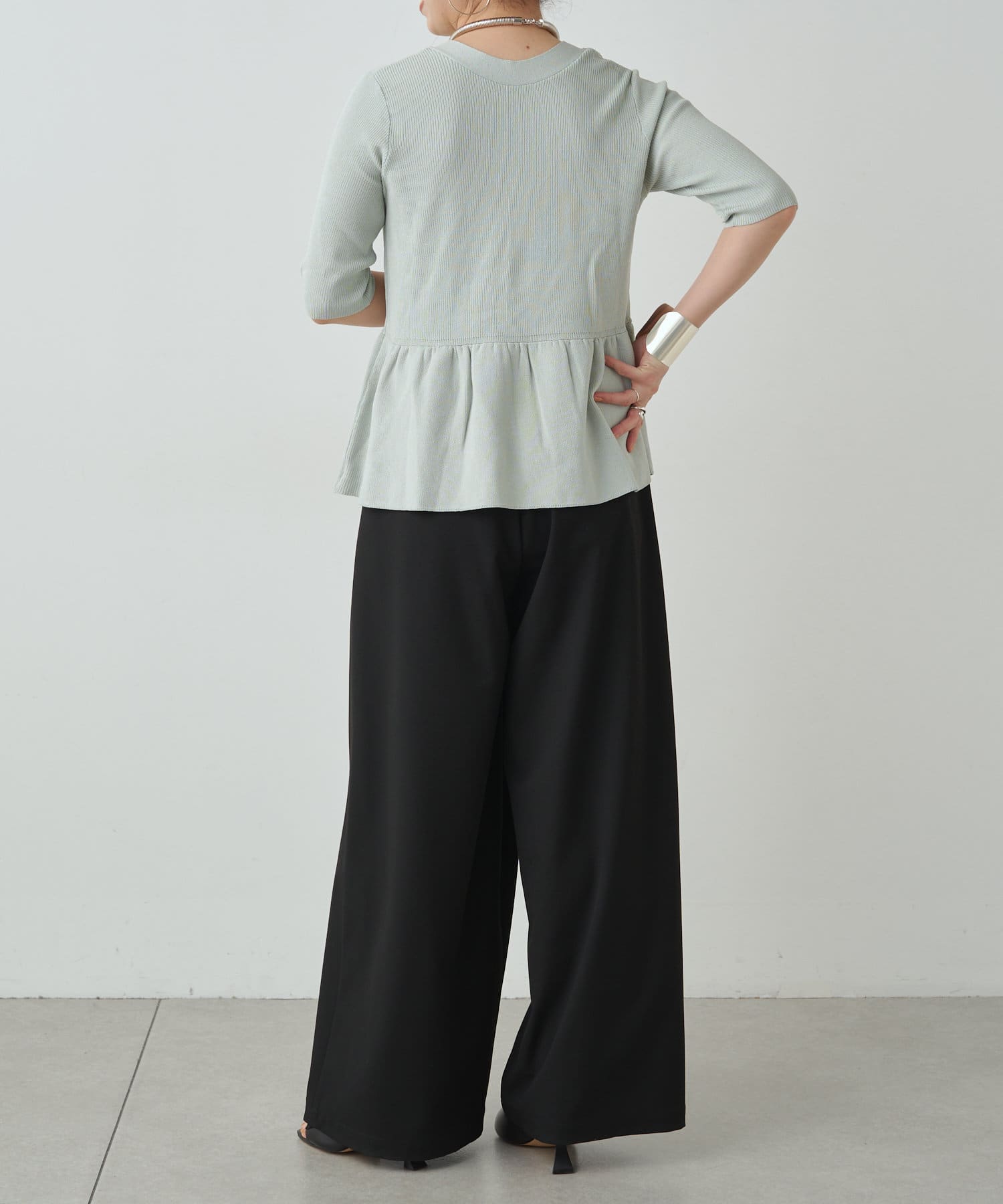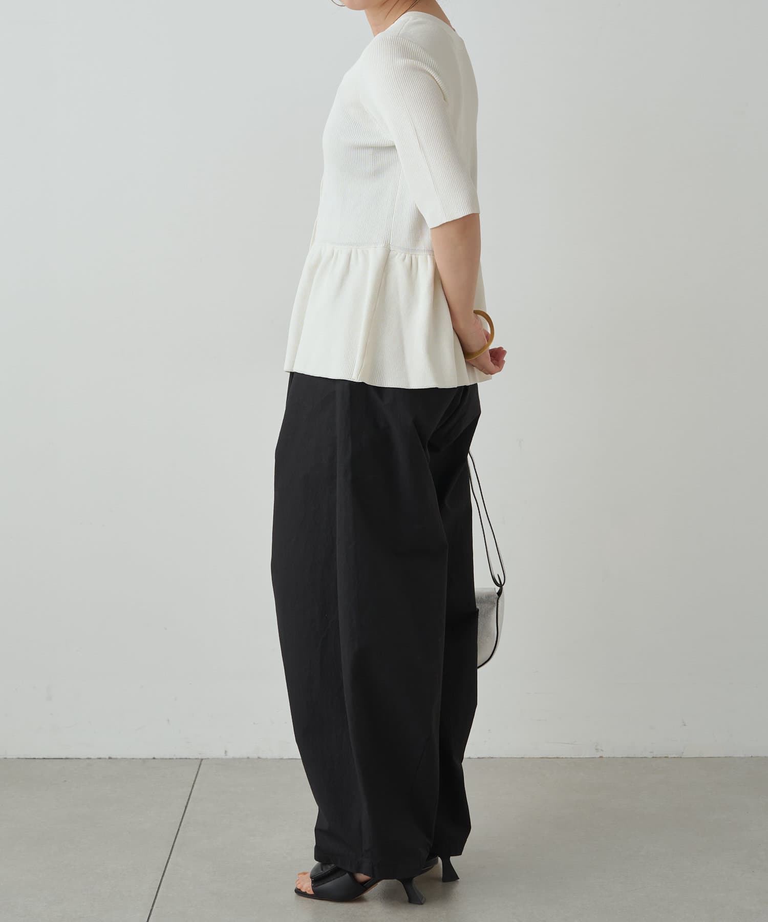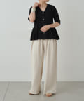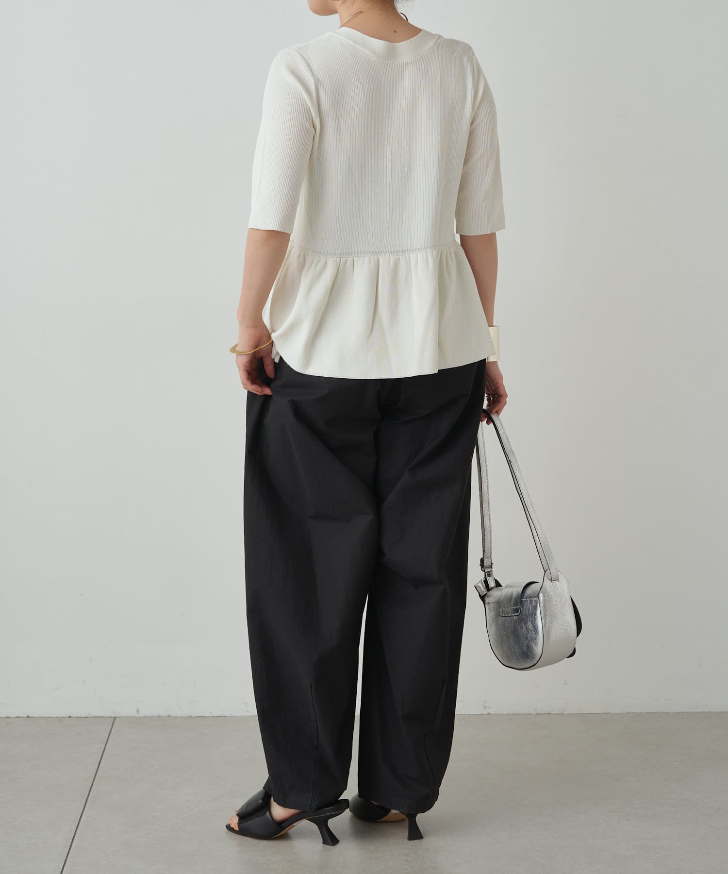 ・綺麗めにはスラックスやラップパンツ、Iラインスカート合わせ、カジュアルにはカーブパンツやデニム合わせがおすすめです◎