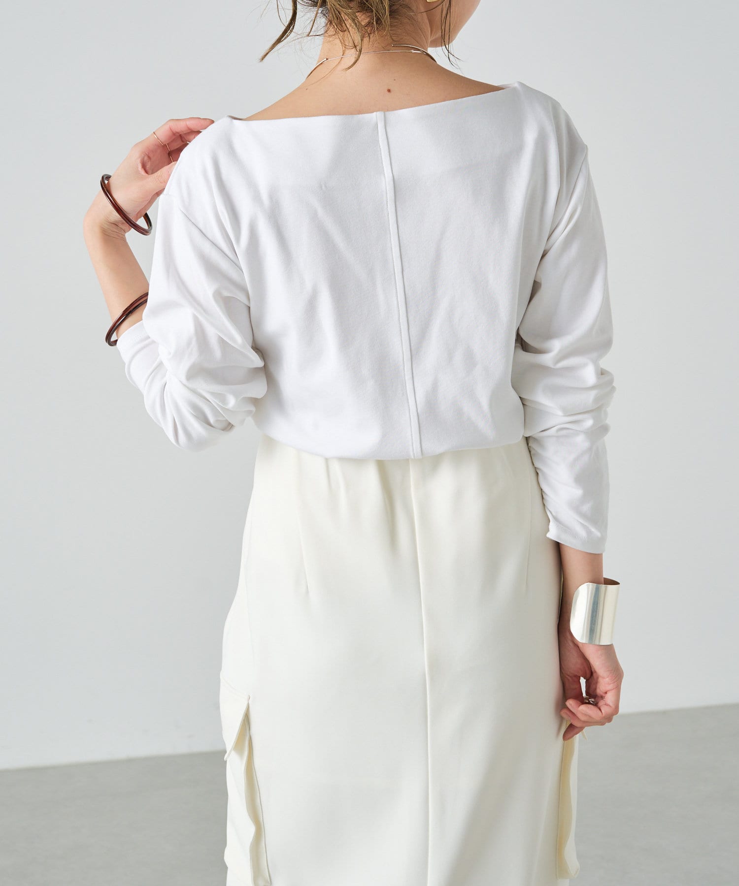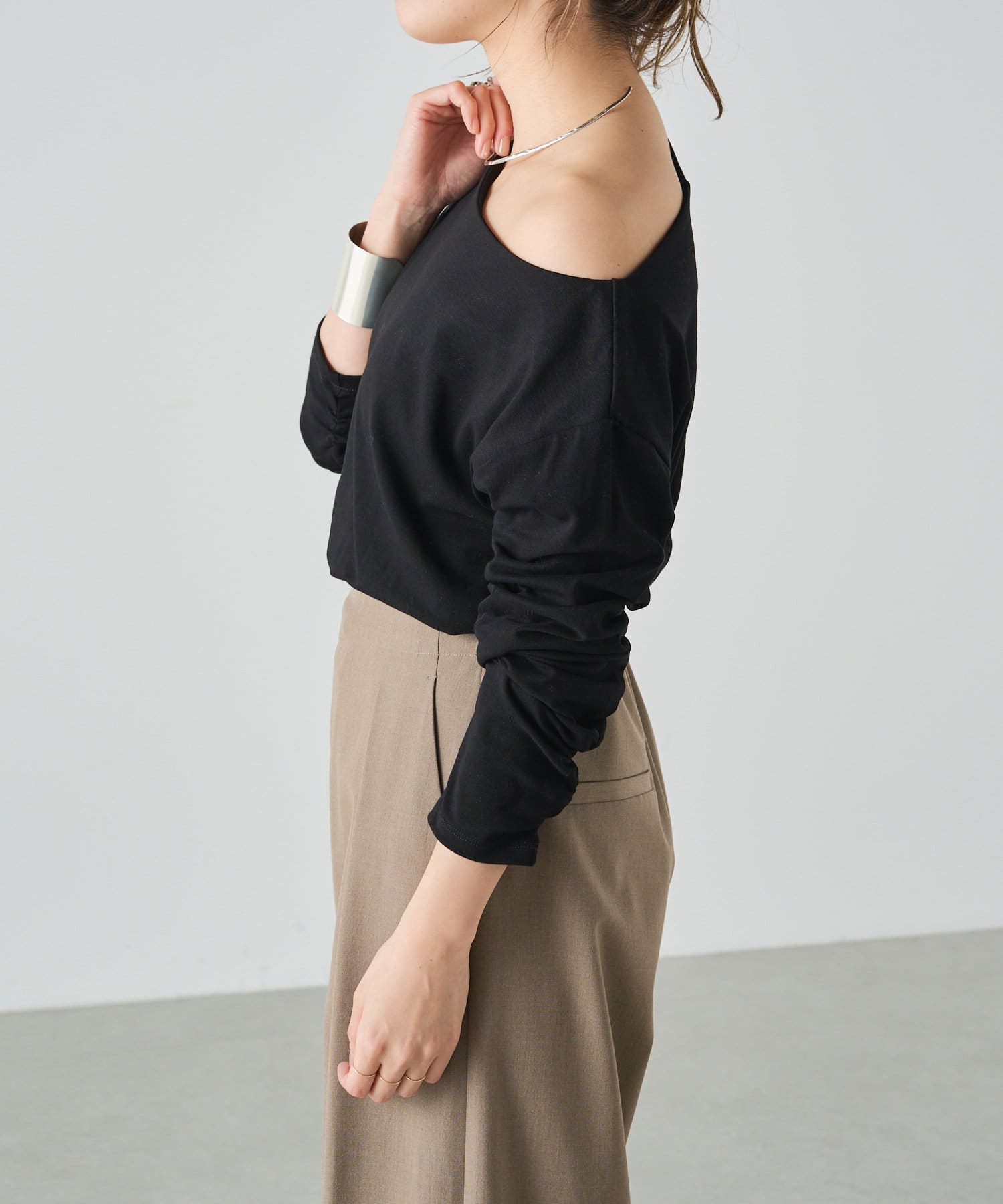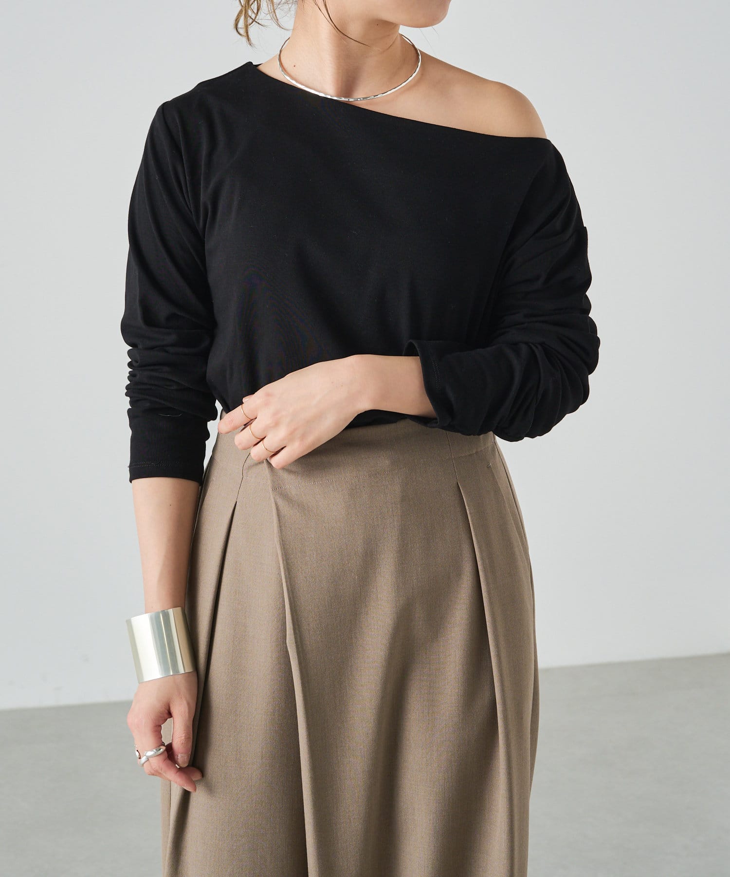 ・ネックの開きを調整することが出来るので、オフショル以外に、ワンショル、ボートネック風など