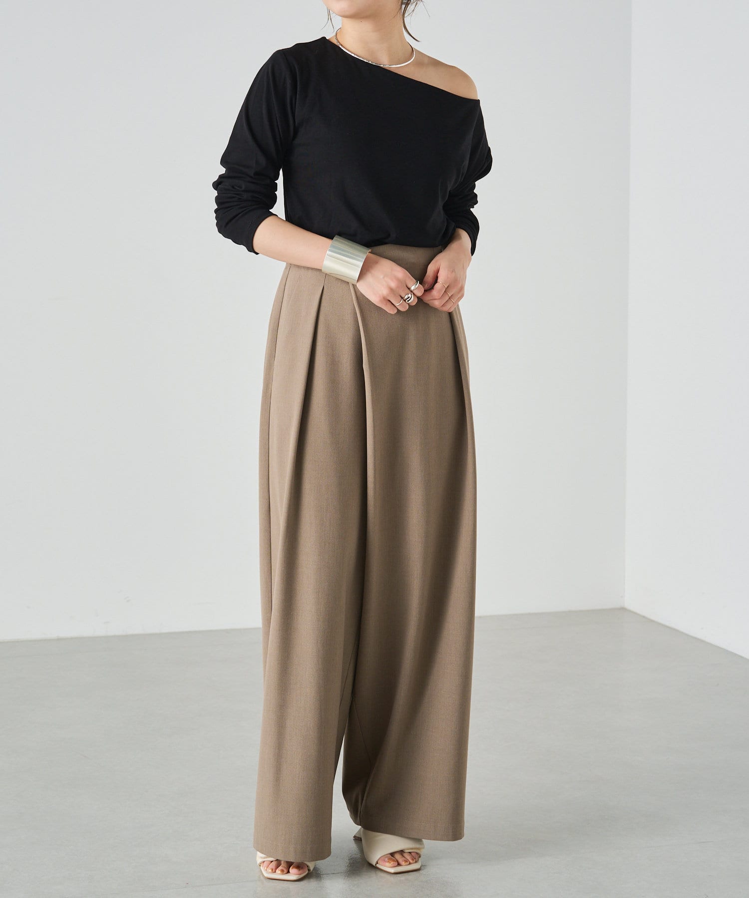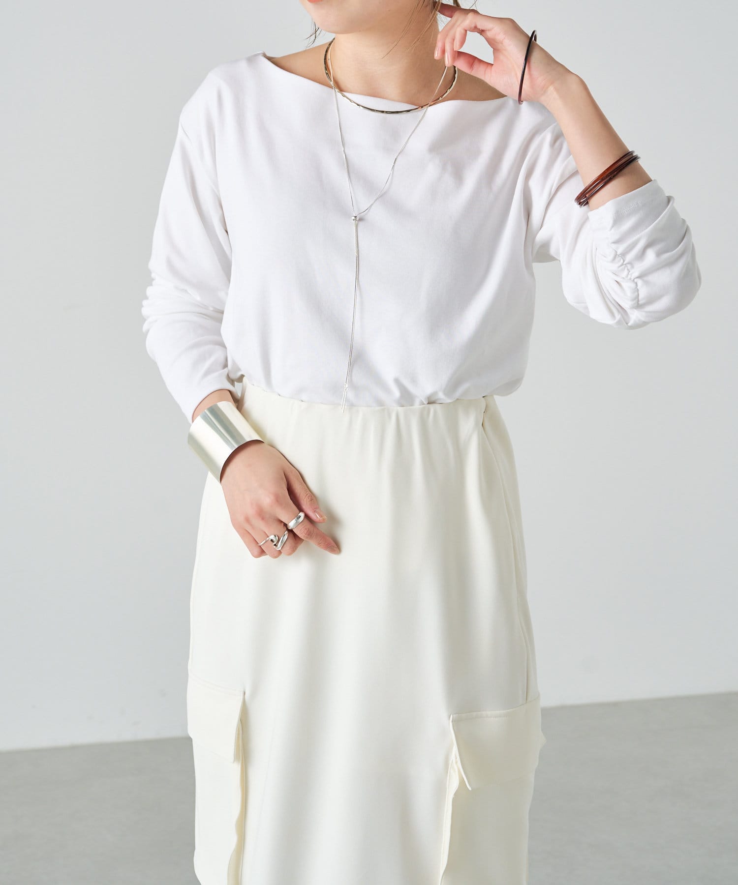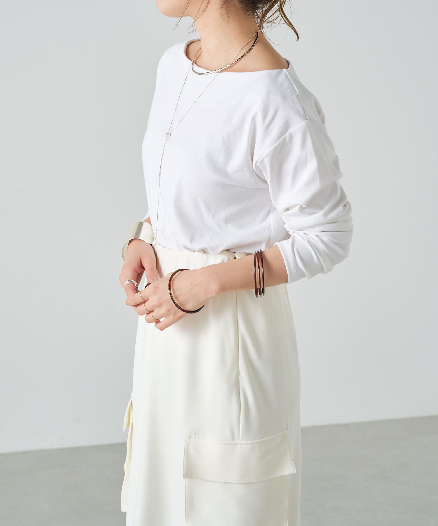 ・ネックの開きを調整することが出来るので、オフショル以外に、ワンショル、ボートネック風など