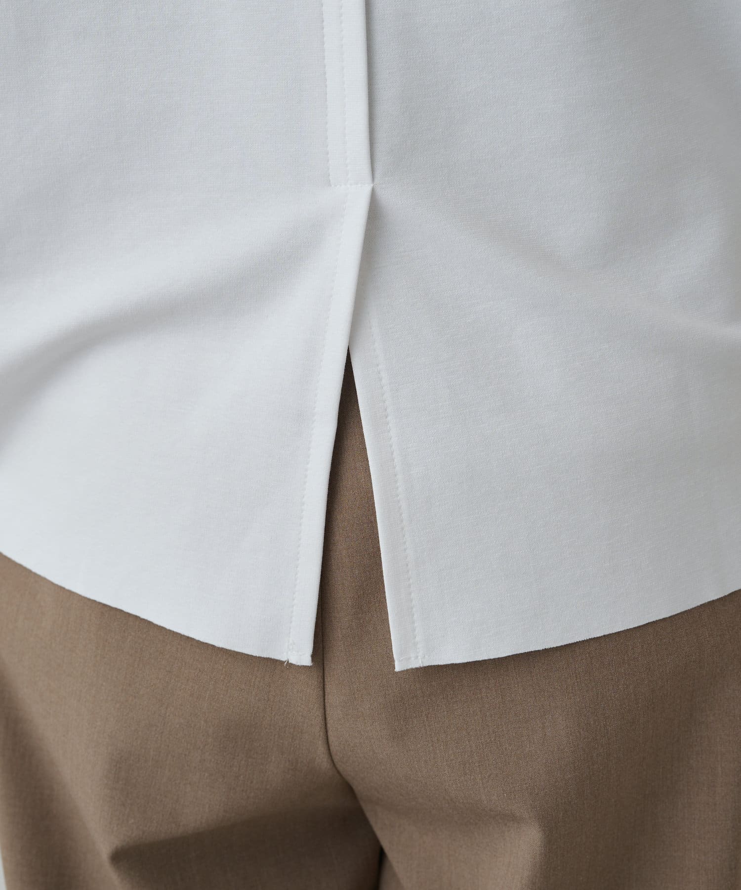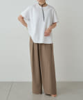 ・シンプルなスラックス合わせはもちろん、フロント部分のみタックインした着こなしもおすすめです