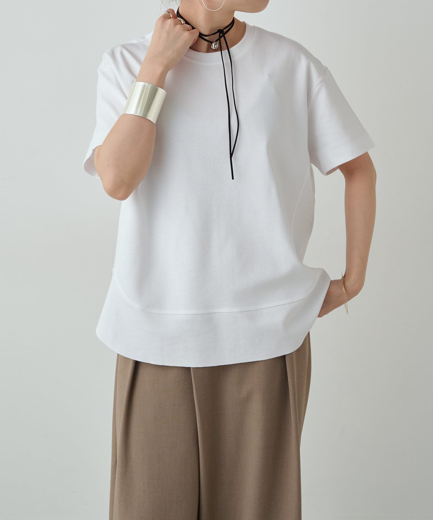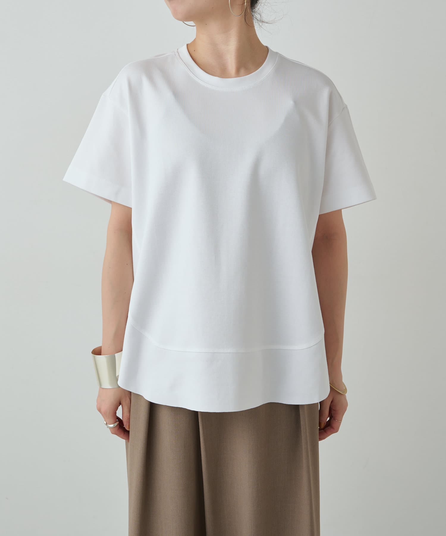 ・裾部分に切り替えがあることで、スタイリングのポイントにもなり、こなれた印象に