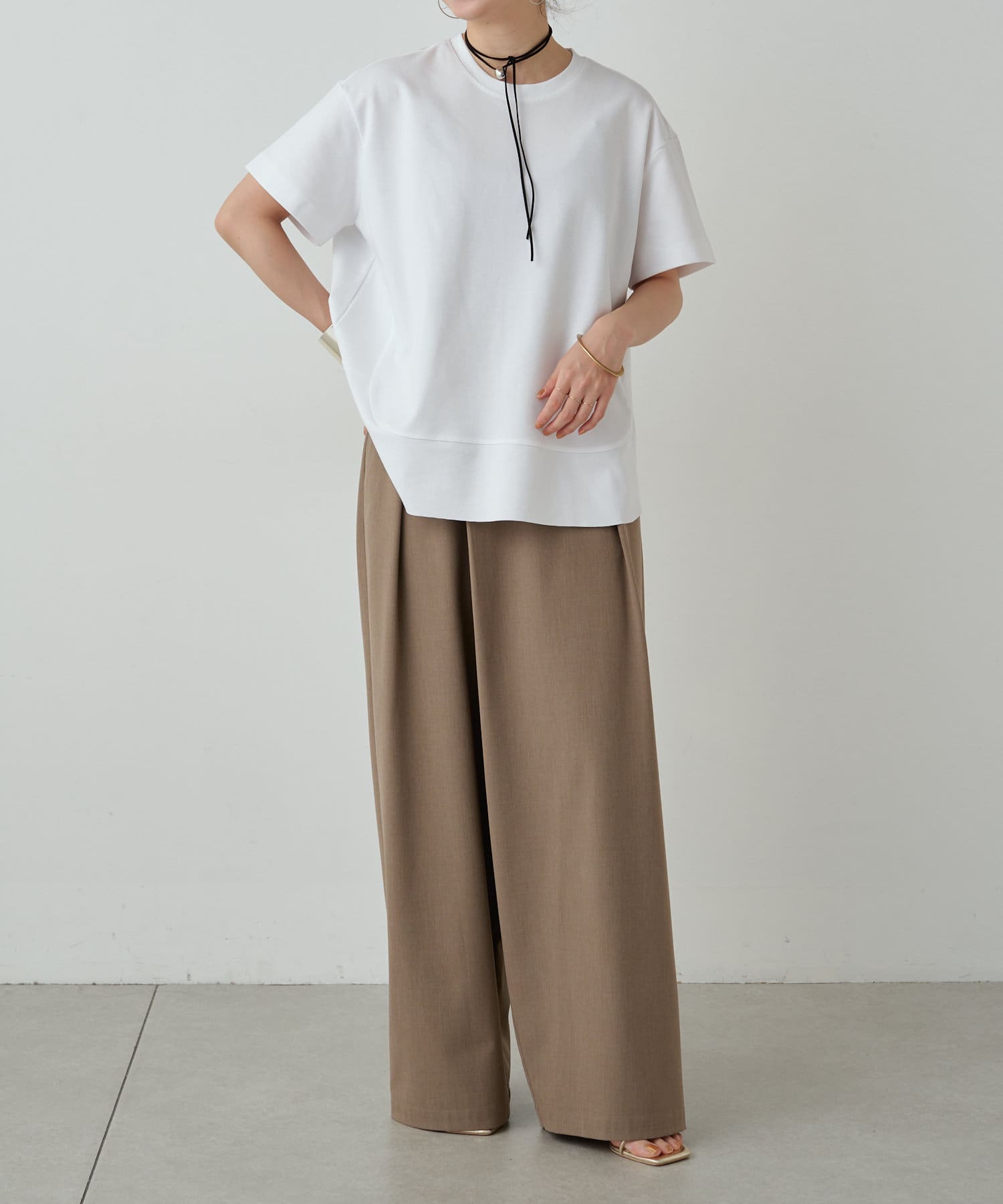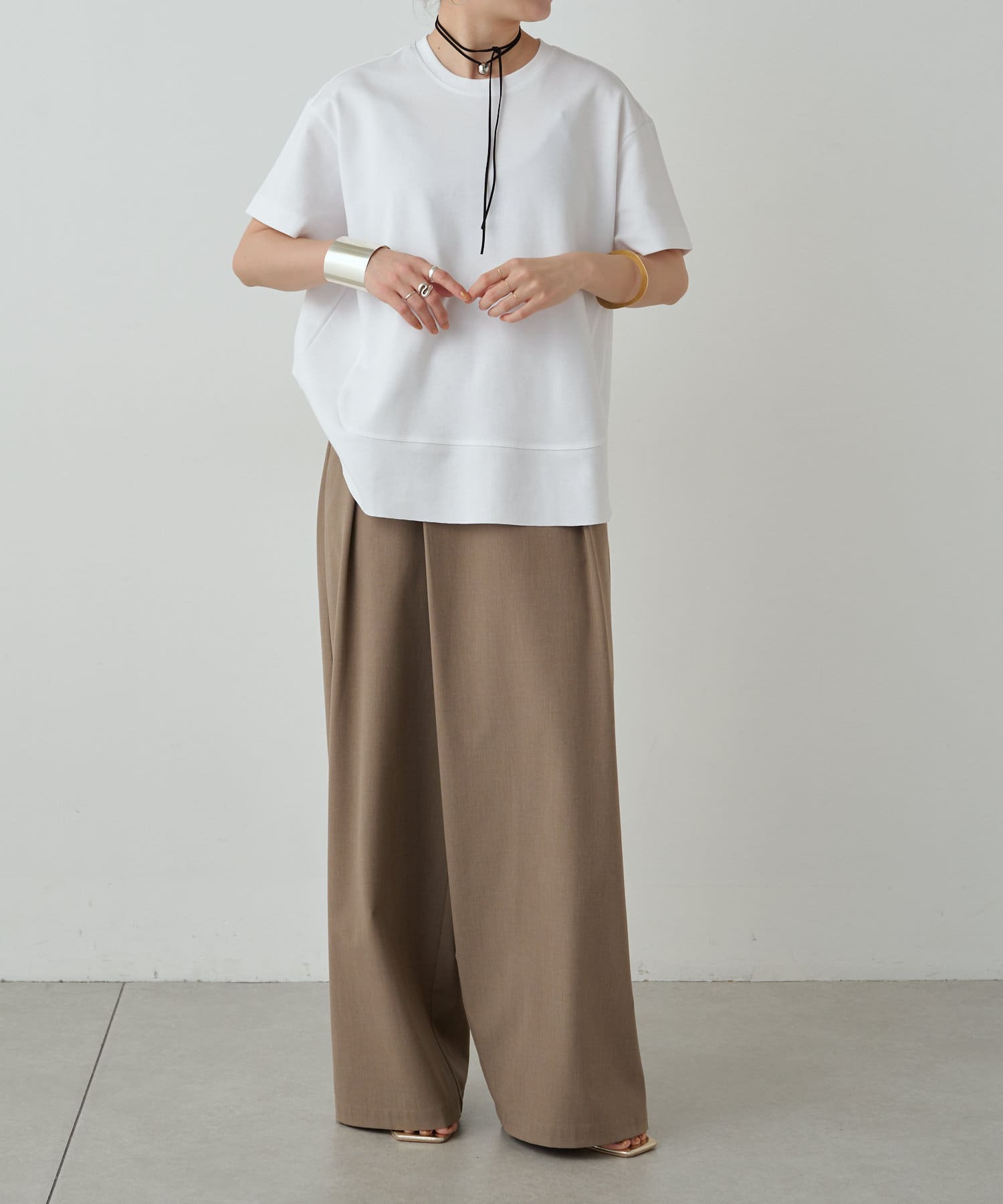 ・程良いネックの空きと、ゆとりのあるサイズ感で1枚で決まるトップス