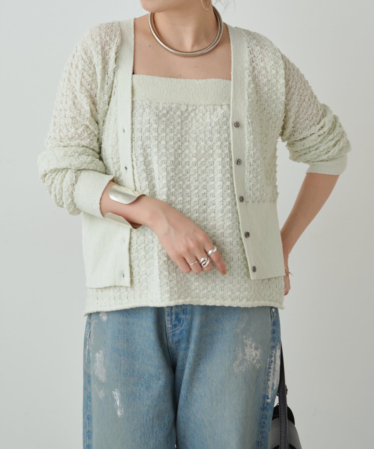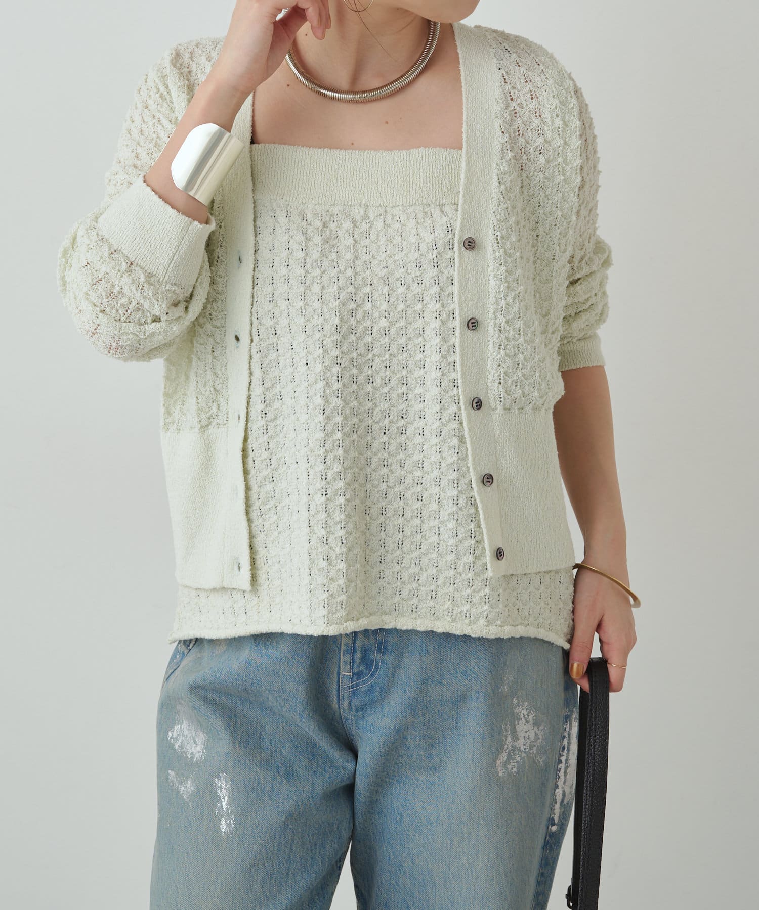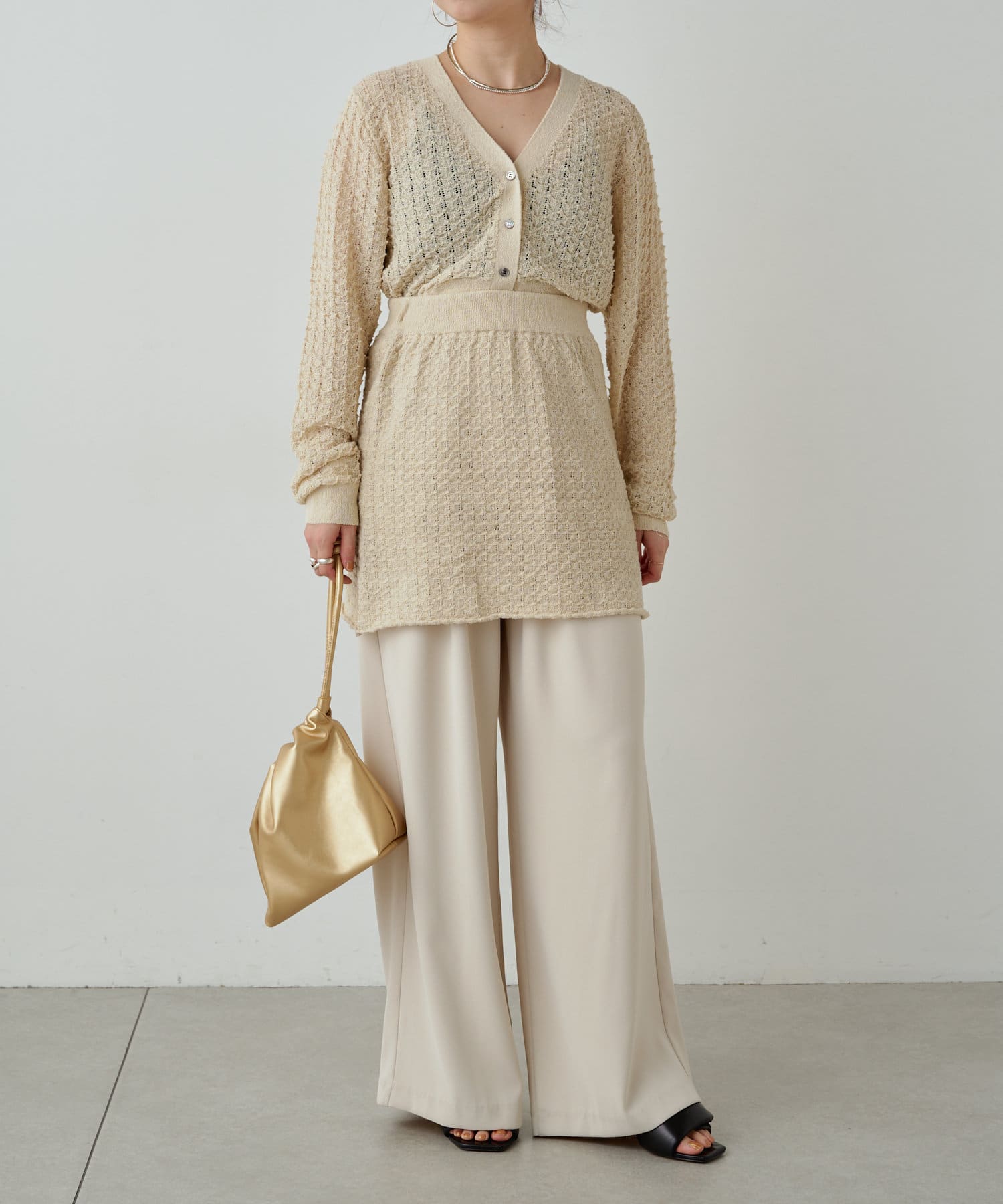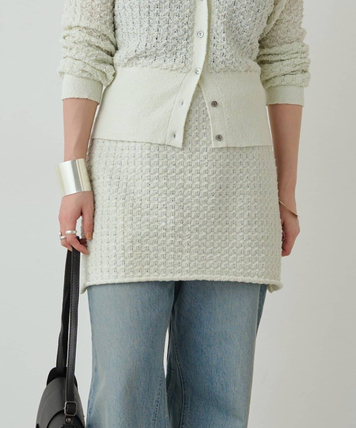 ・透かし編みニットカーデ【OMS1041405A0003】とセットで着用可能なので、お好みの着こなしで様々なアレンジを楽しめます。