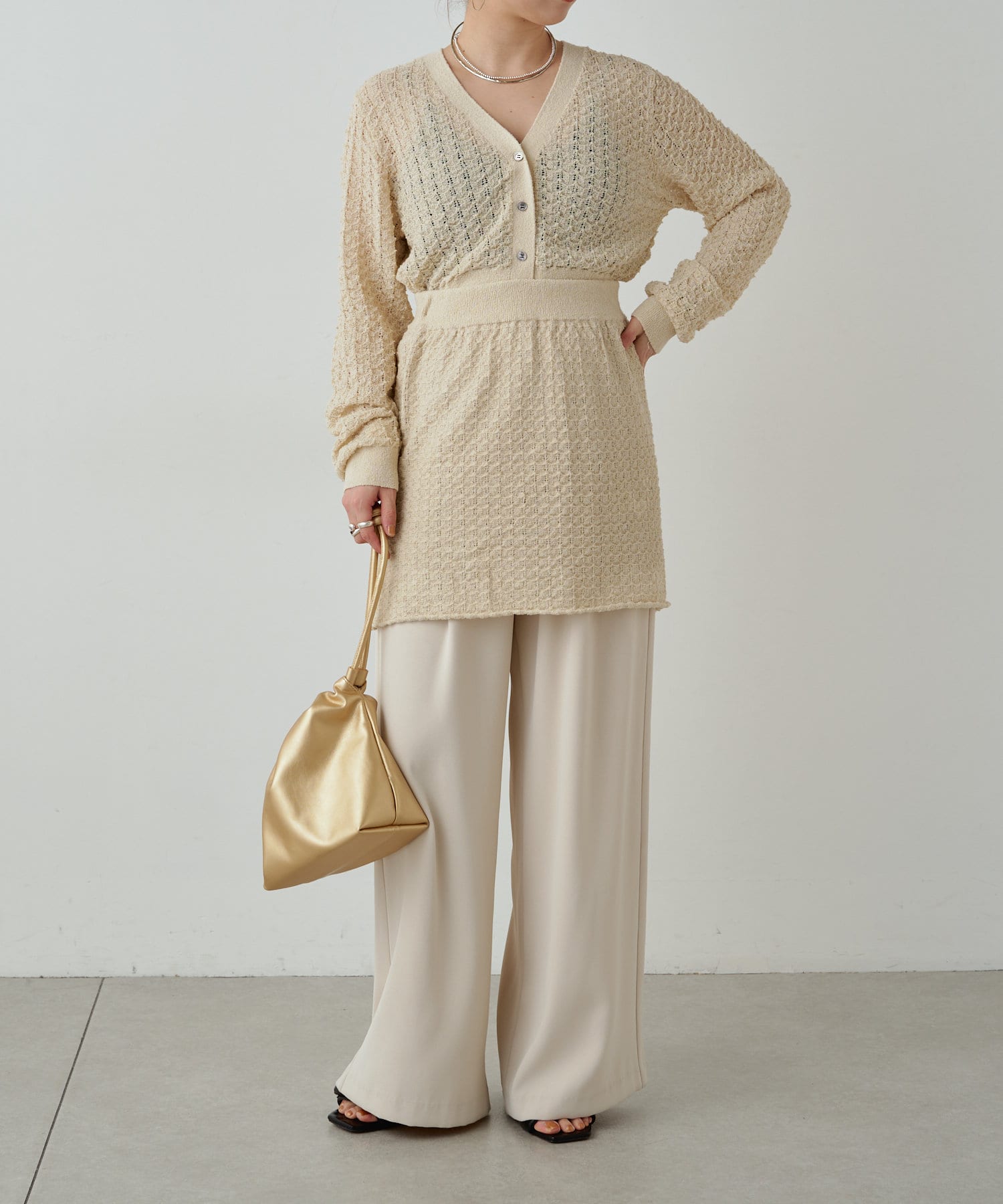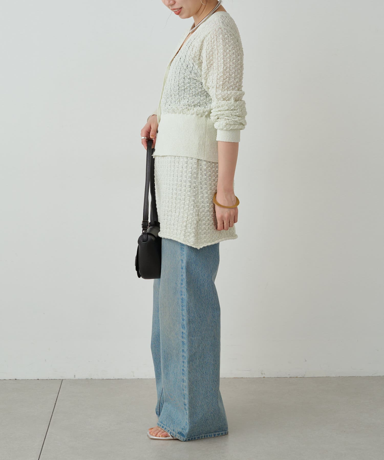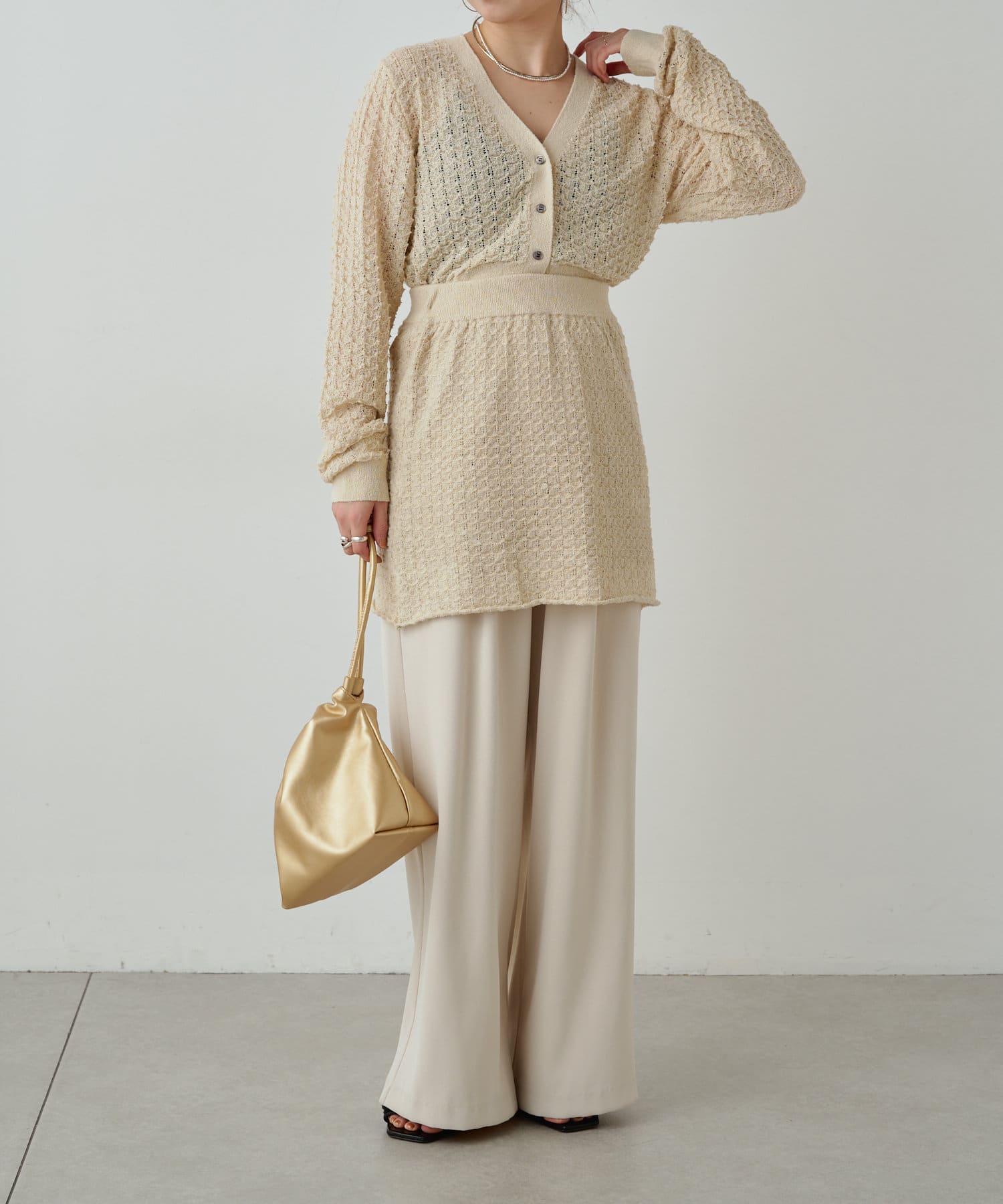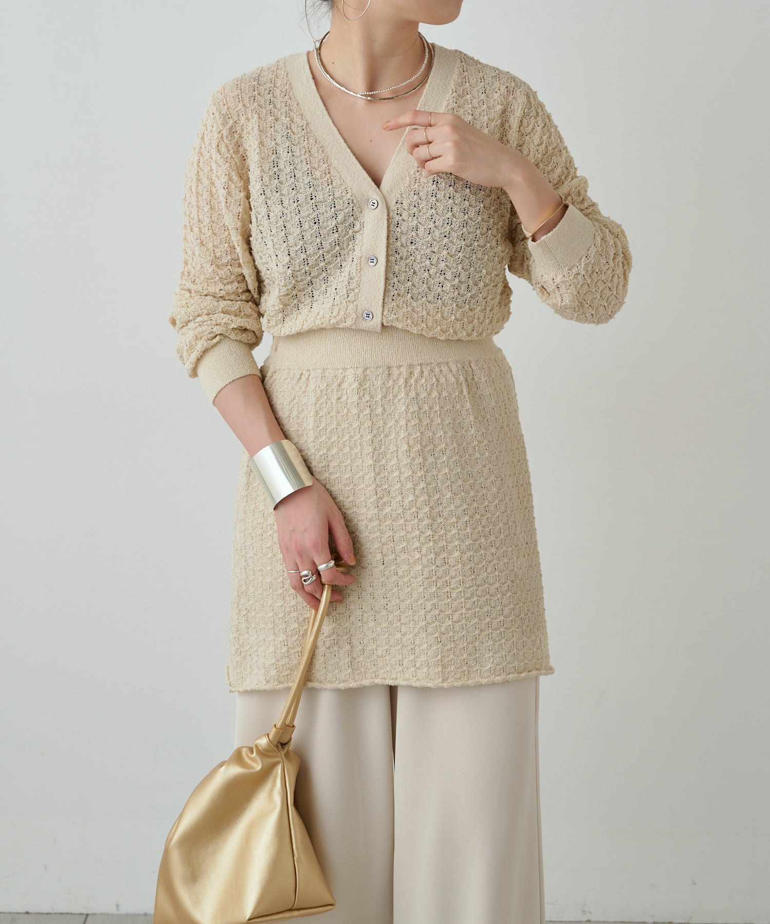 ・透かし編みニットカーデ【OMS1041405A0003】とセットで着用可能なので、お好みの着こなしで様々なアレンジを楽しめます。