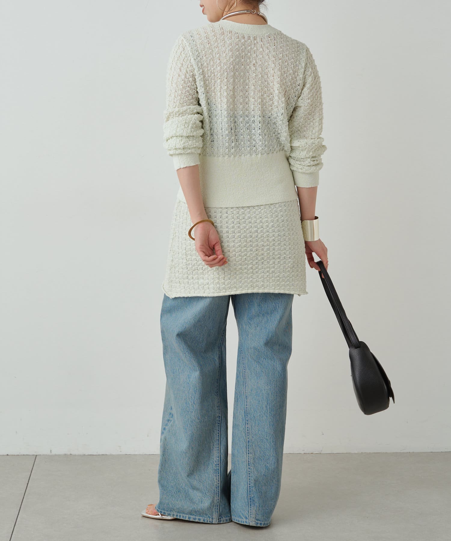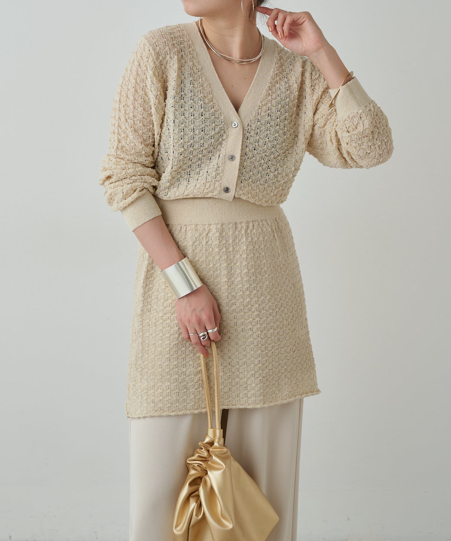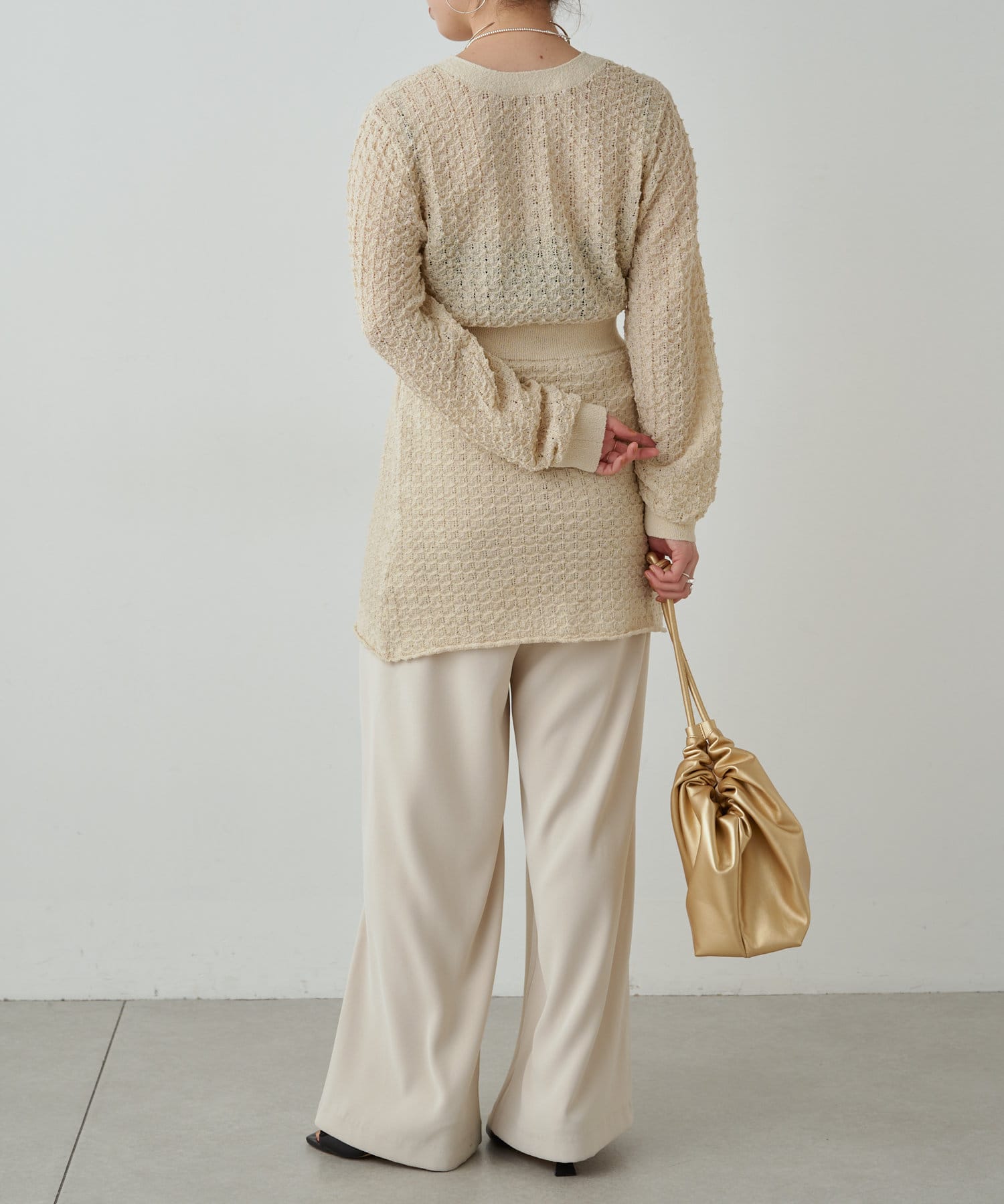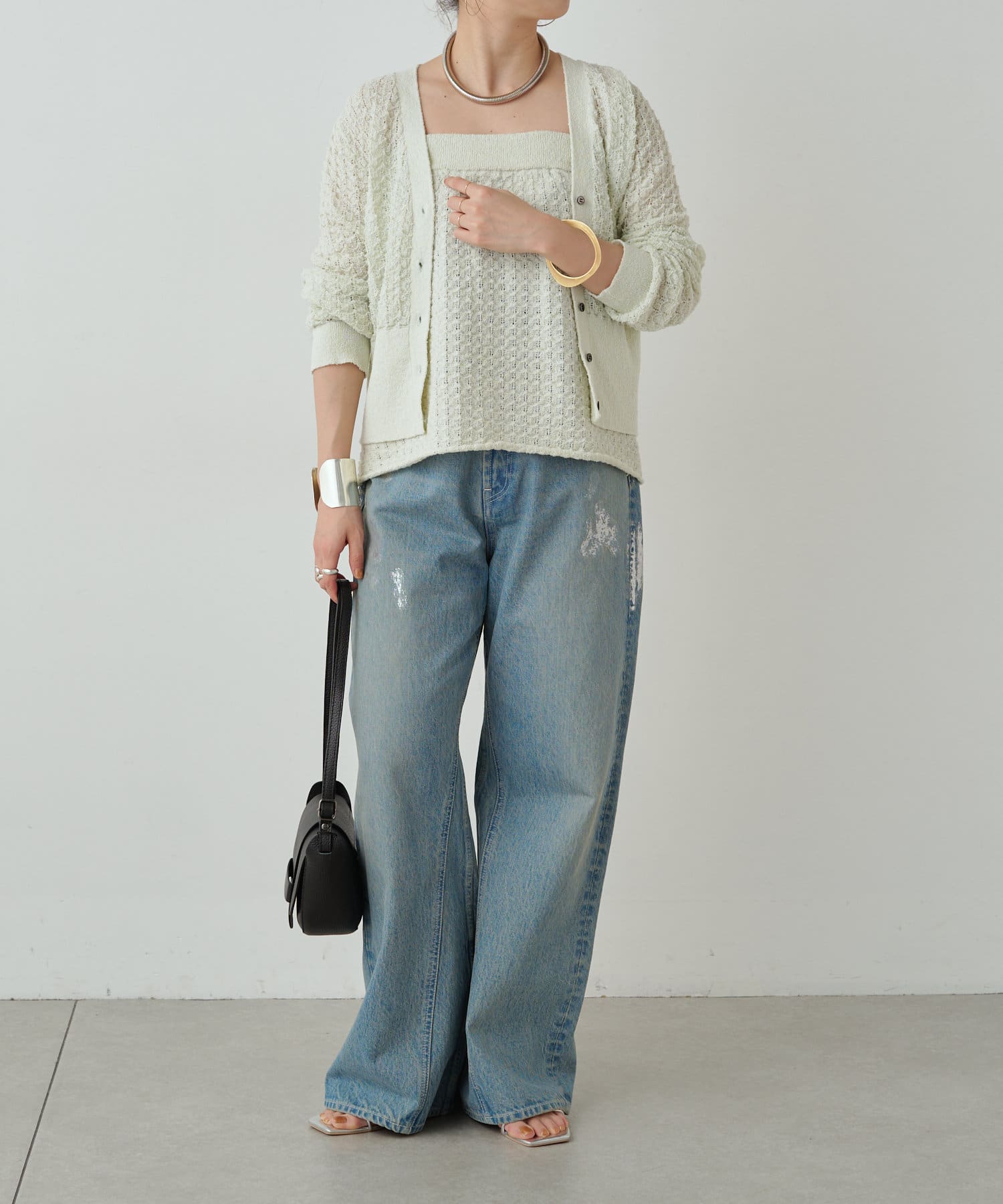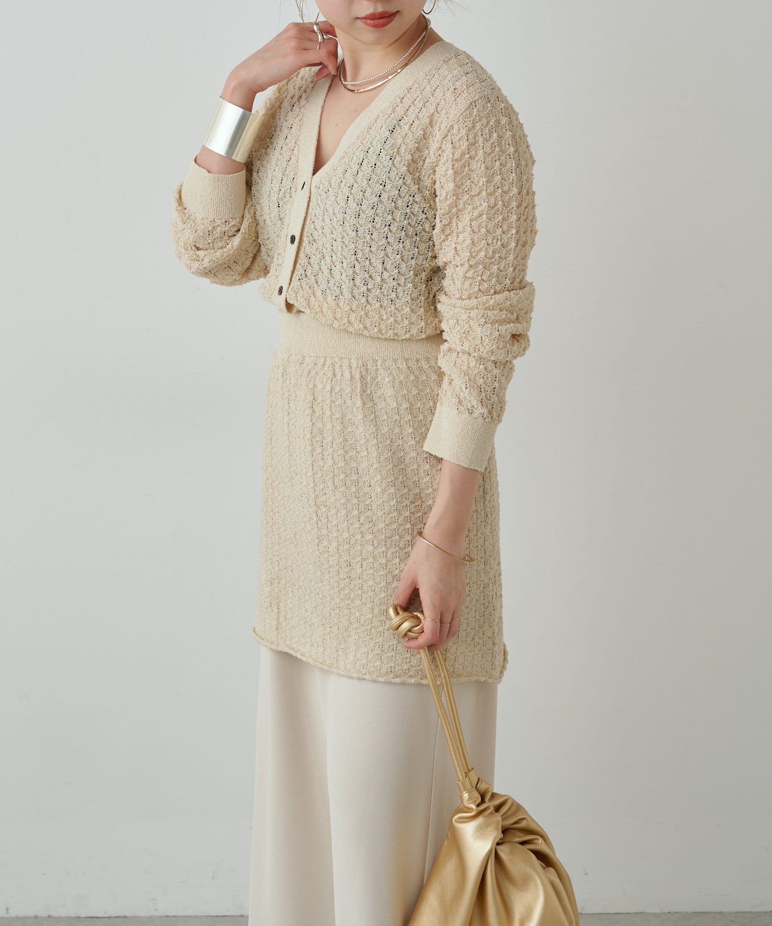 ・透かし編みニットカーデ【OMS1041405A0003】とセットで着用可能なので、お好みの着こなしで様々なアレンジを楽しめます。