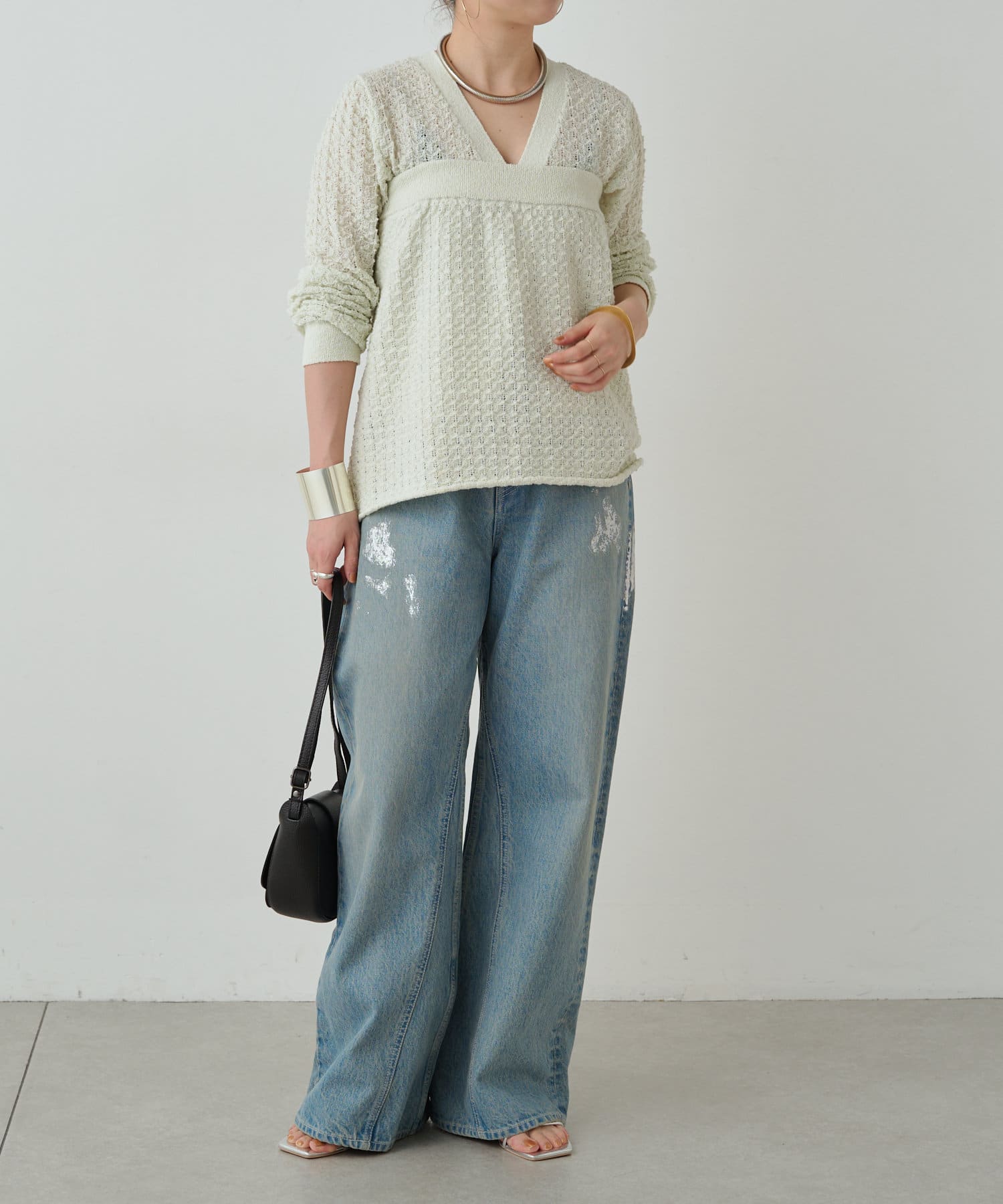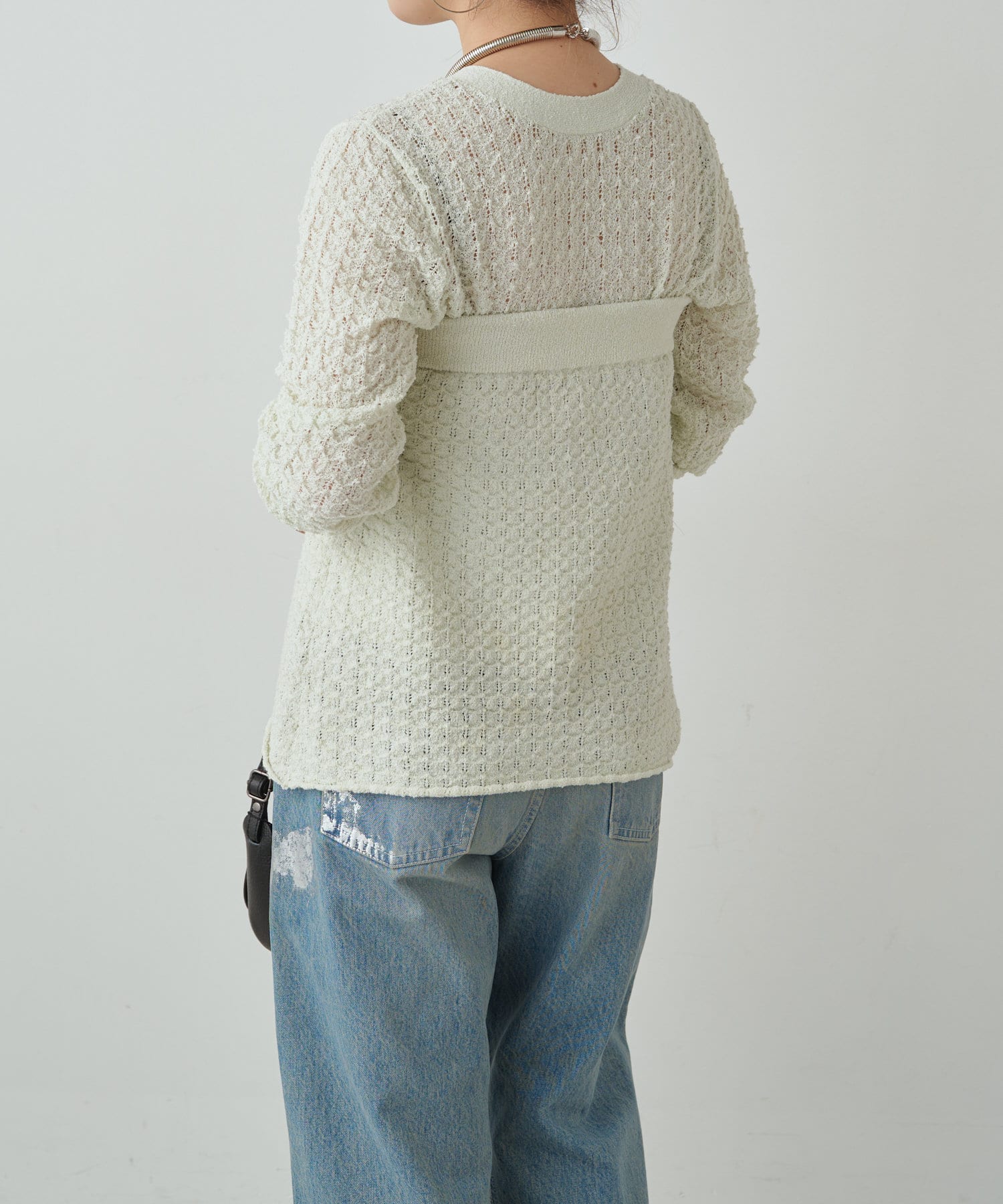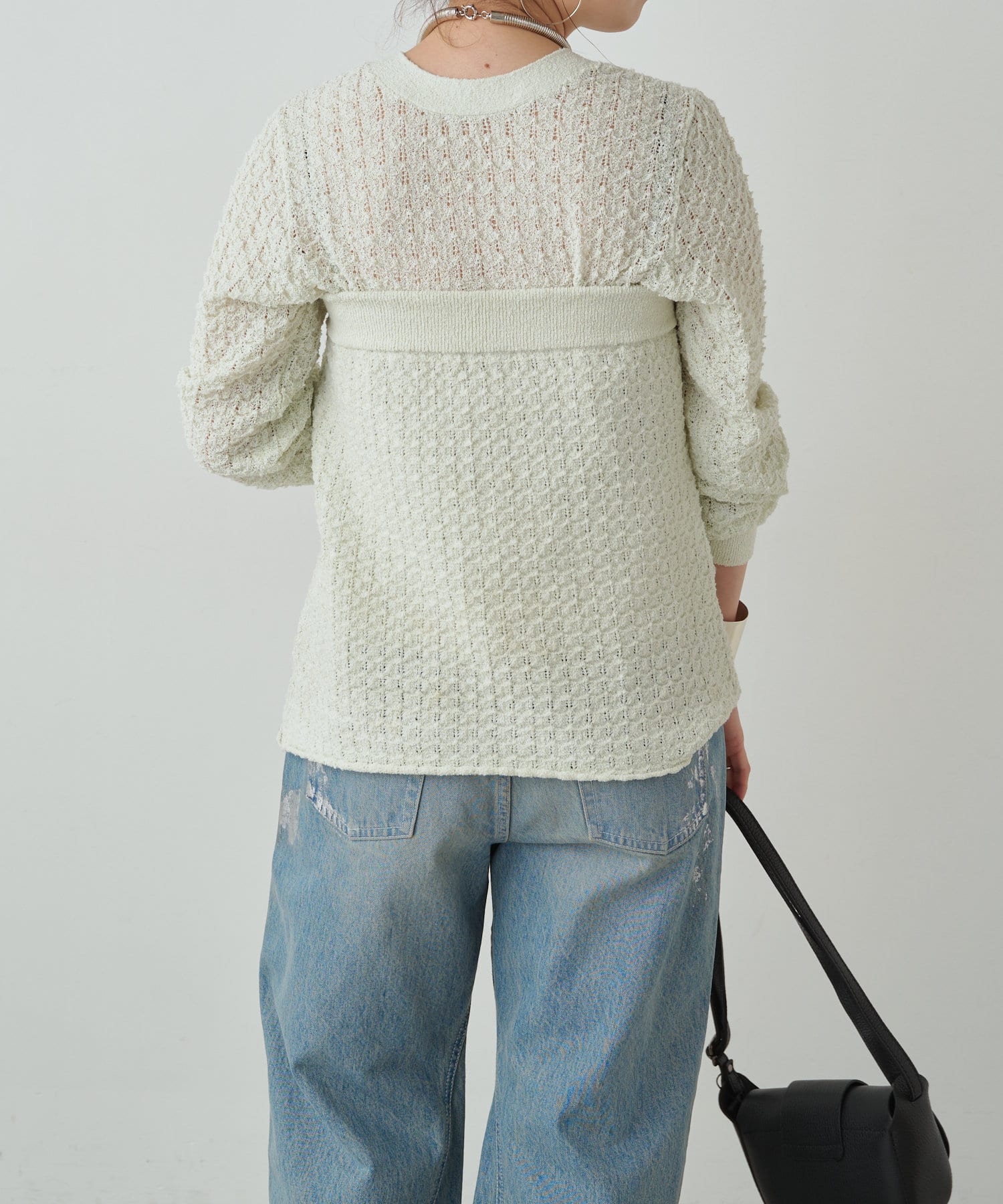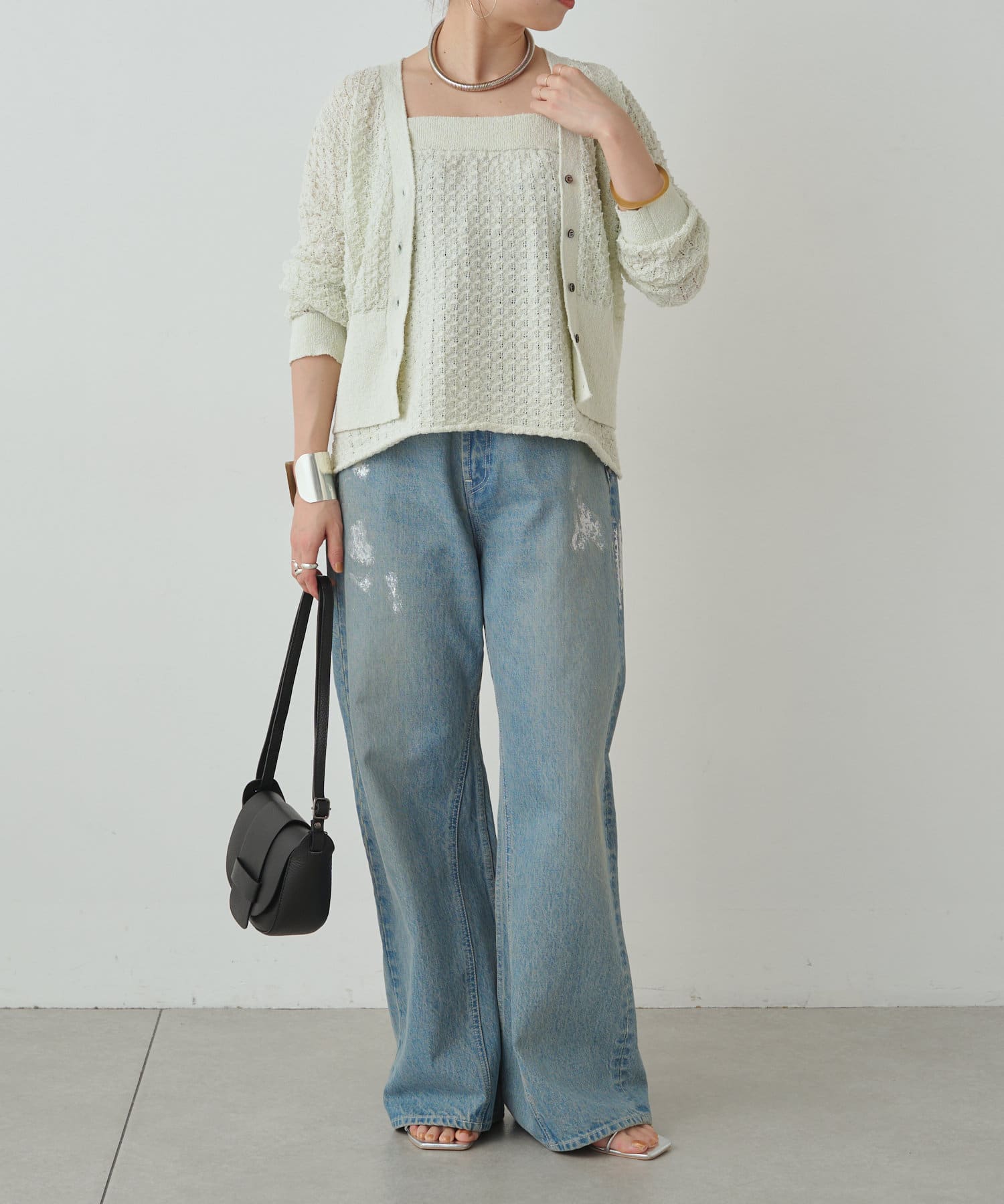 ・透かし編みニットカーデ【OMS1041405A0003】とセットで着用可能なので、お好みの着こなしで様々なアレンジを楽しめます。